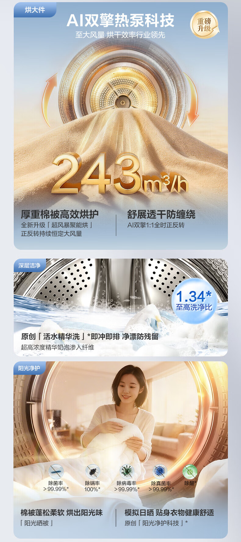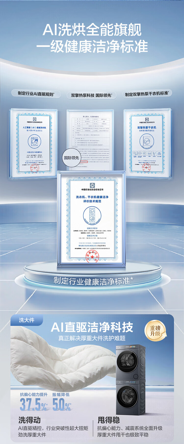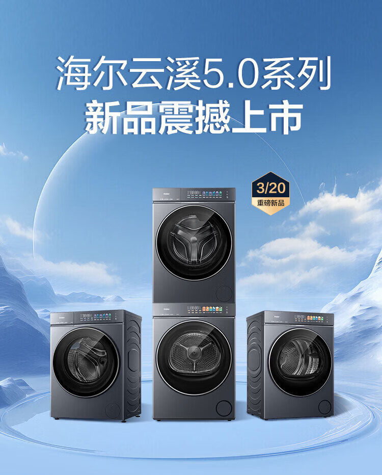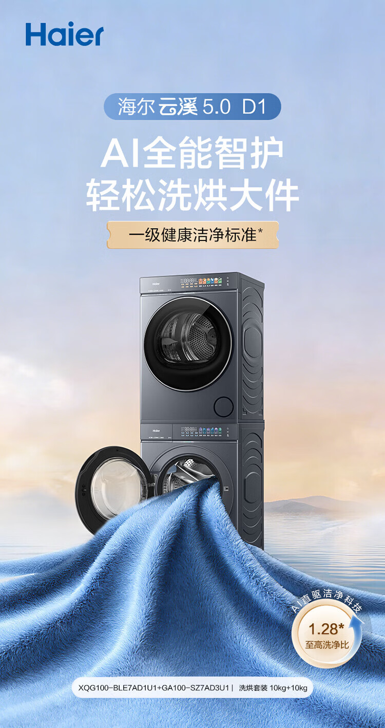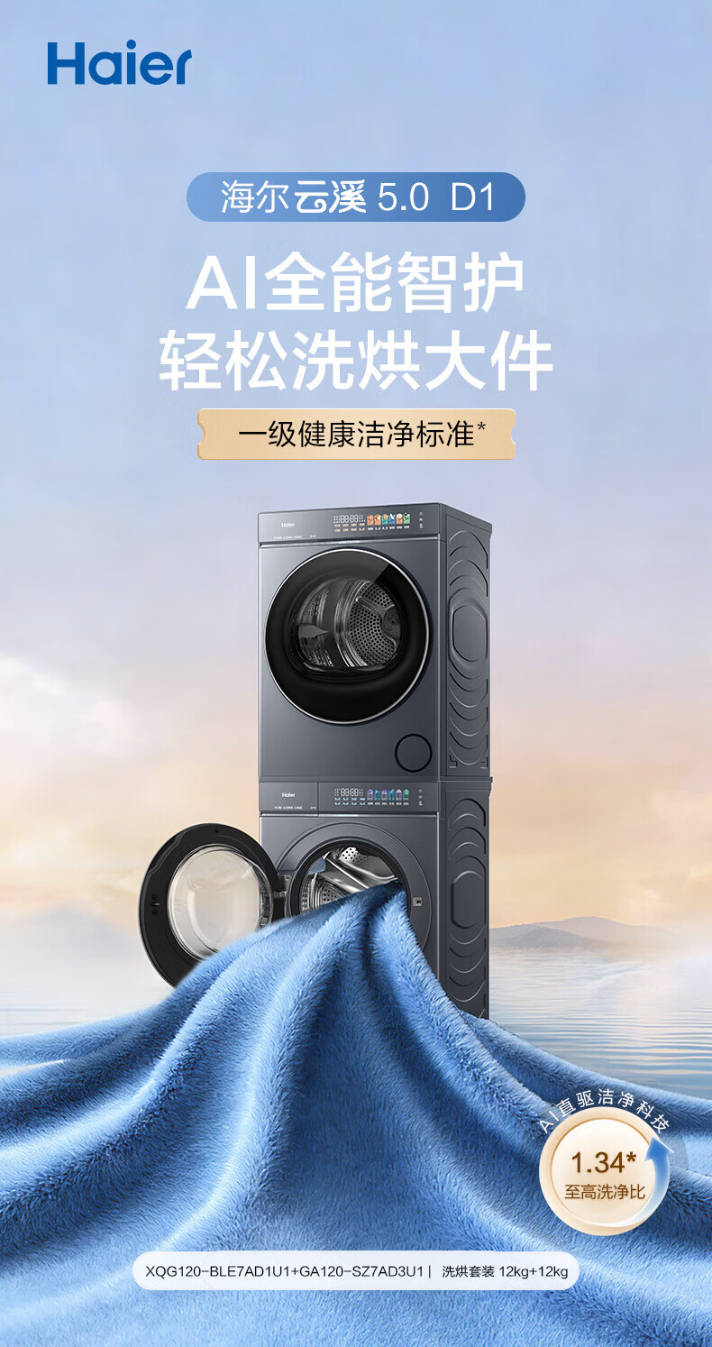 海尔(Haier)【云溪5.0】7AD1U1滚筒洗烘套装 12公斤/10公斤 全自动滚筒直驱洗衣机+双擎热泵烘干机A直驱双效除菌 10公斤顶配丨 7AD1+7AD3