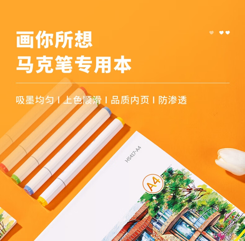 得力(deli)(deli)马克本图画本马克笔专用绘画本画画纸漫空白涂色30张A4120g加厚纸张女孩儿童礼物速写
