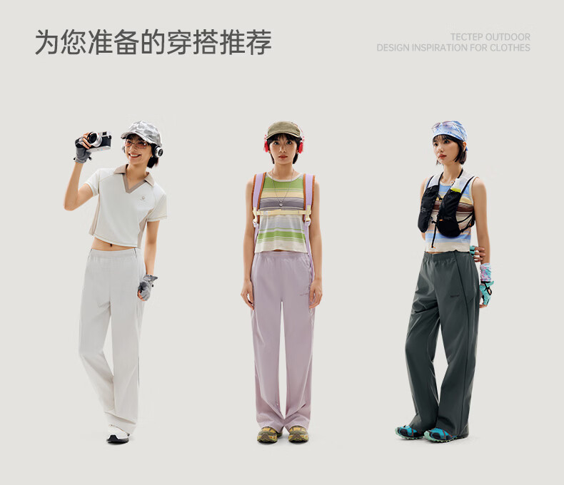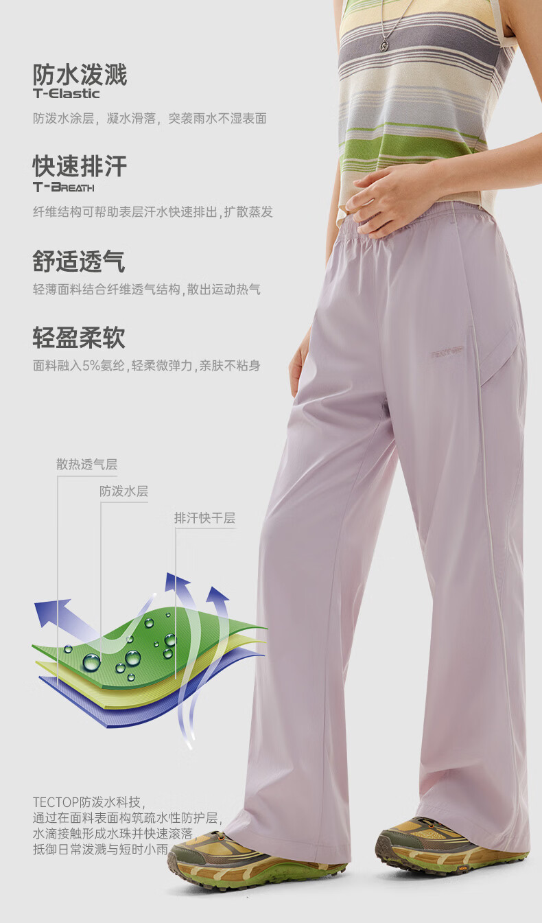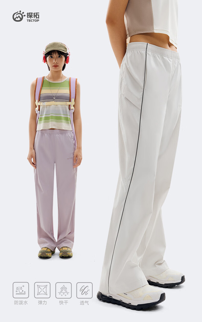 探拓(TECTOP)26新款轻薄弹力速干裤女运动登山裤女士休闲直筒裤 山矾灰 L