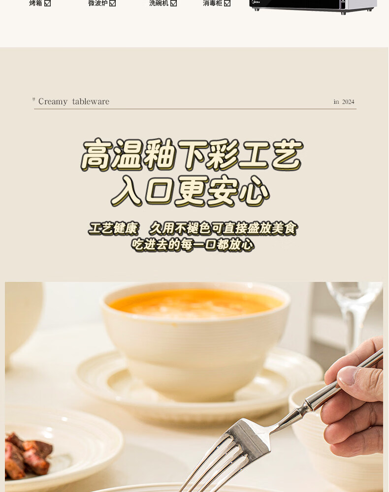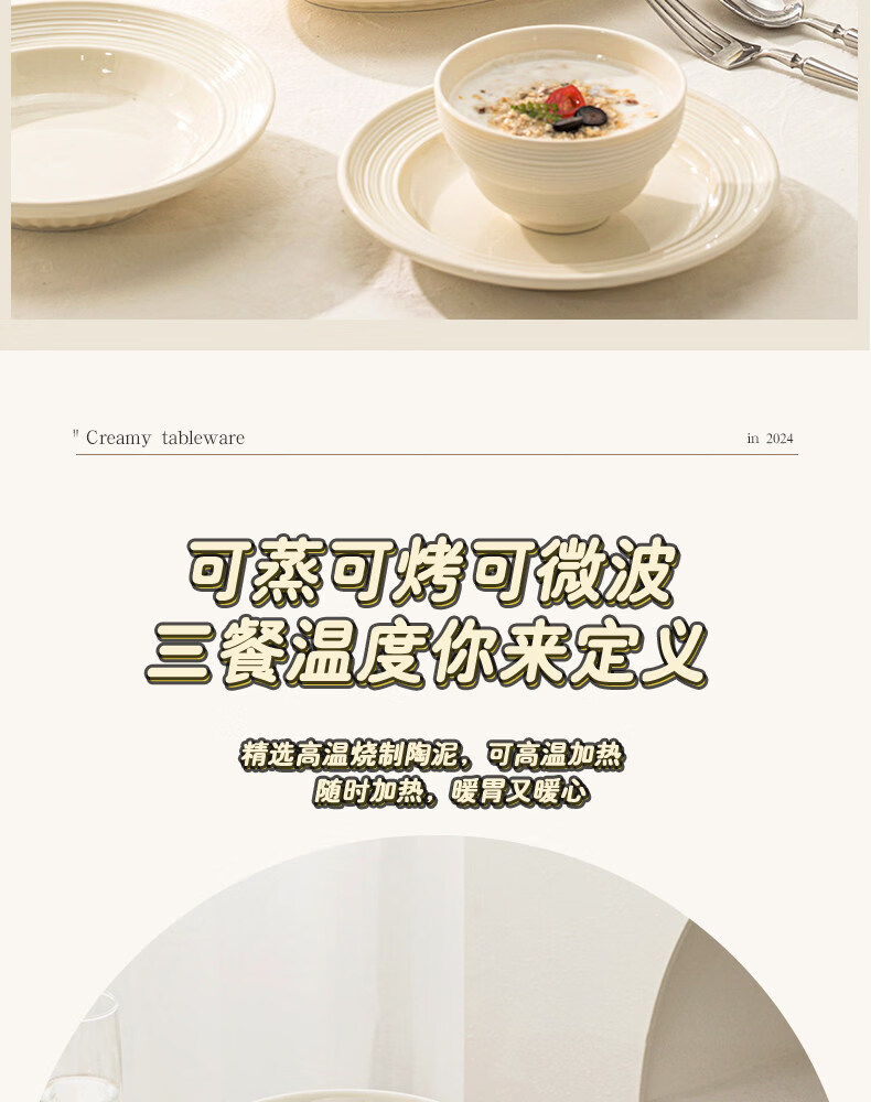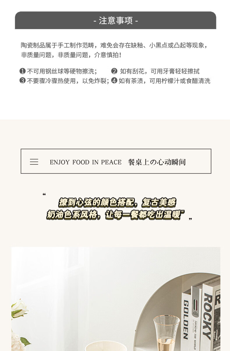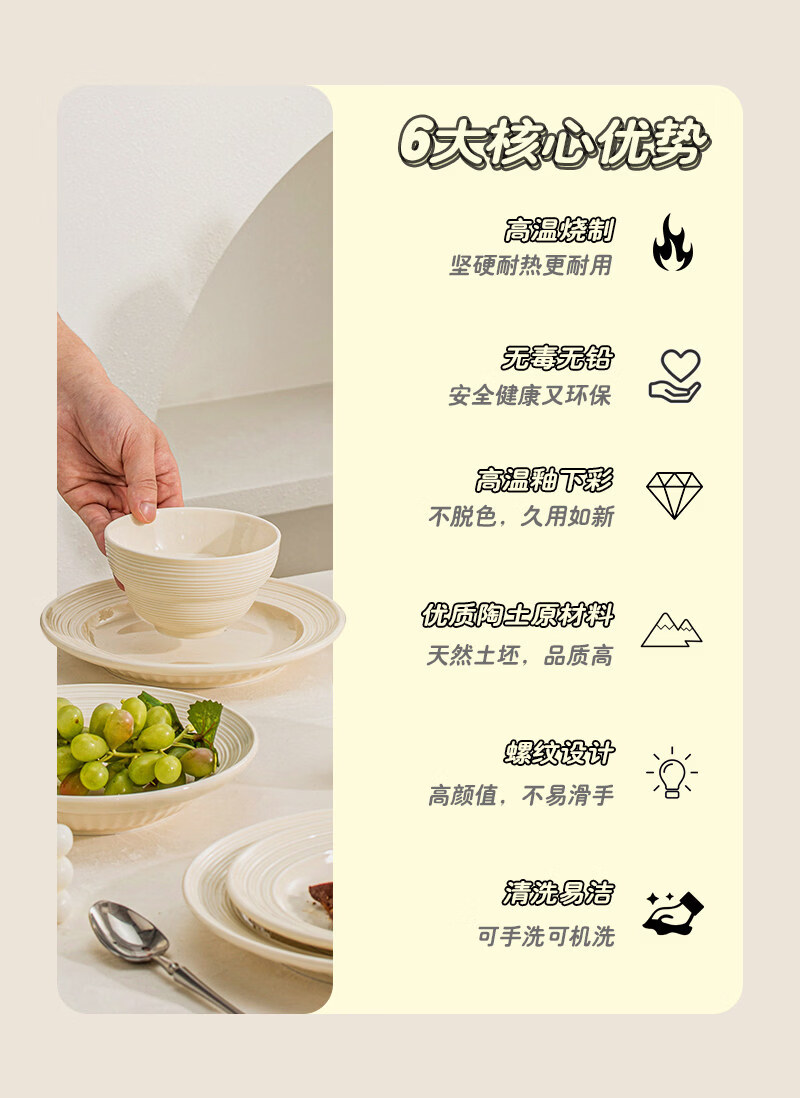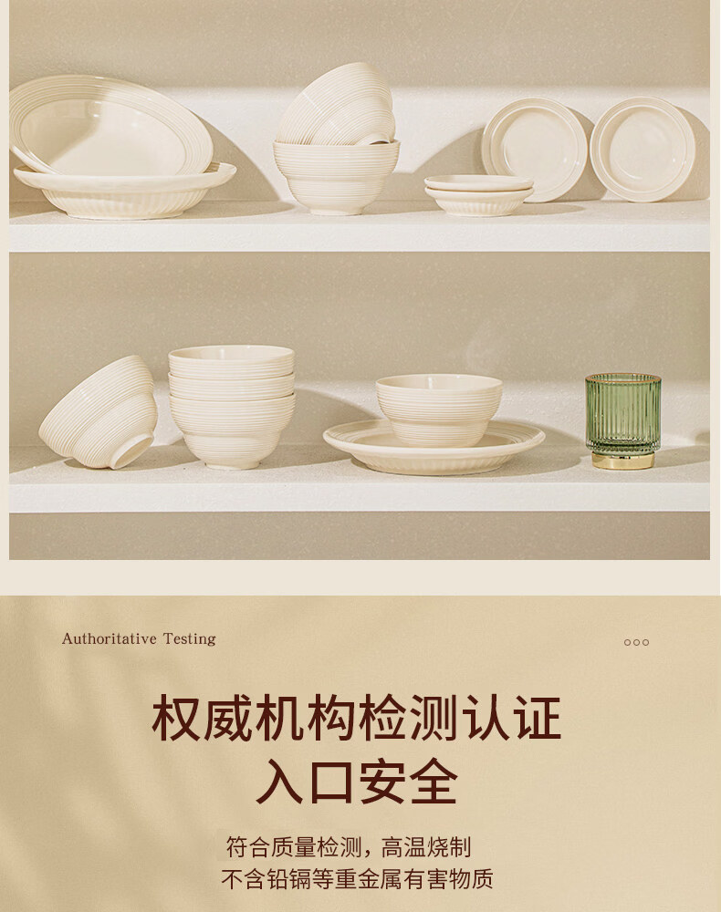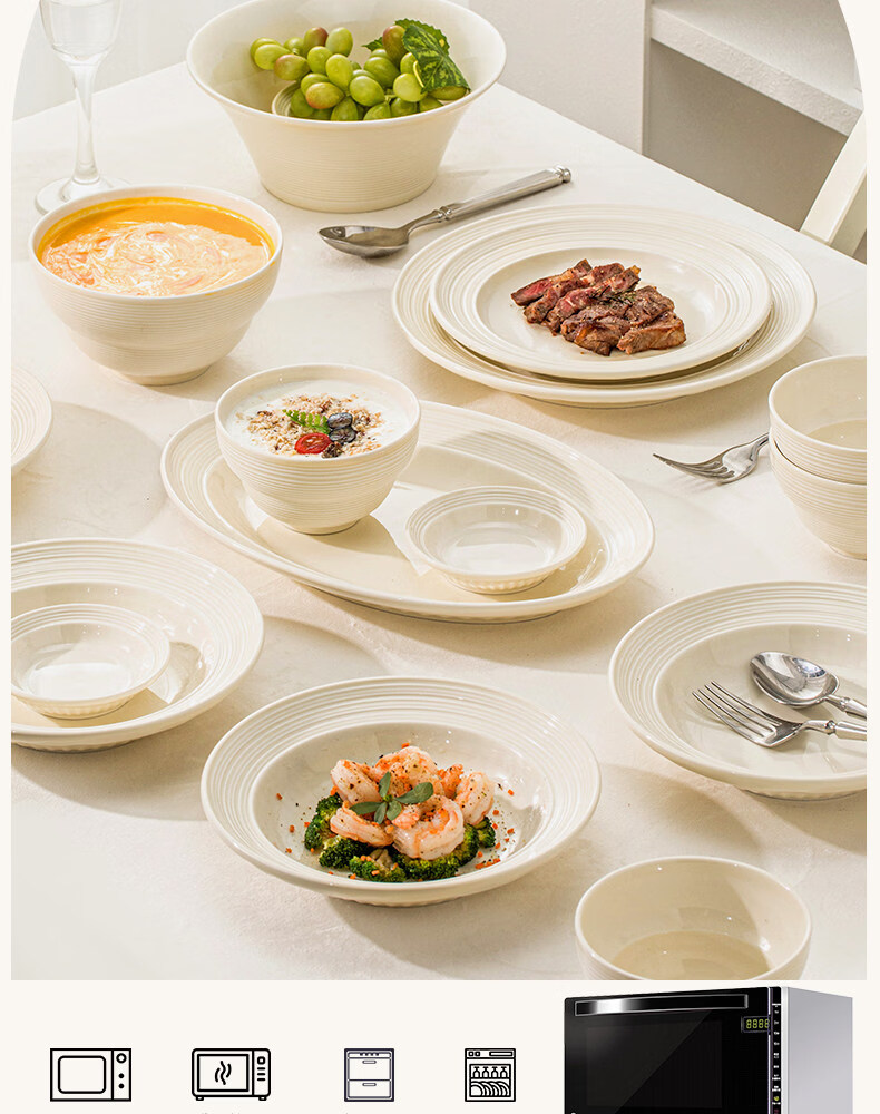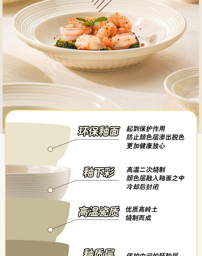 精缔陶瓷JINGDI2026新款釉下彩奶油风碗家用碗碟套装陶瓷碗盘筷餐具套装颜值乔迁 【釉下彩】奶油螺纹-2人食12件套美拉德