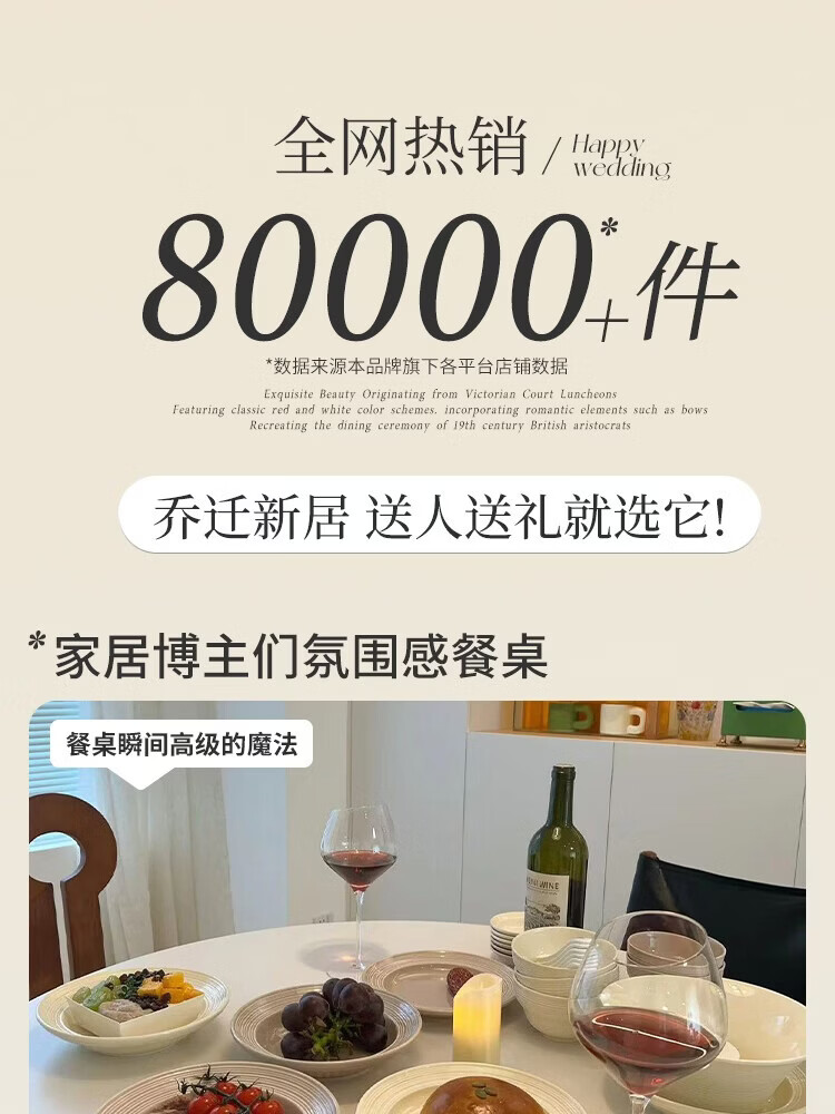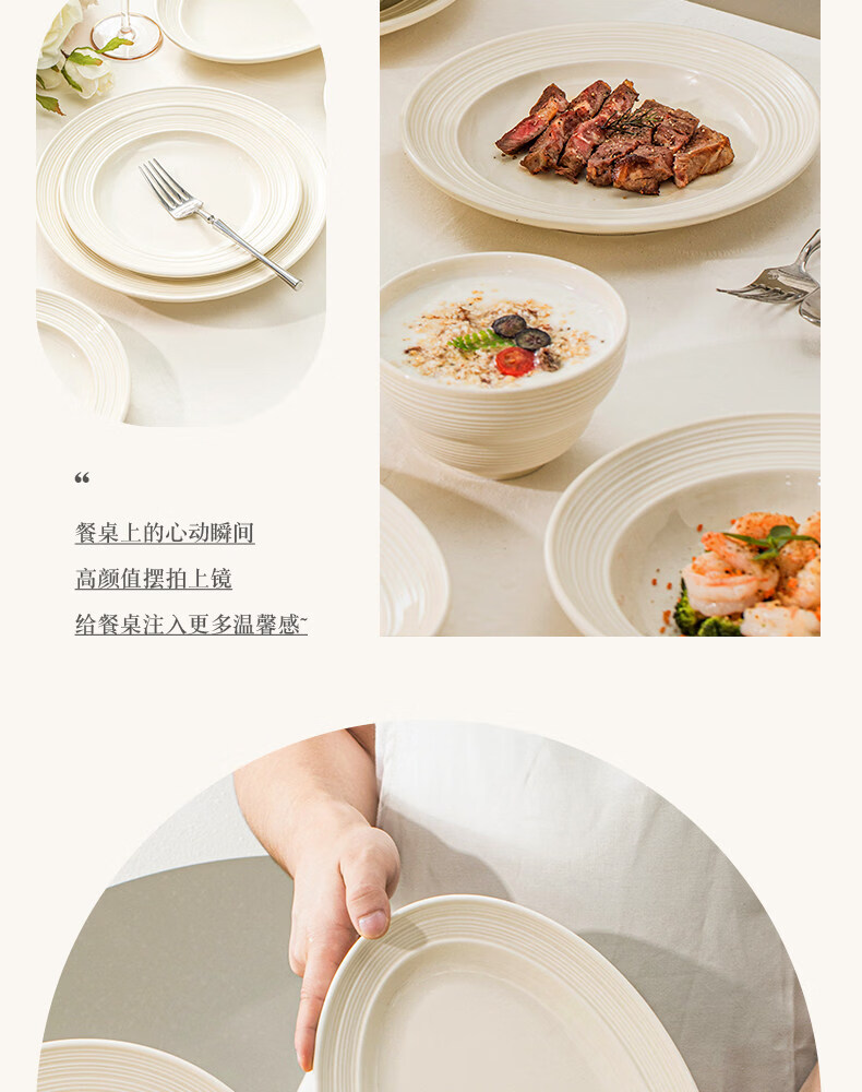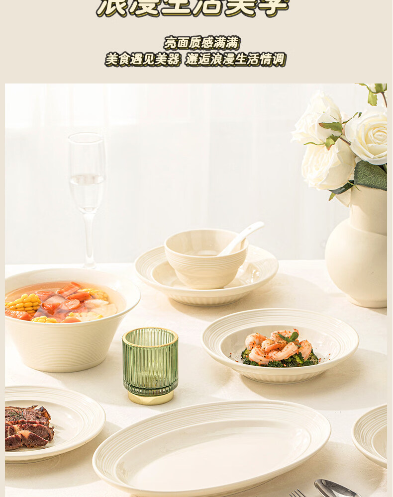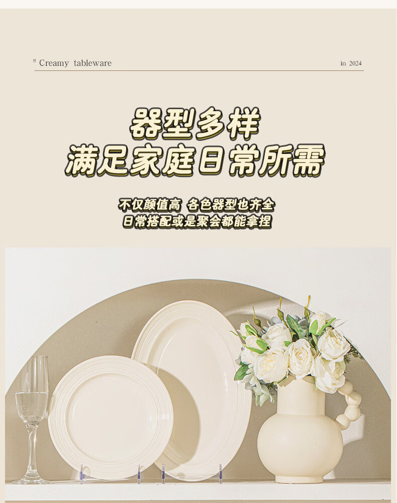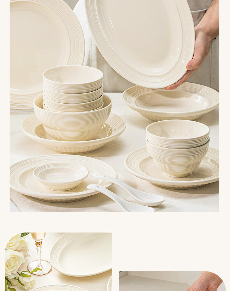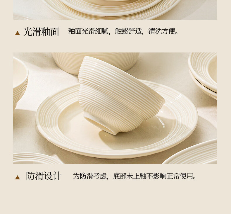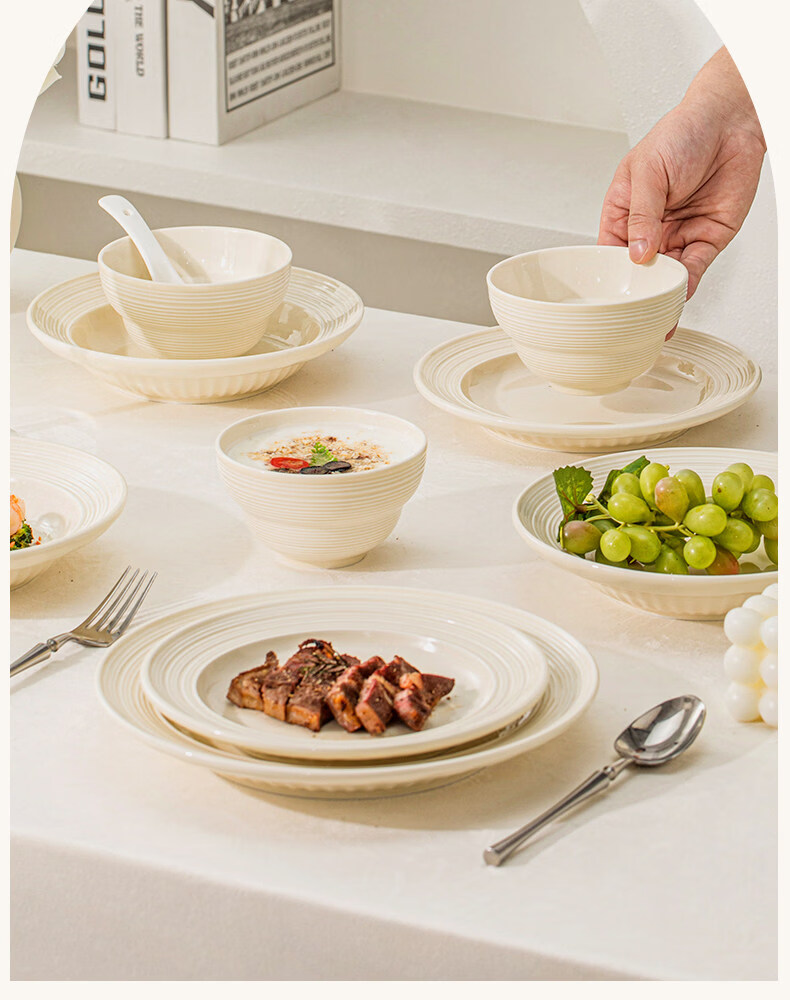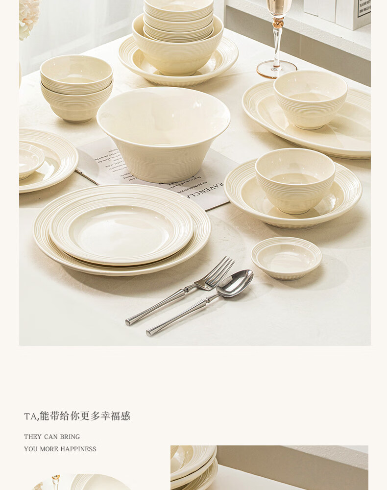 精缔陶瓷JINGDI2026新款釉下彩奶油风碗家用碗碟套装陶瓷碗盘筷餐具套装颜值乔迁 【店长推荐】奶油螺纹-10人食54件套美拉德 【送砂锅】