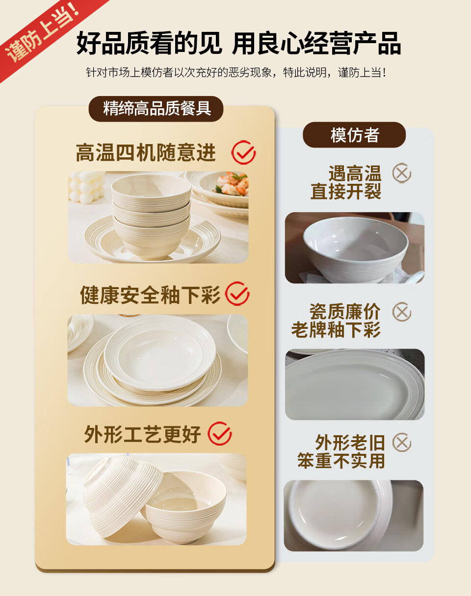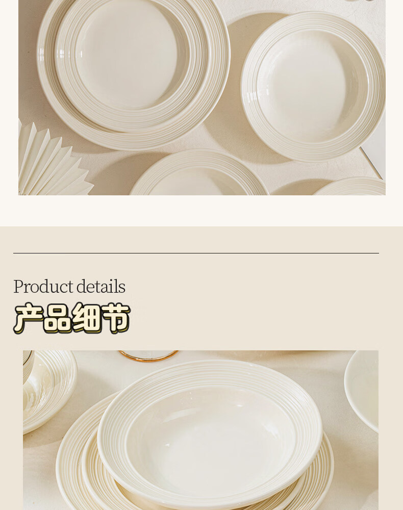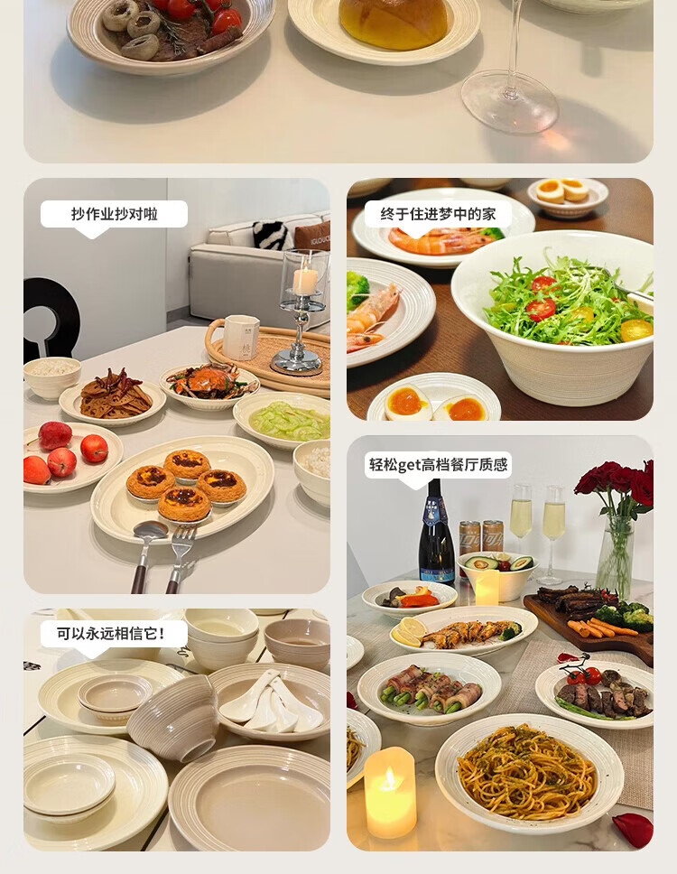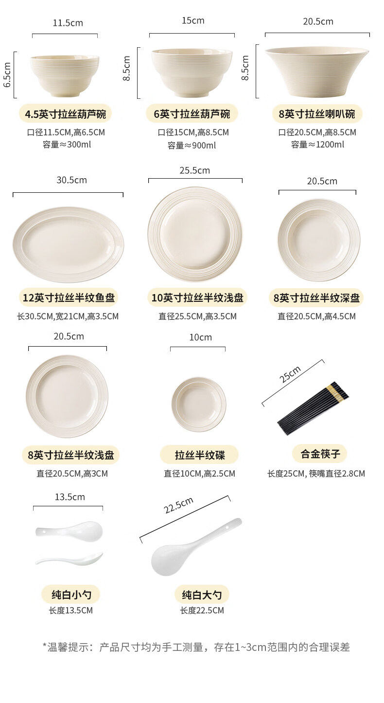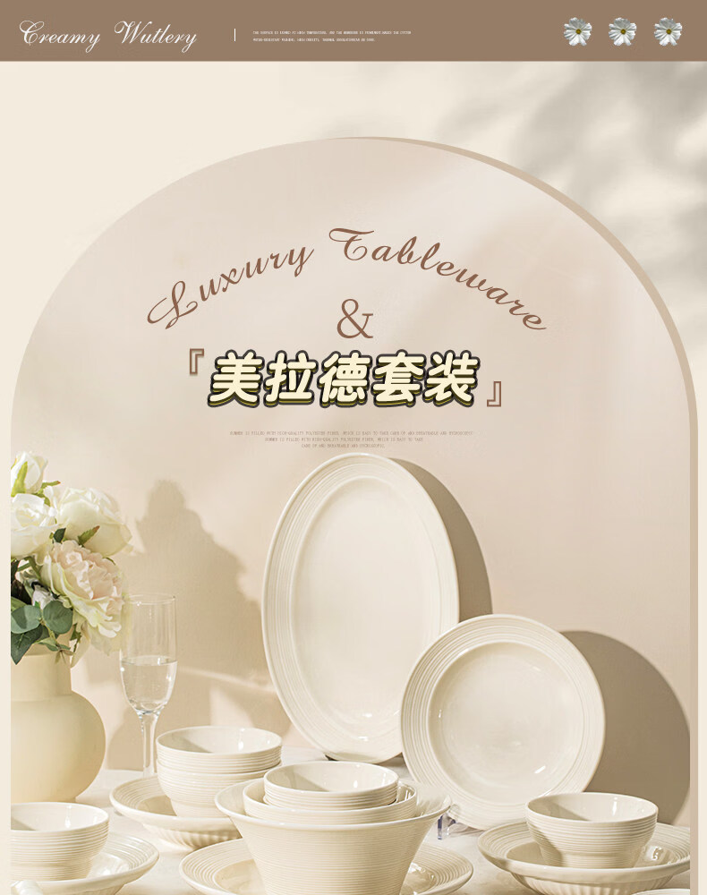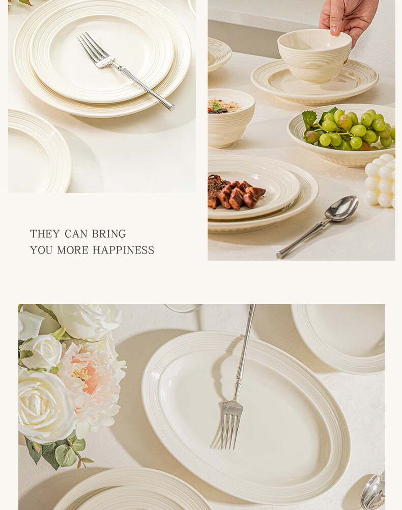 精缔陶瓷JINGDI2026新款釉下彩奶油风碗家用碗碟套装陶瓷碗盘筷餐具套装颜值乔迁 【店长推荐】奶油螺纹-10人食54件套美拉德 【送砂锅】