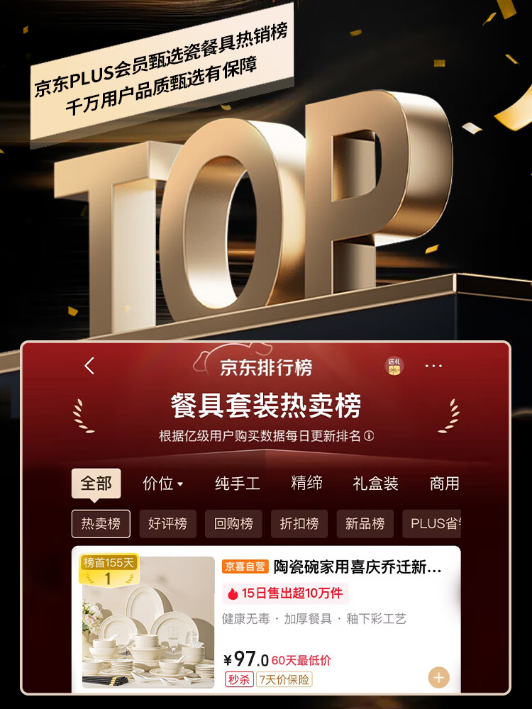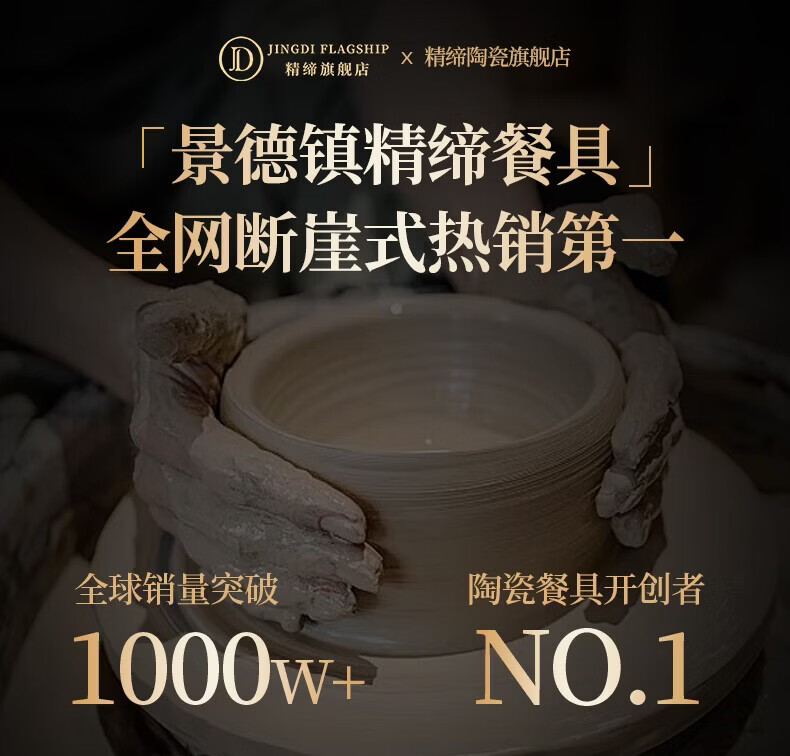 精缔陶瓷JINGDI景德镇家用新款碗碟套装中式高颜值陶瓷骨瓷餐具套装碗盘乔迁新居 大好江山标准配置 16件套