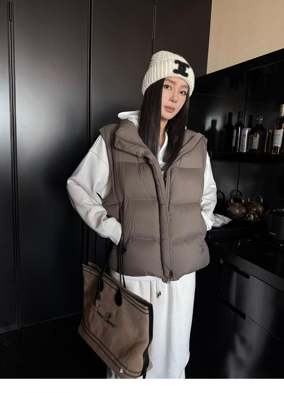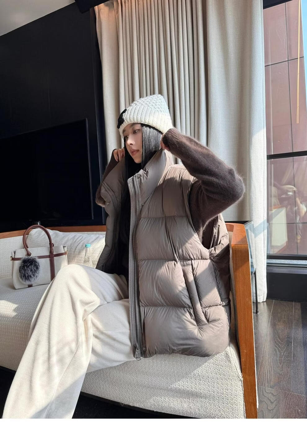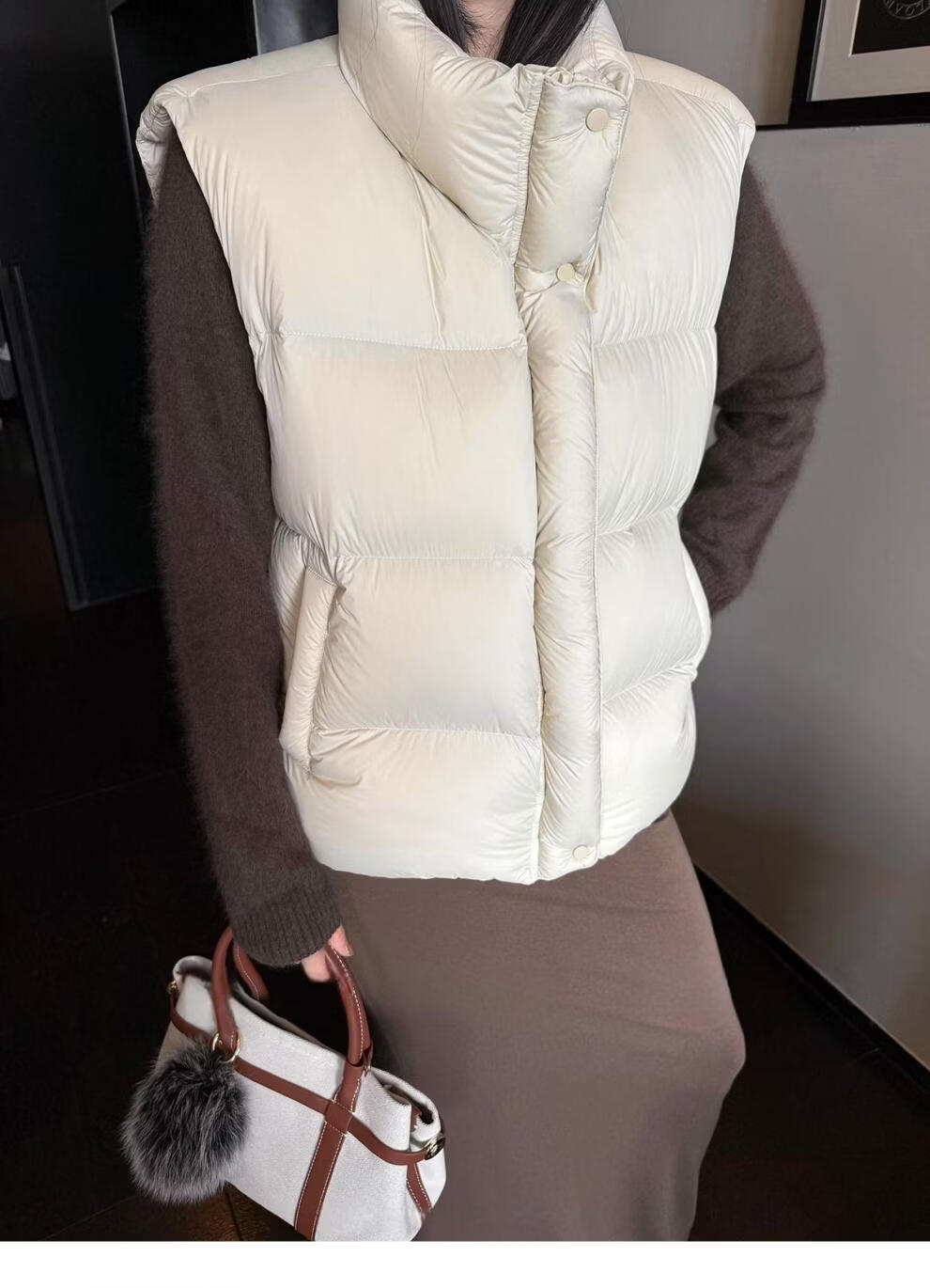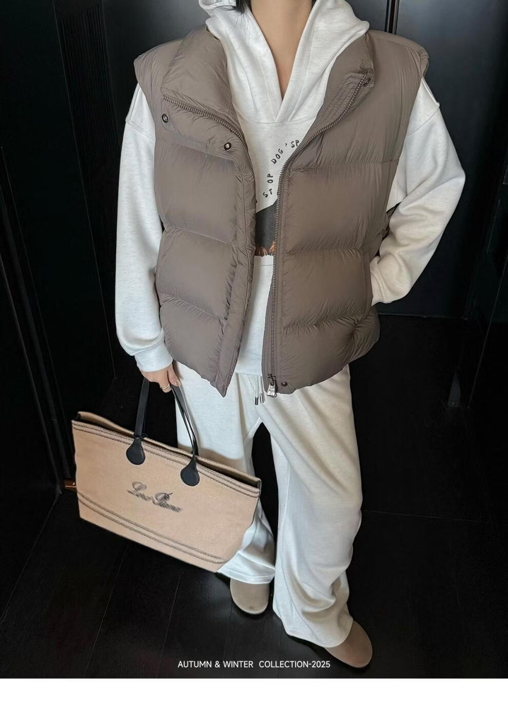MODX羽绒马甲背心女秋冬外穿时髦洋气2026新款白鸭绒保暖坎肩马夹外套 灰色 L