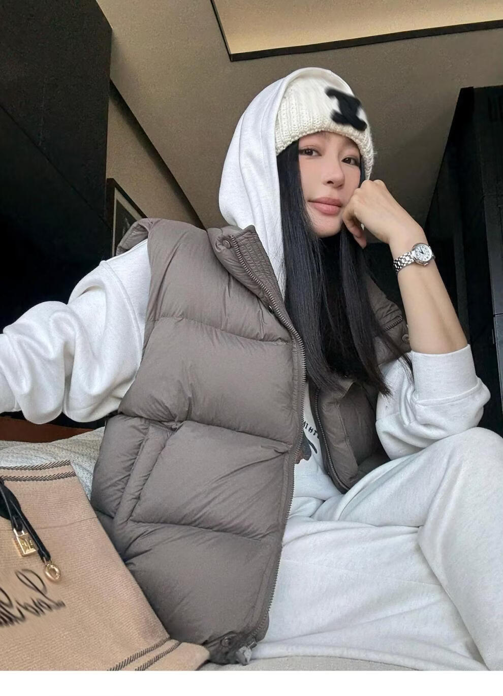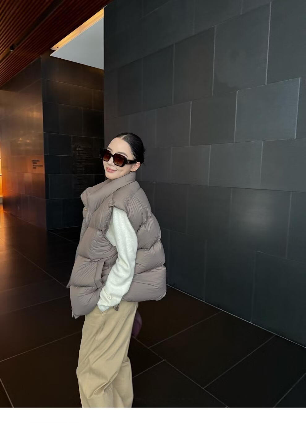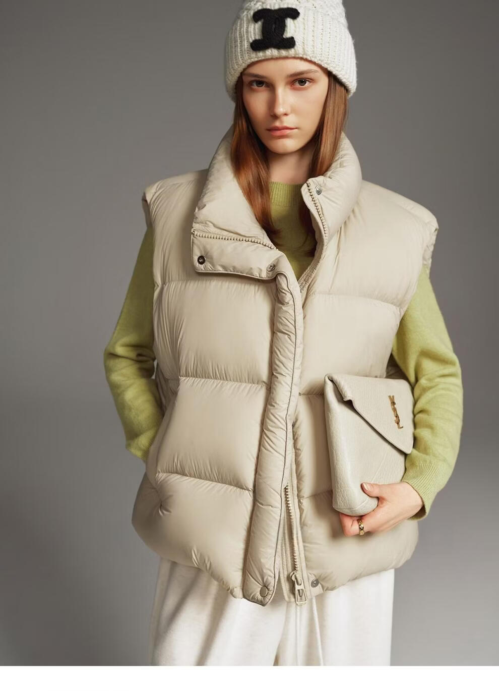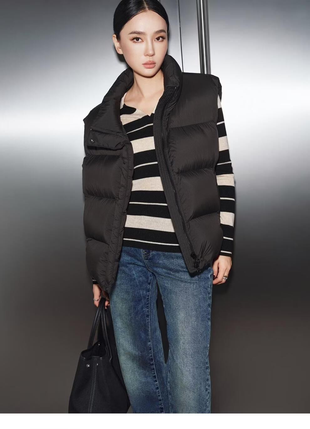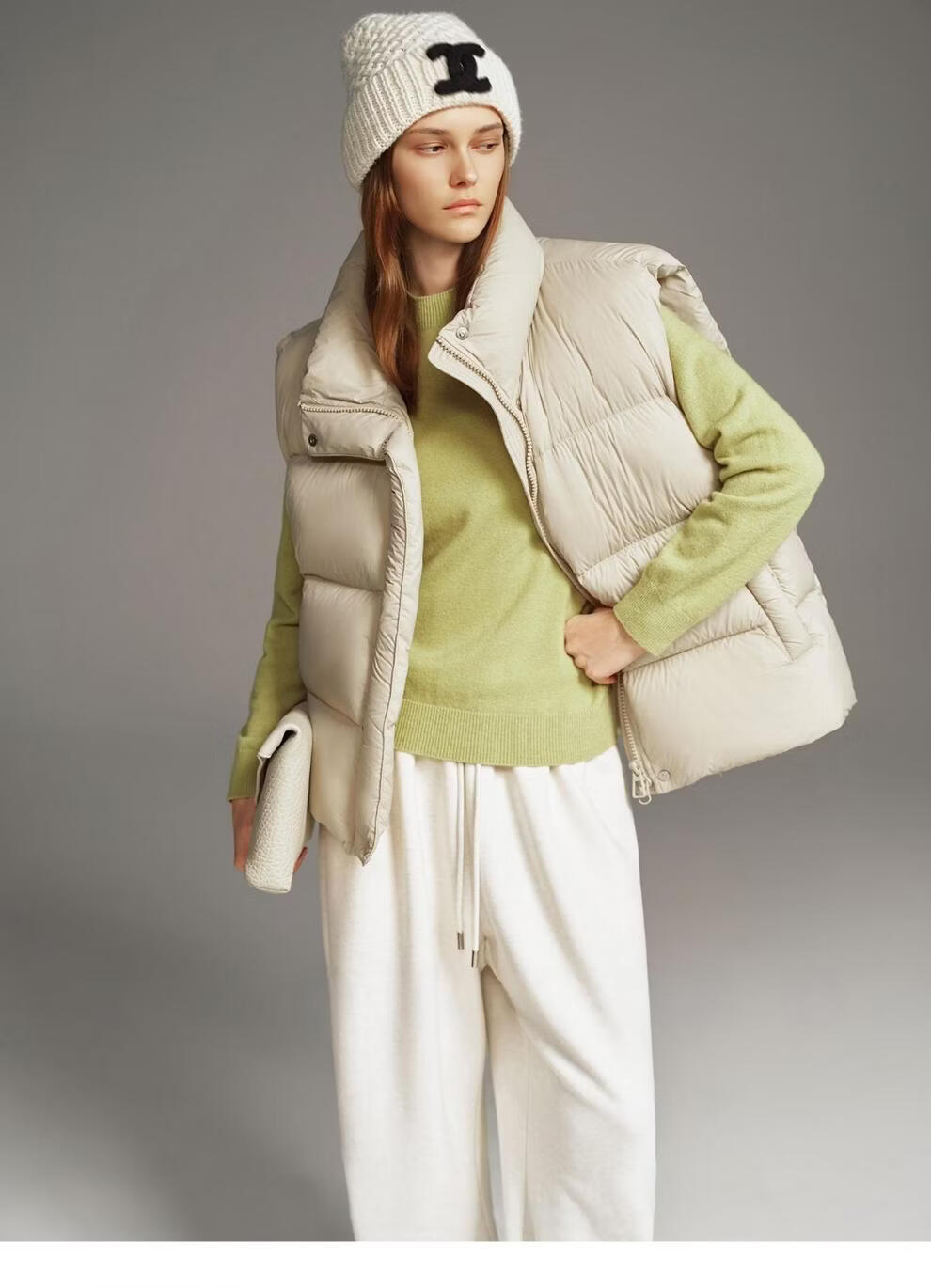 MODX羽绒马甲背心女秋冬外穿时髦洋气2026新款白鸭绒保暖坎肩马夹外套 灰色 L