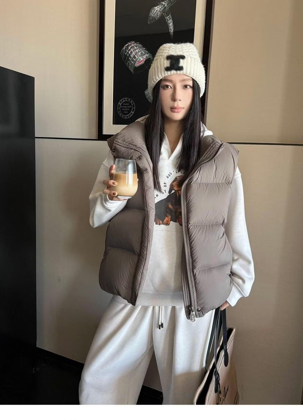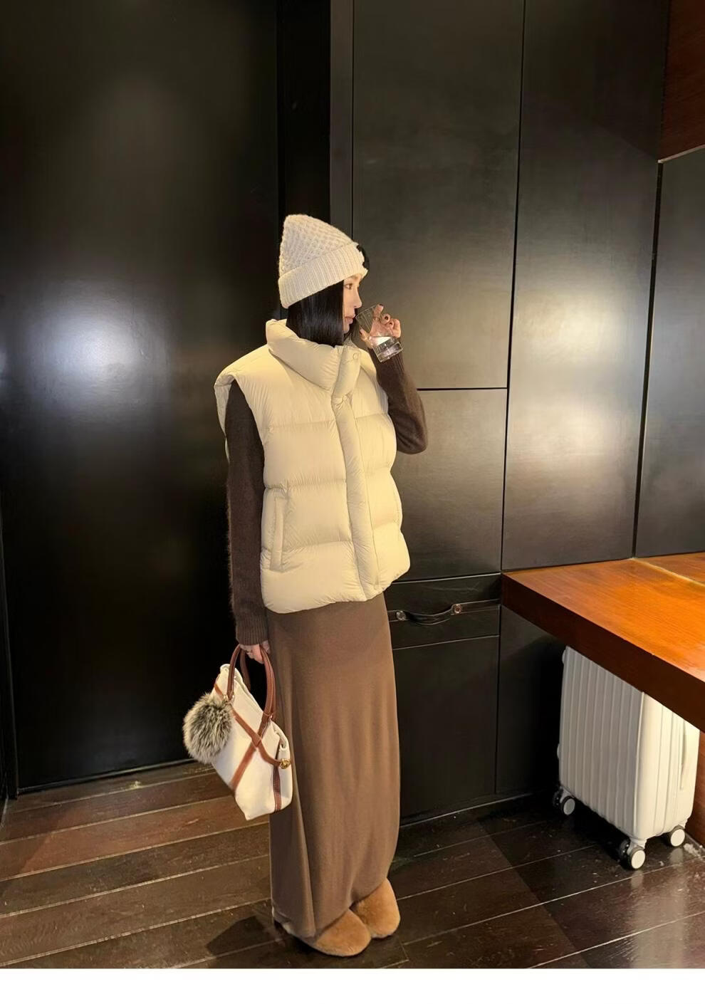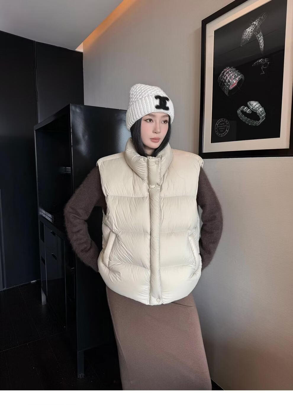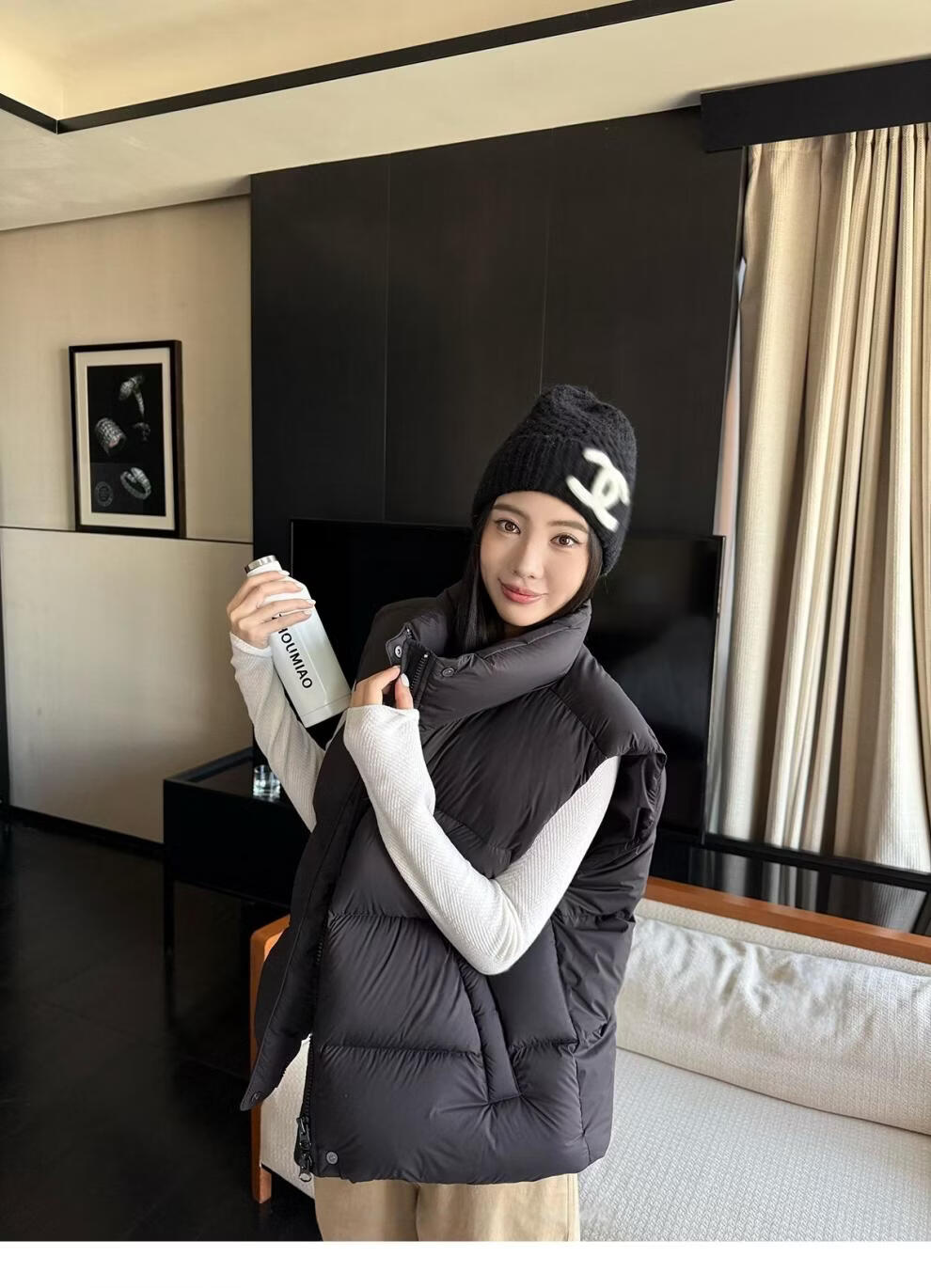 MODX羽绒马甲背心女秋冬外穿时髦洋气2026新款白鸭绒保暖坎肩马夹外套 灰色 L