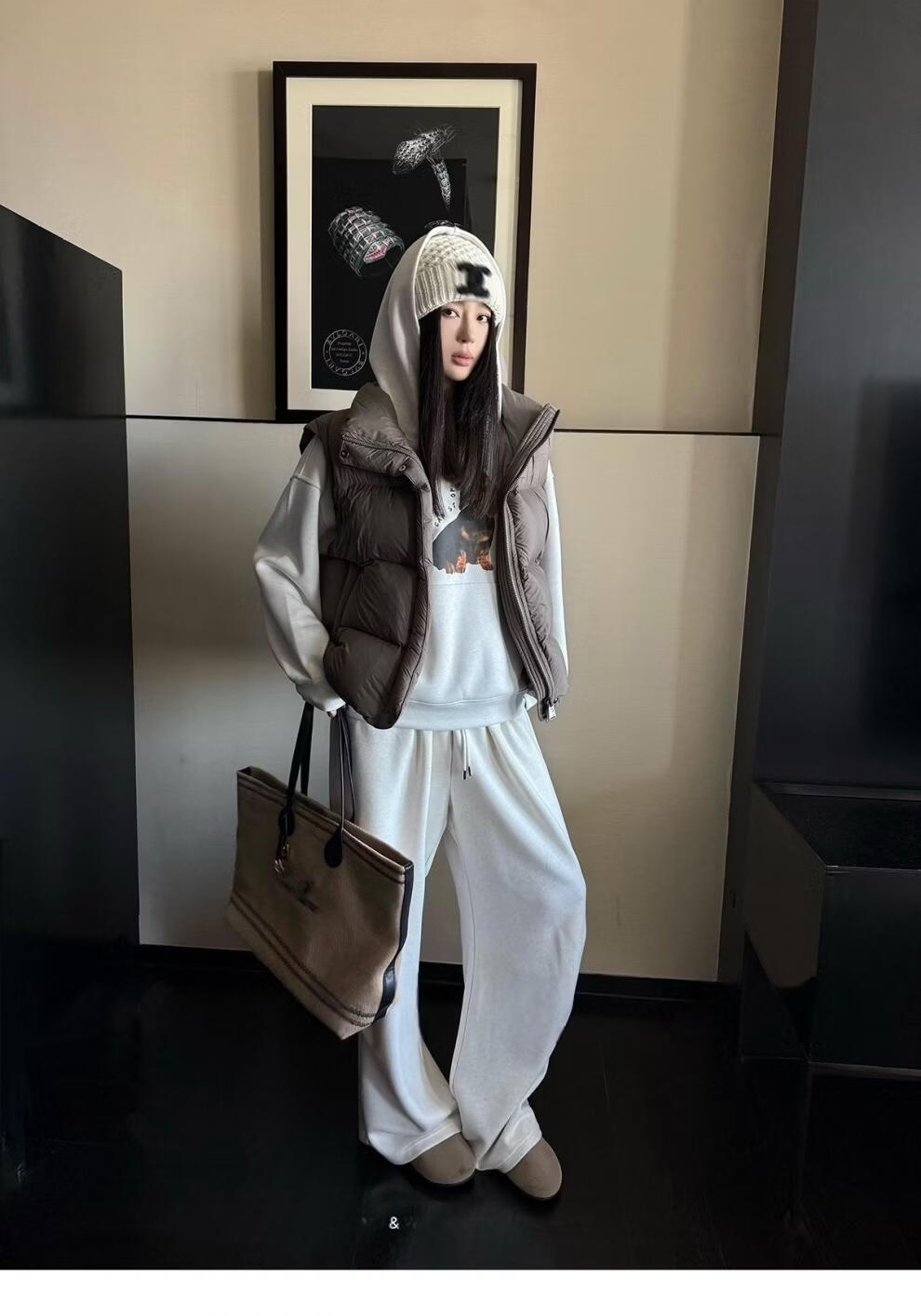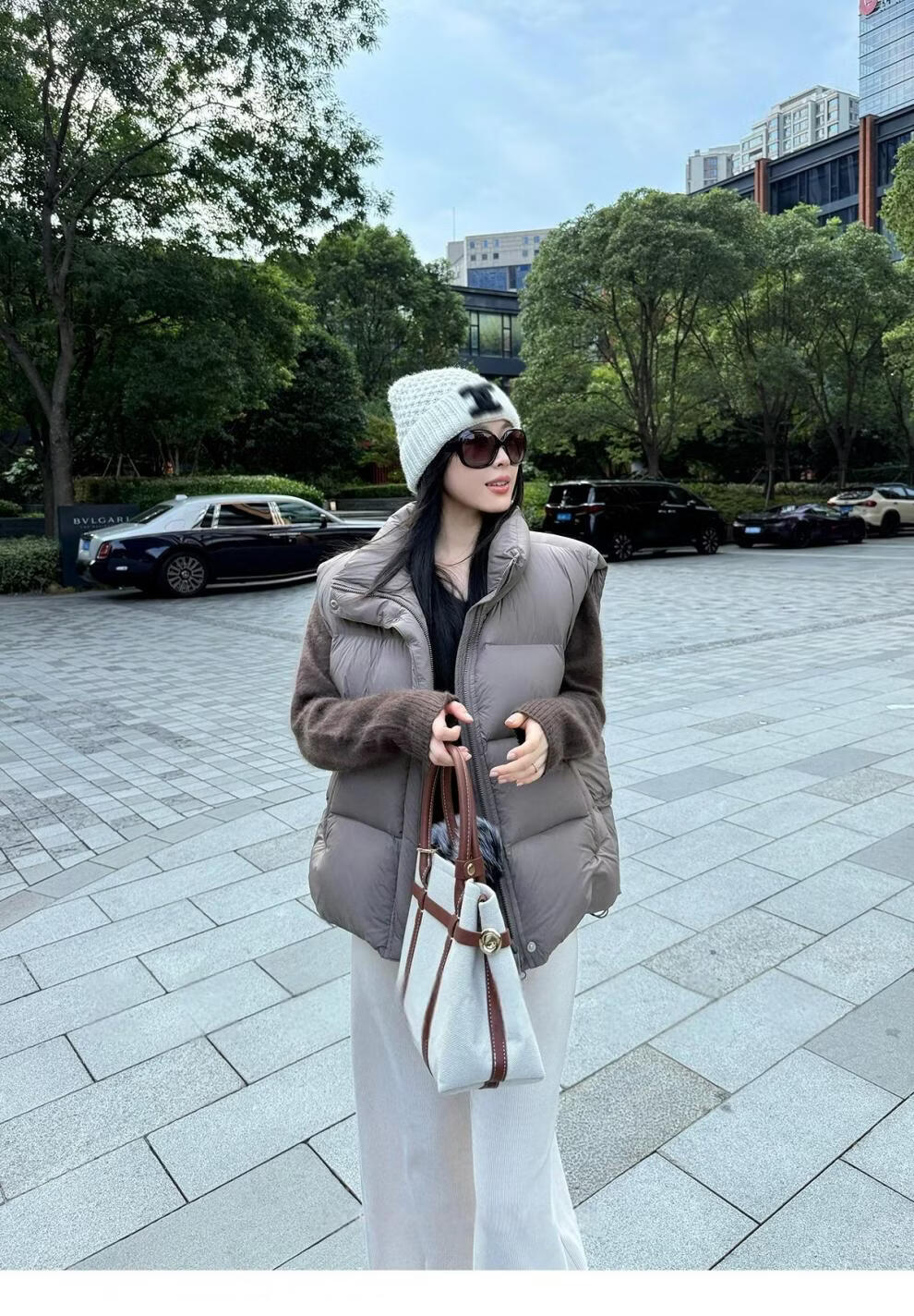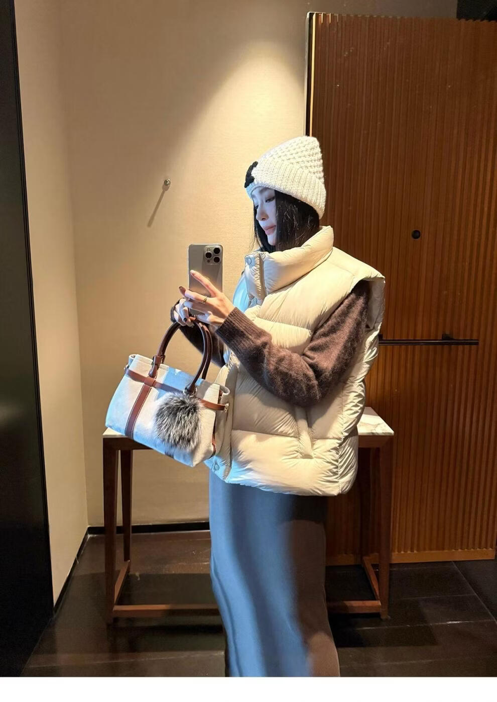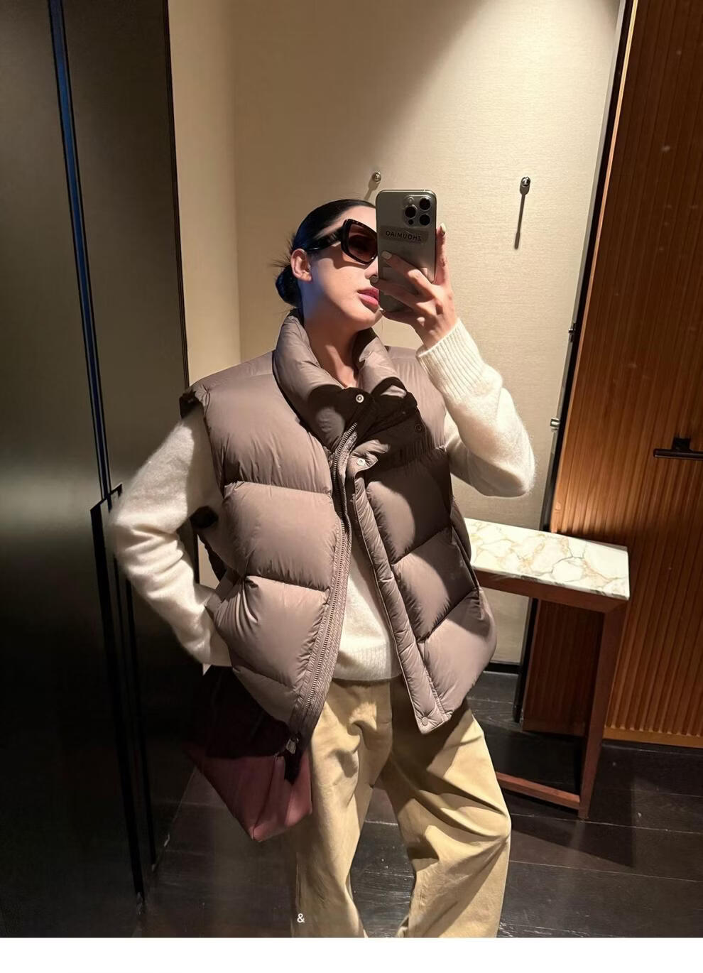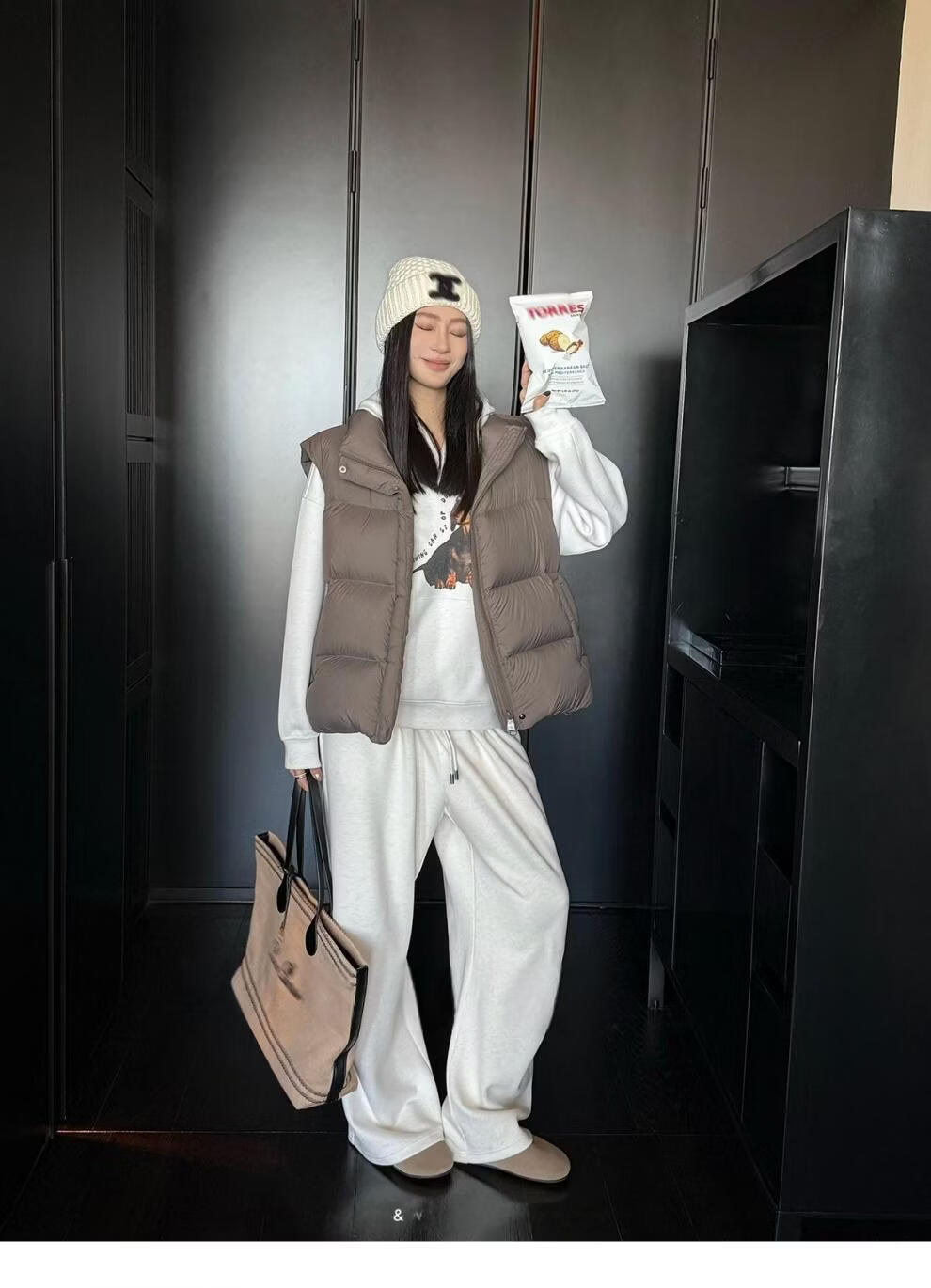 MODX羽绒马甲背心女秋冬外穿时髦洋气2026新款白鸭绒保暖坎肩马夹外套 灰色 L