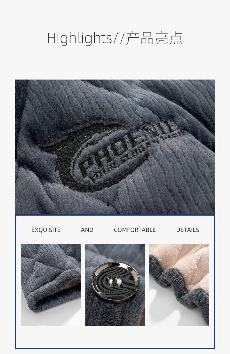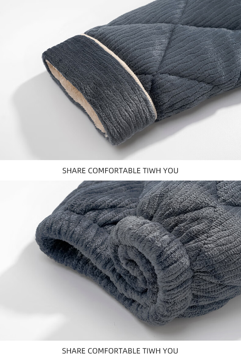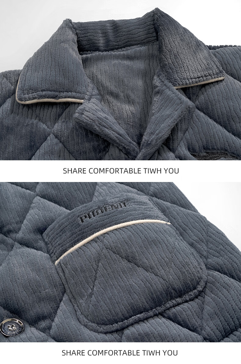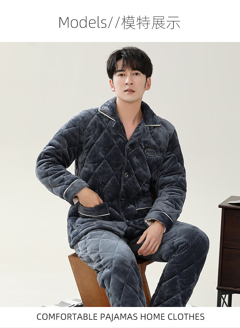 允织睡衣男冬季珊瑚绒三层夹棉加厚加绒棉袄冬天保暖套装男士家居服 6904-墨蓝 L (170) :建议100-120斤穿着