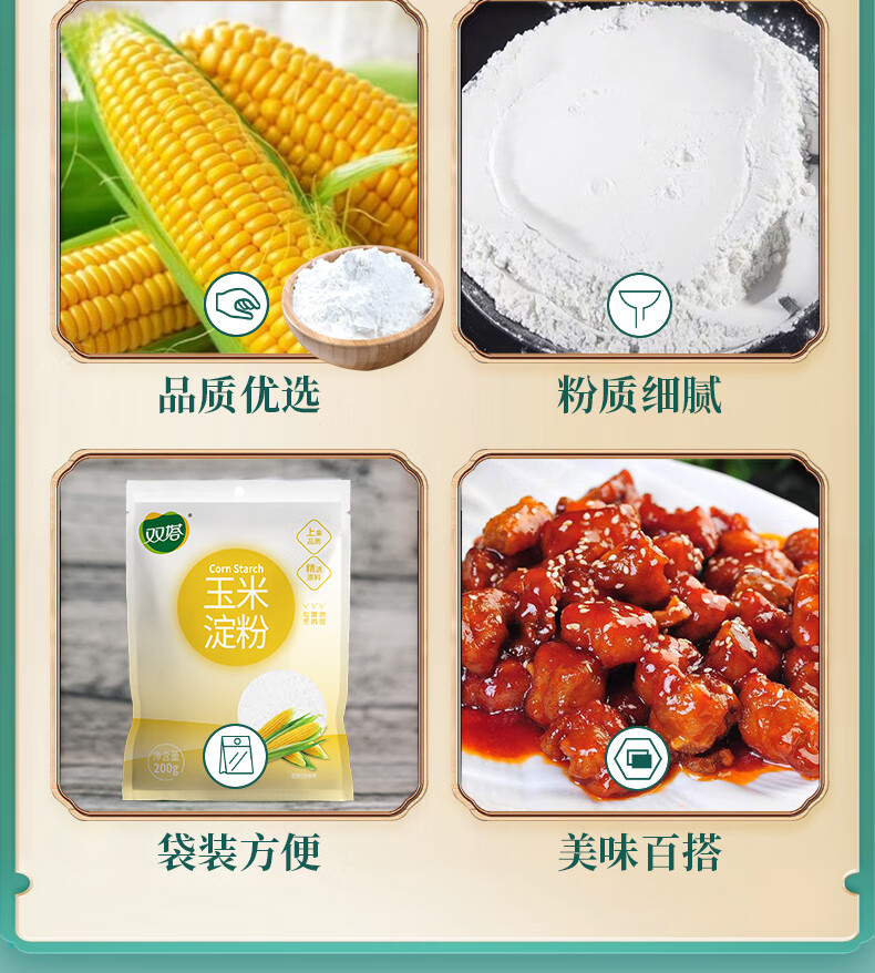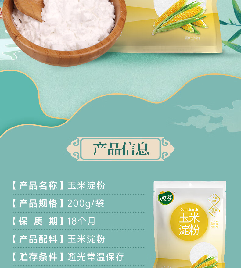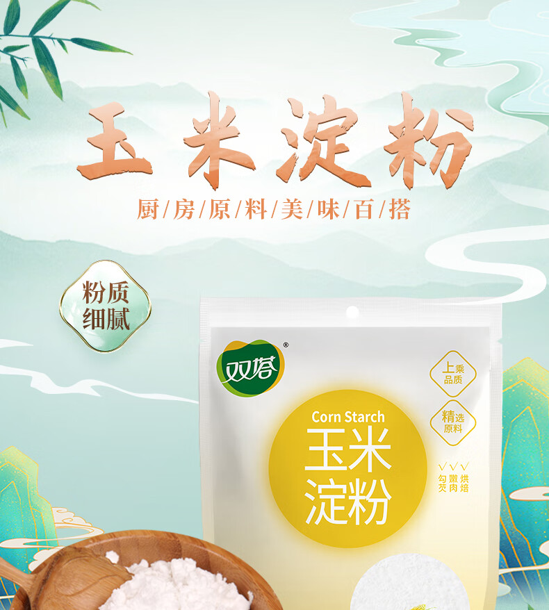 双塔 玉米淀粉200g家用生粉炸酥肉裹肉粉勾芡凉粉饼干蛋糕烘焙原料
