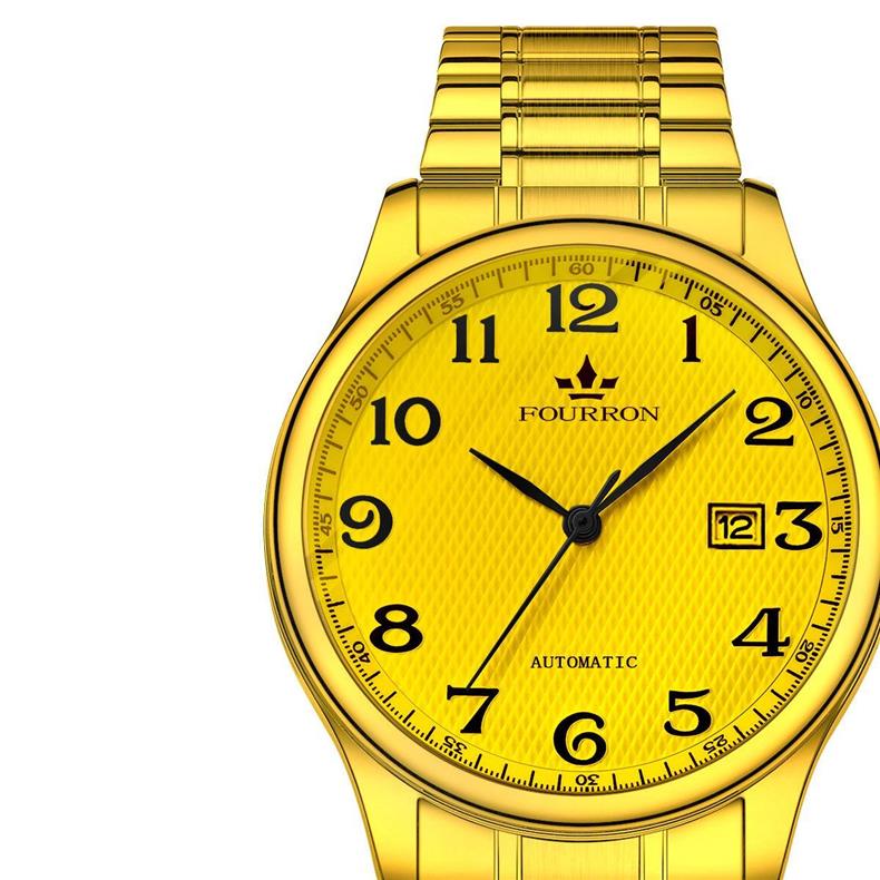新款全自动纯机械手表男士高清大数字陀飞轮夜光防水商务简约男表 旗舰升级加强版-金面 金钢带