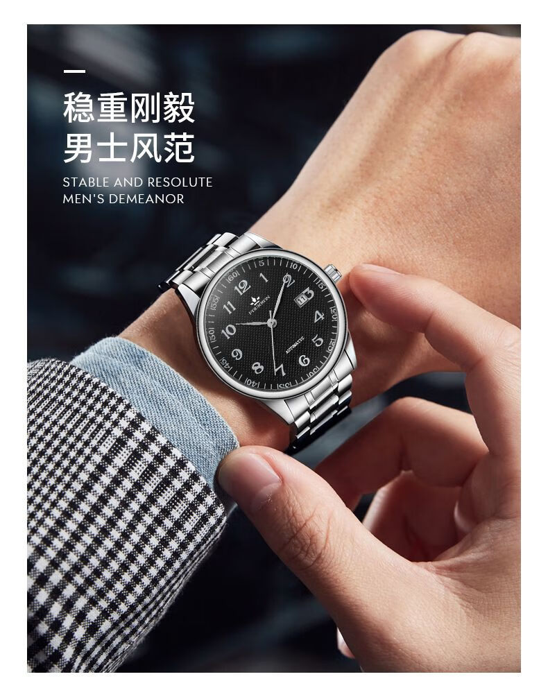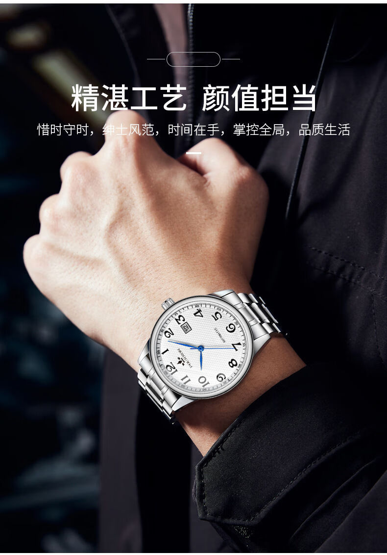 瑞之缘瑞士名表男士手表自动多功能手表男名牌真品高档帅气防水潮款男表 新升级版8-高档礼盒-银白钢