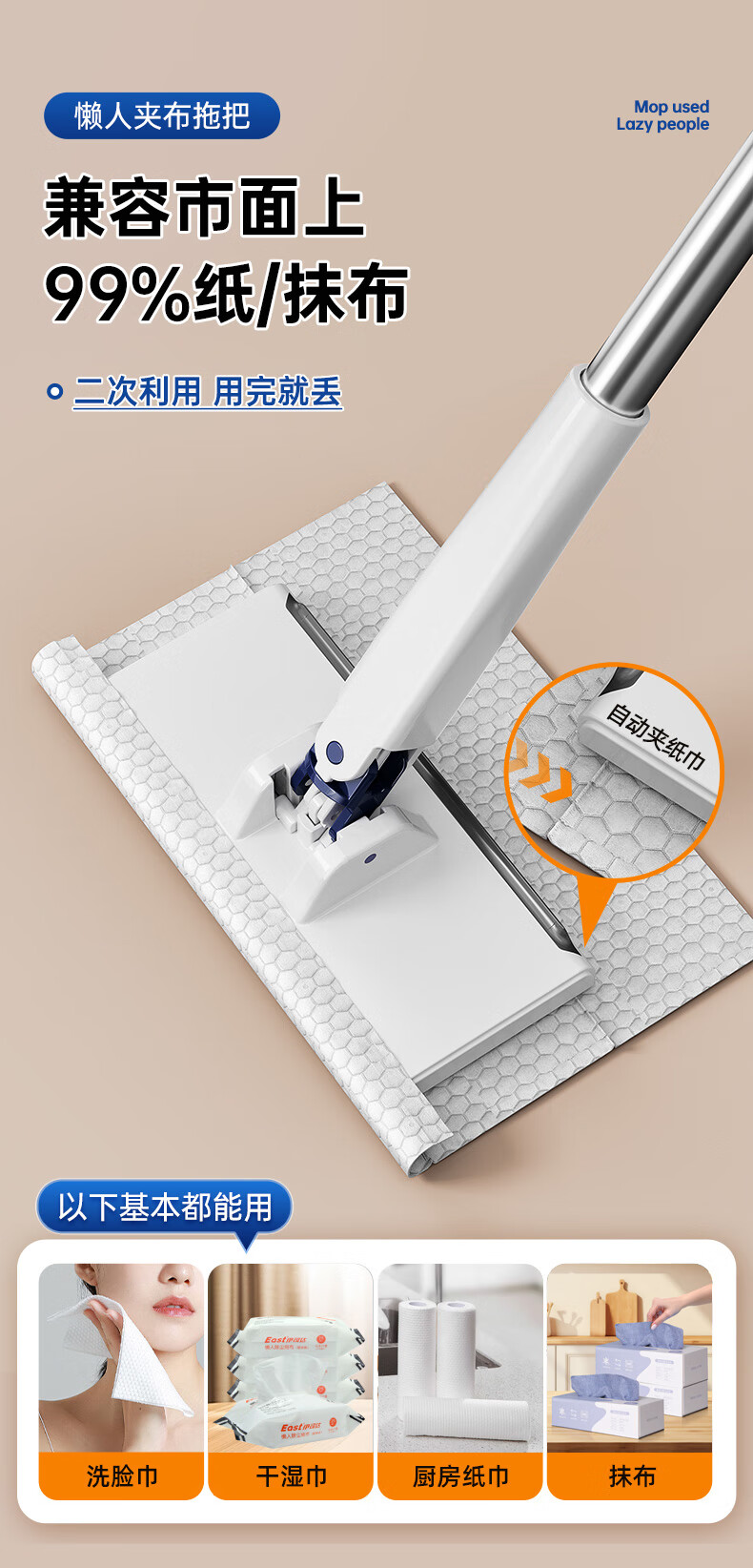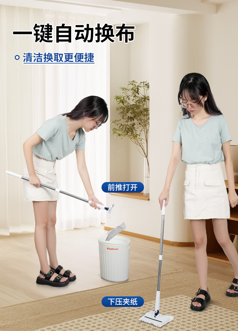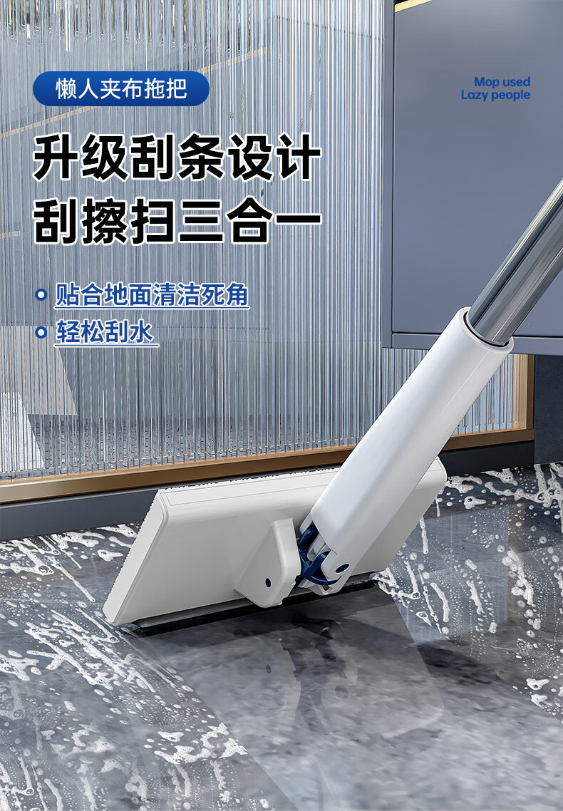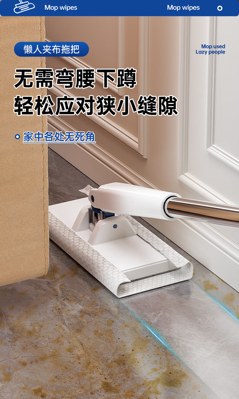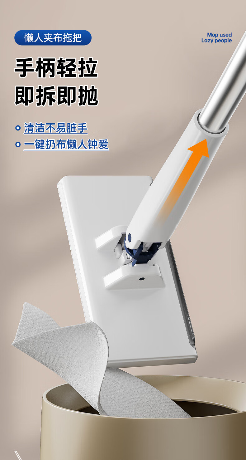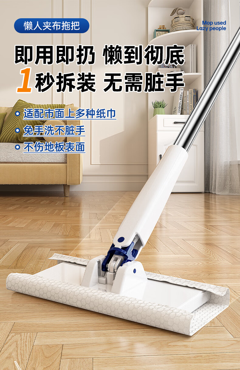 伊司达 免手洗洗脸巾拖把擦玻璃神器拖布迷你平板墙面自动一拖净夹布拖 加长夹布拖+除尘纸【25片装】