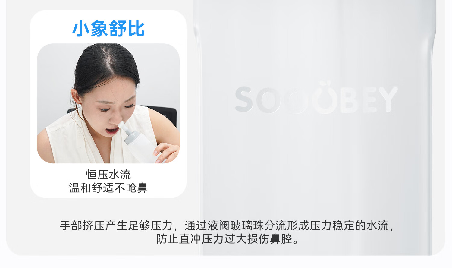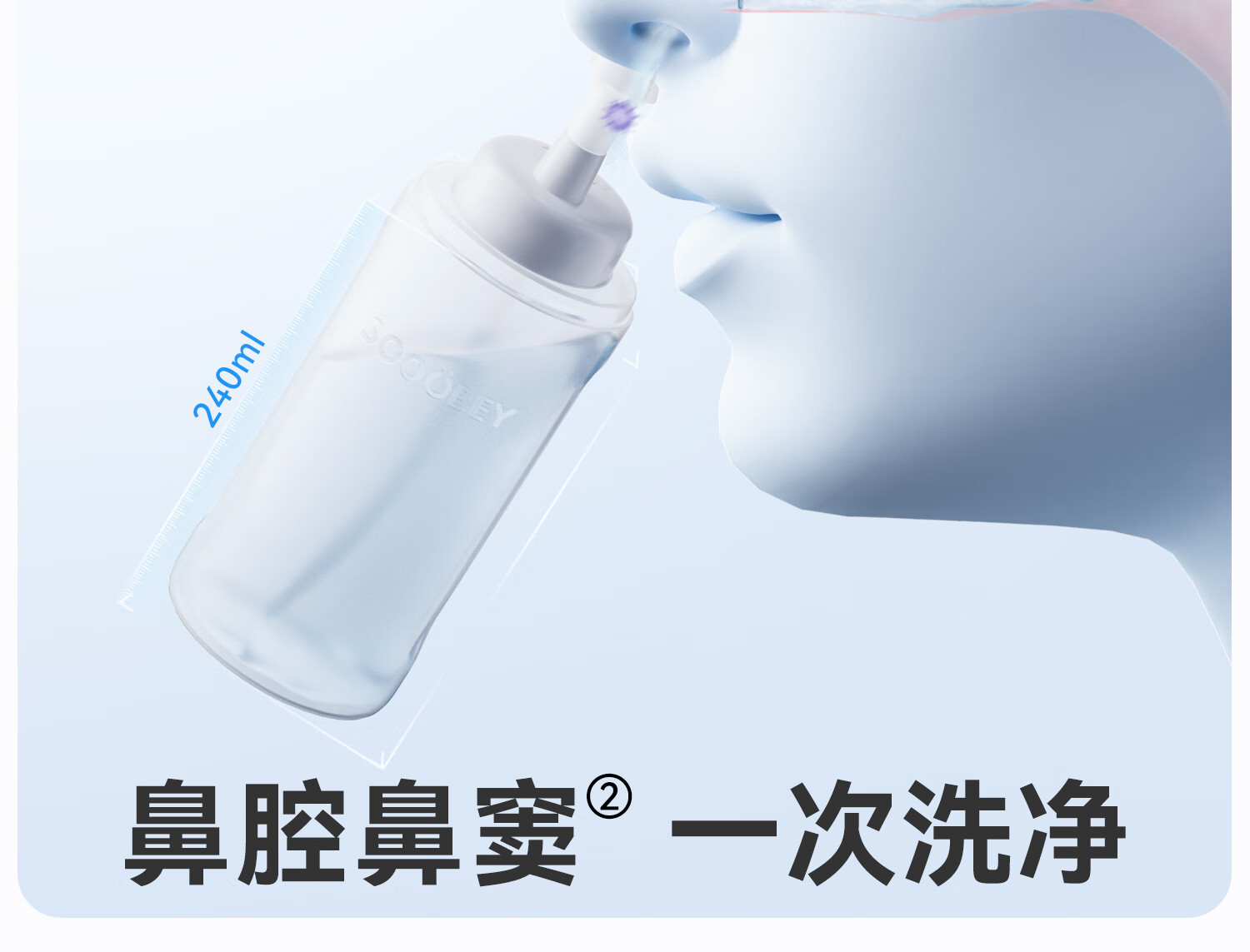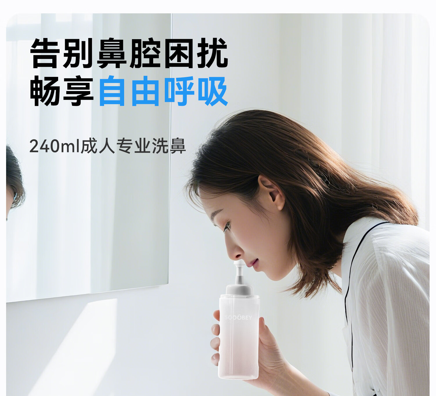 小象舒比洗鼻器成人鼻炎家用鼻腔鼻窦冲洗器医用手动洗鼻壶洗鼻盐生理盐水 【新品旗舰 体验装】240ml洗鼻器+10袋洗鼻剂
