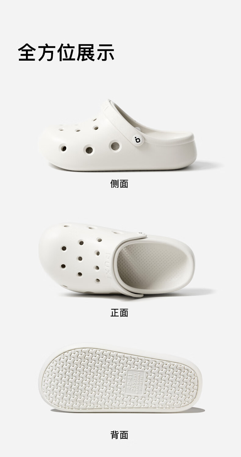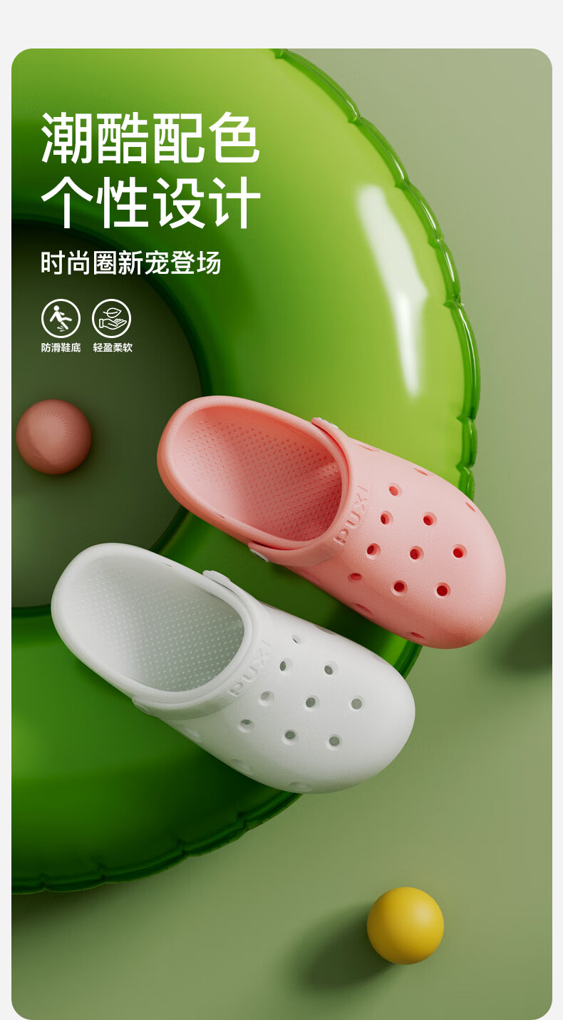 朴西厚底增高洞洞鞋女士夏季新款户外防滑包头海边沙滩不臭脚凉拖鞋男 珍珠黑【居家外穿两用】 42-43 适合(41-42)