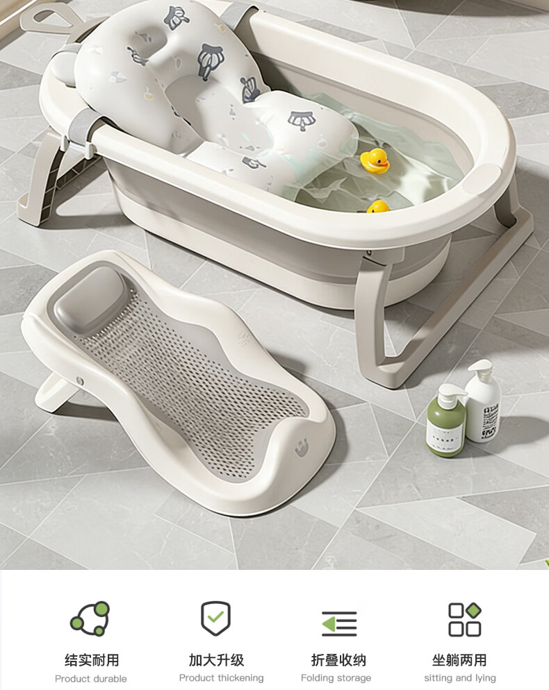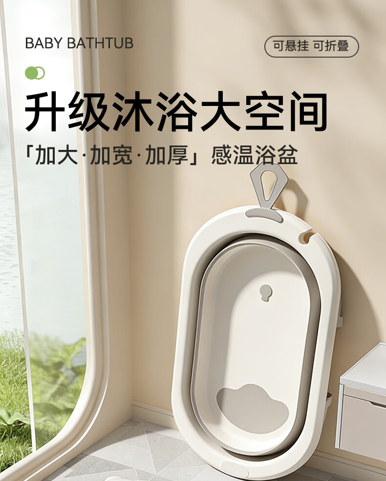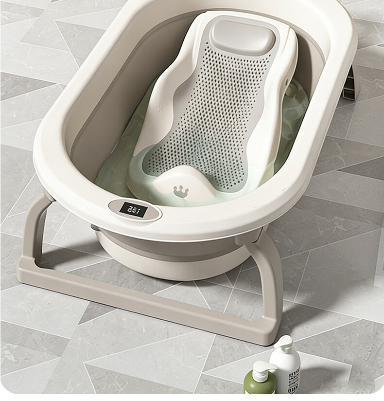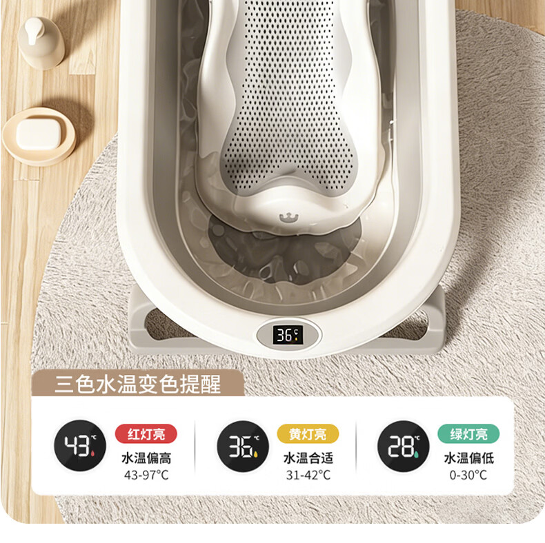 稚芽婴儿洗澡盆 可折叠宝宝婴儿感温浴盆加大加厚洗澡神器新生儿用品 【加长款】感温浴盆+浴架+脸盆*1+大礼包