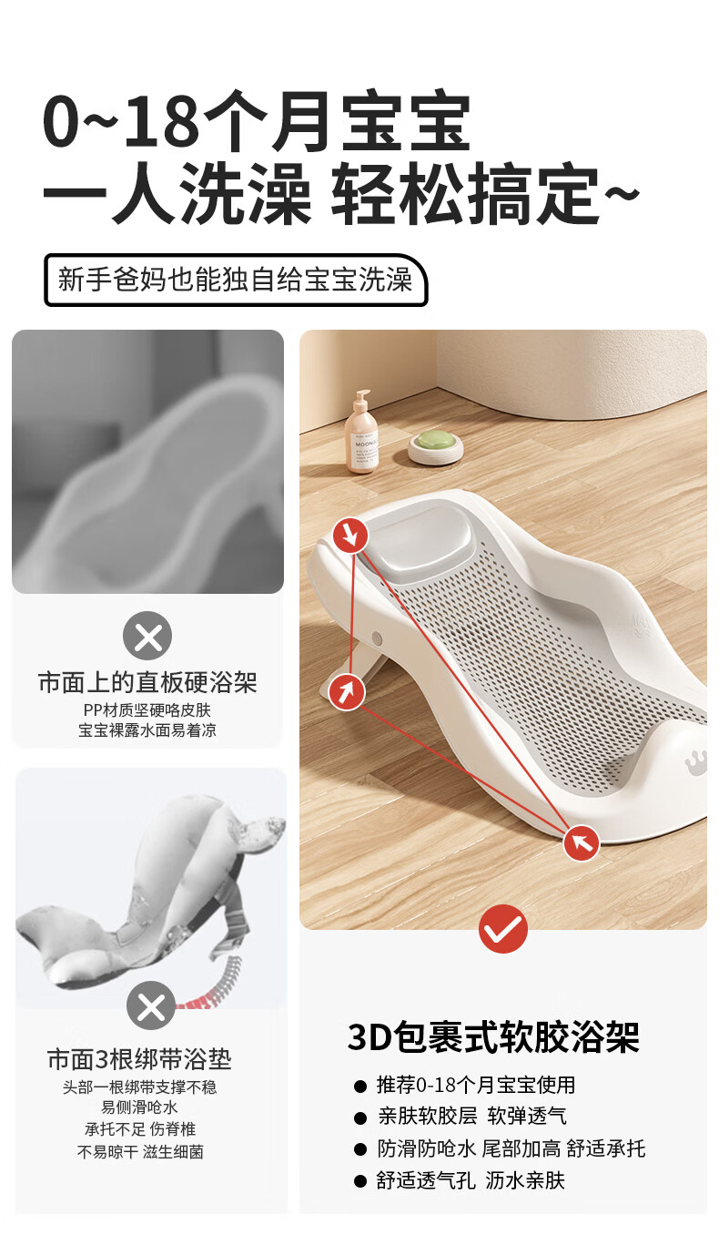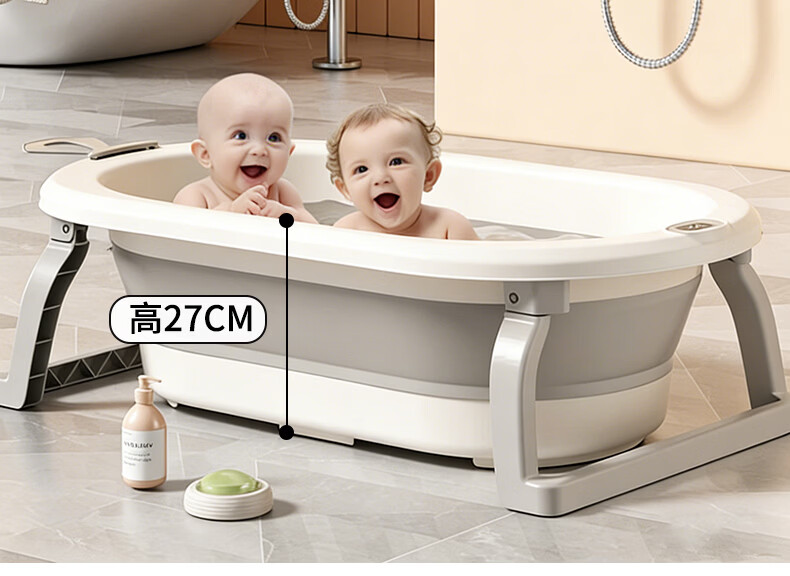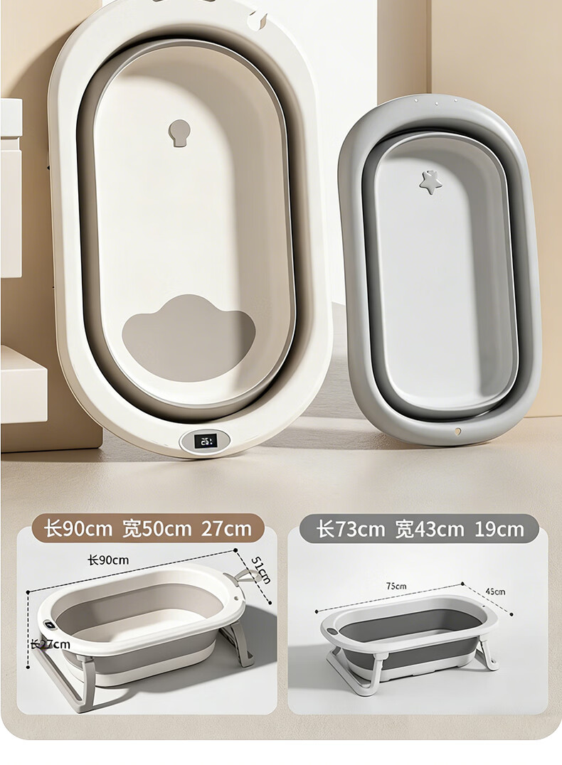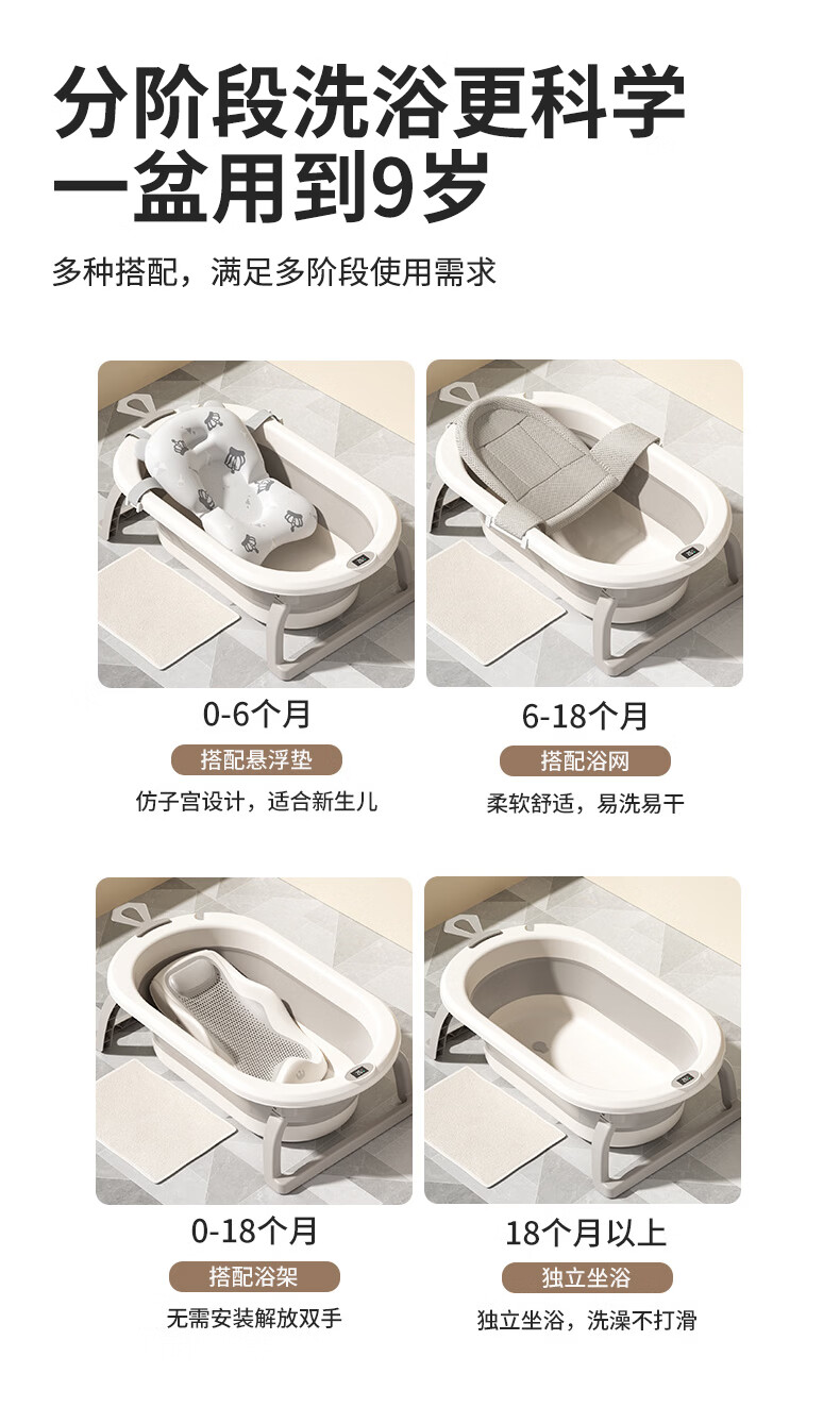 稚芽婴儿洗澡盆 可折叠宝宝婴儿感温浴盆加大加厚洗澡神器新生儿用品 【加长款】感温浴盆+浴架+脸盆*1+大礼包