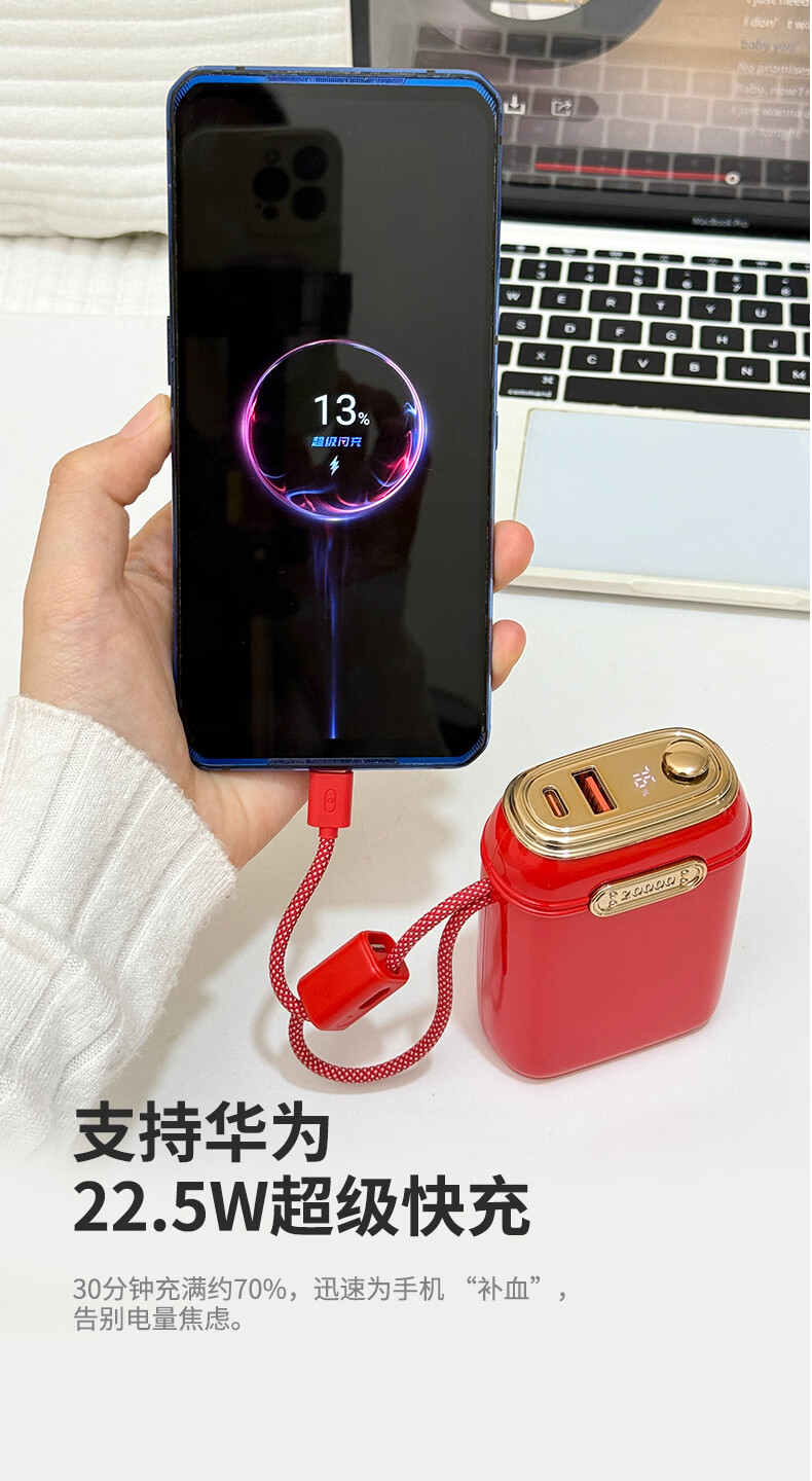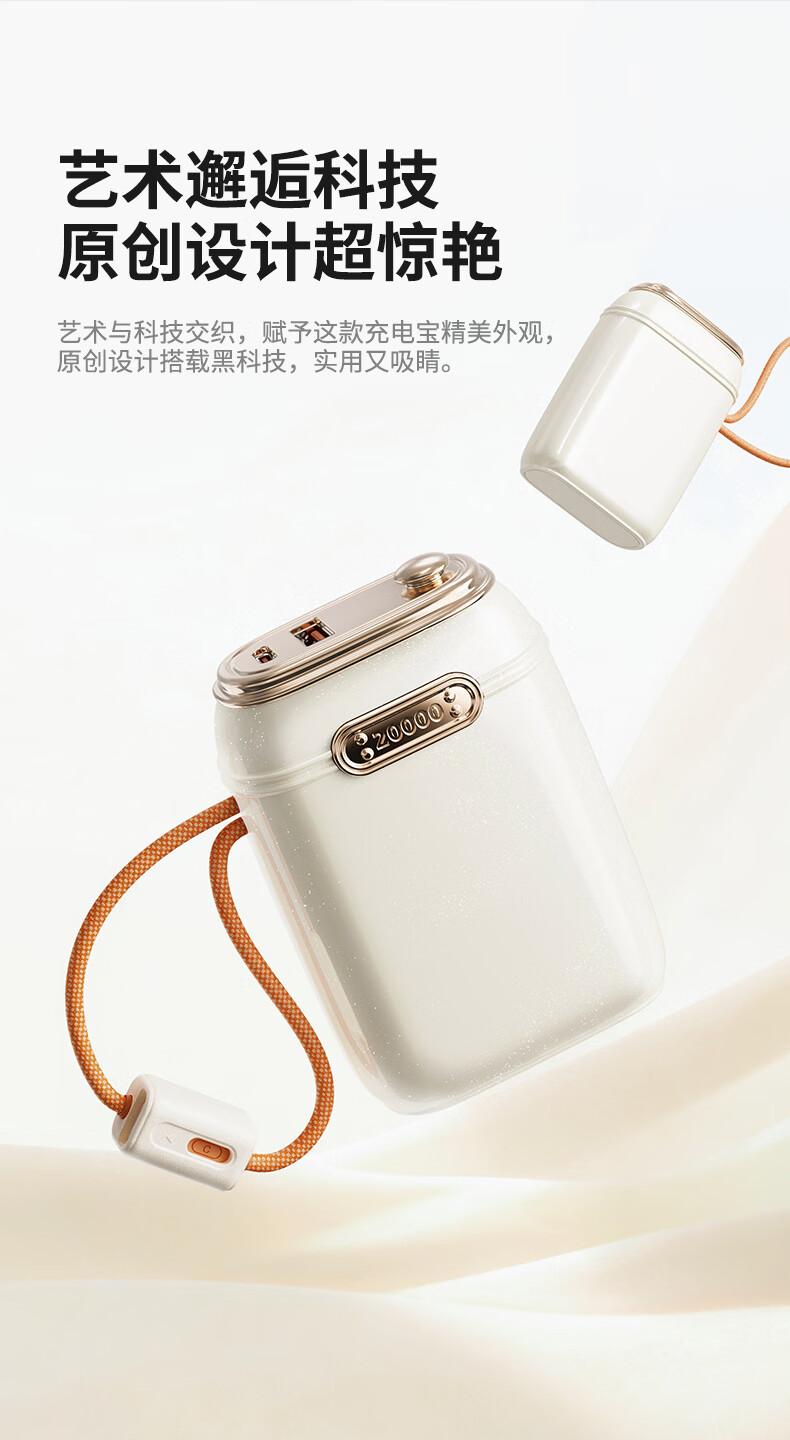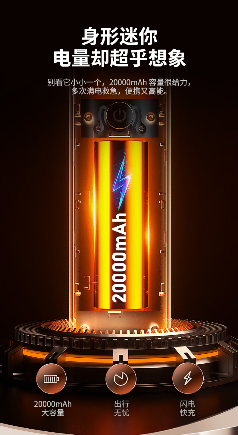京东京造【能量怪兽15号】165W自带线20000毫安充电宝3c认证可上飞机移动电源适用苹果华为小米笔记本电脑