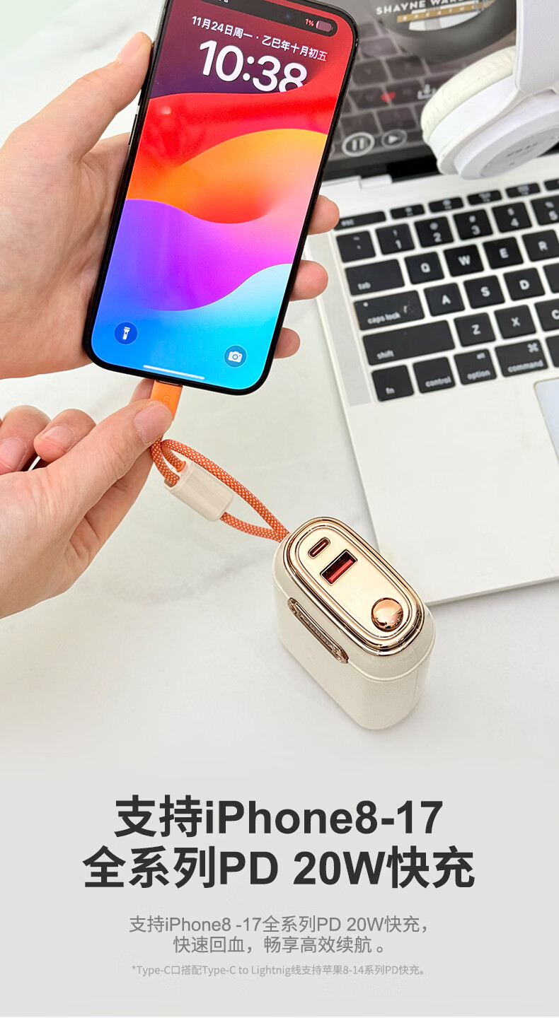 品胜[新升级]苹果充电线Type-c数据线PD27W/20W快充to Lightning适用iPhone14/13/12手机平板车载USB-C