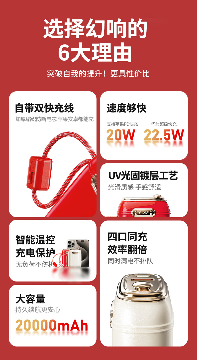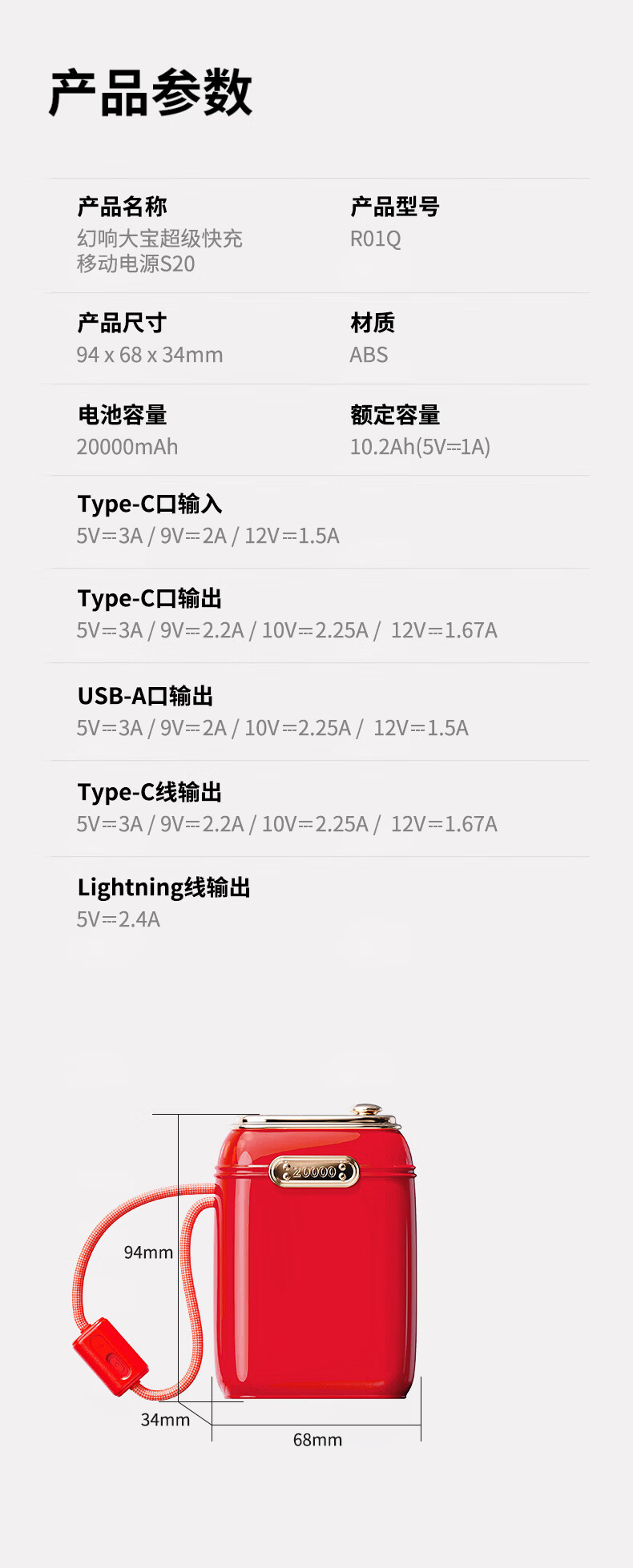 幻响(i-mu)S20大宝超级快充移动电源充电宝20000mAh小巧便携2万毫安支持超级快充适用苹果华为小米安卓等 S20新款2万毫安-白色