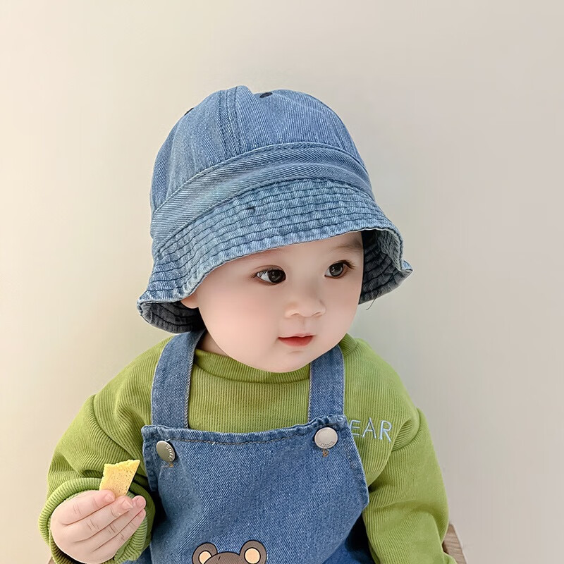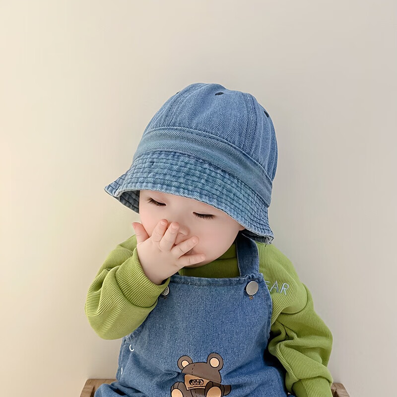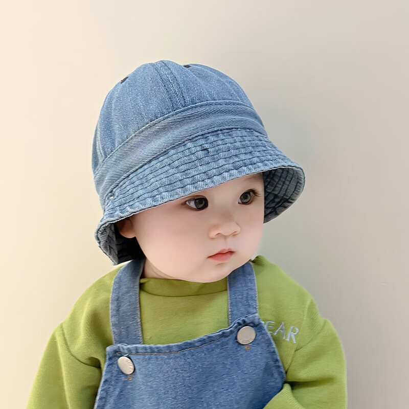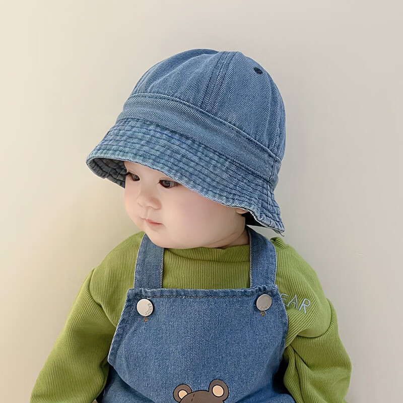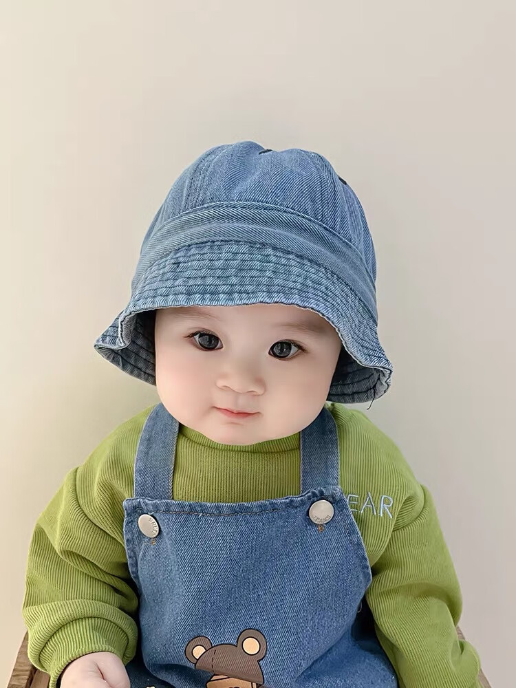 G.duck婴幼儿帽子春秋季儿童牛仔渔夫帽夏韩版潮盆帽宝宝男女童遮阳防晒 浅蓝牛仔 大码52cm/约1.5-4岁