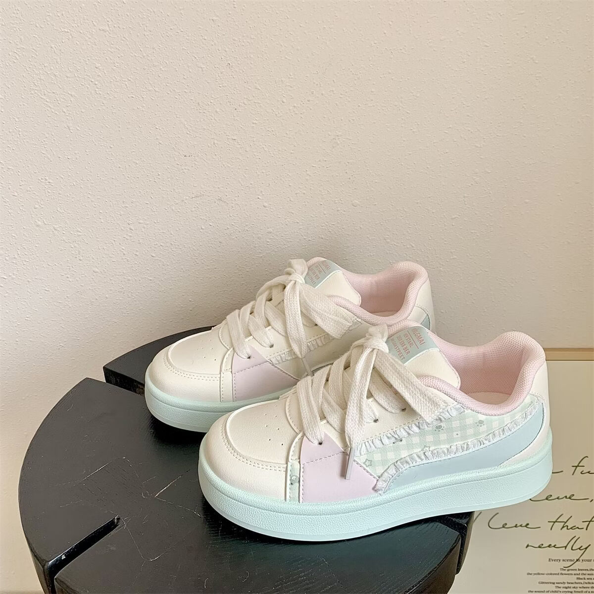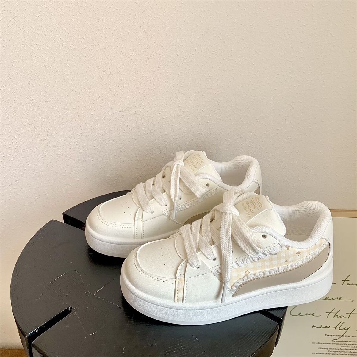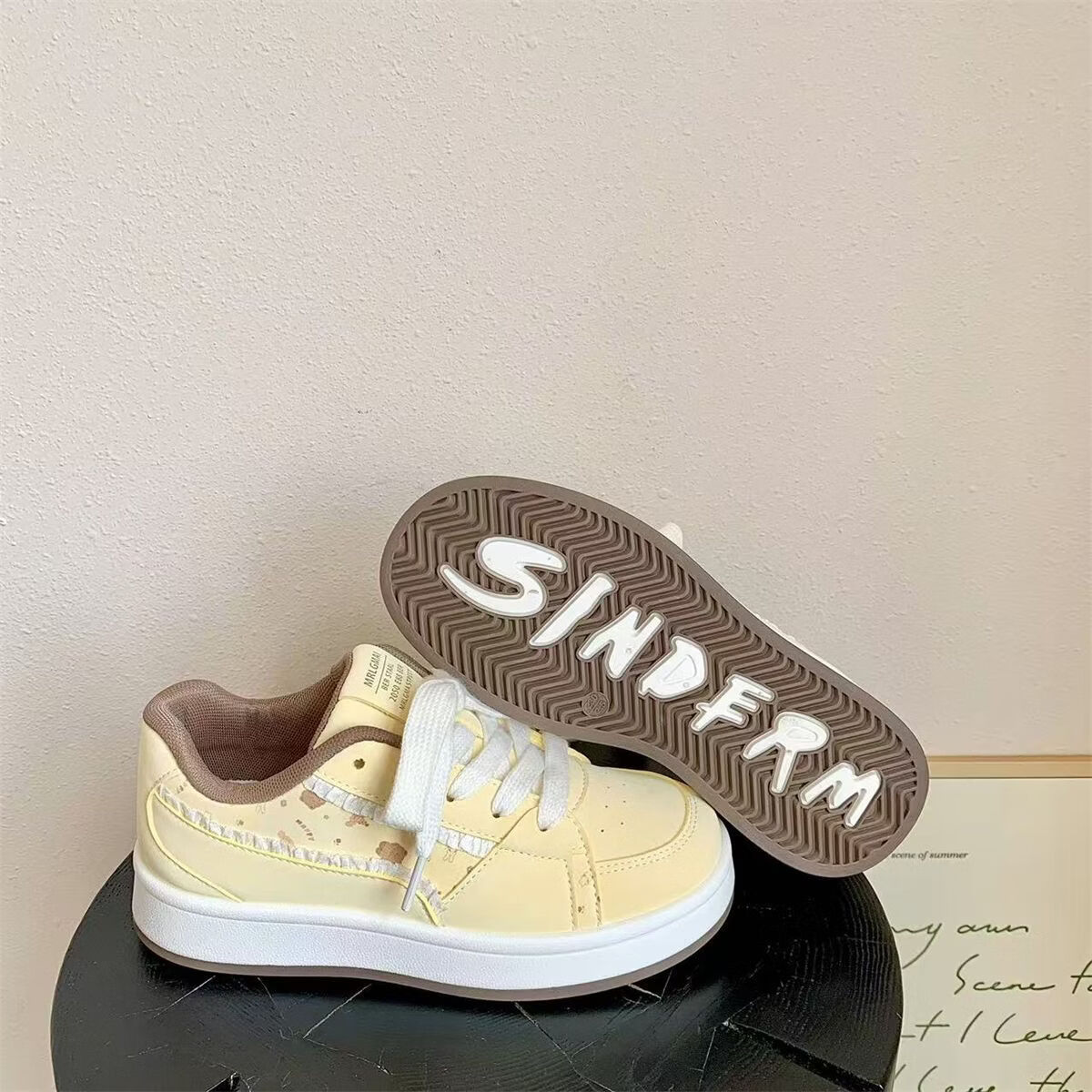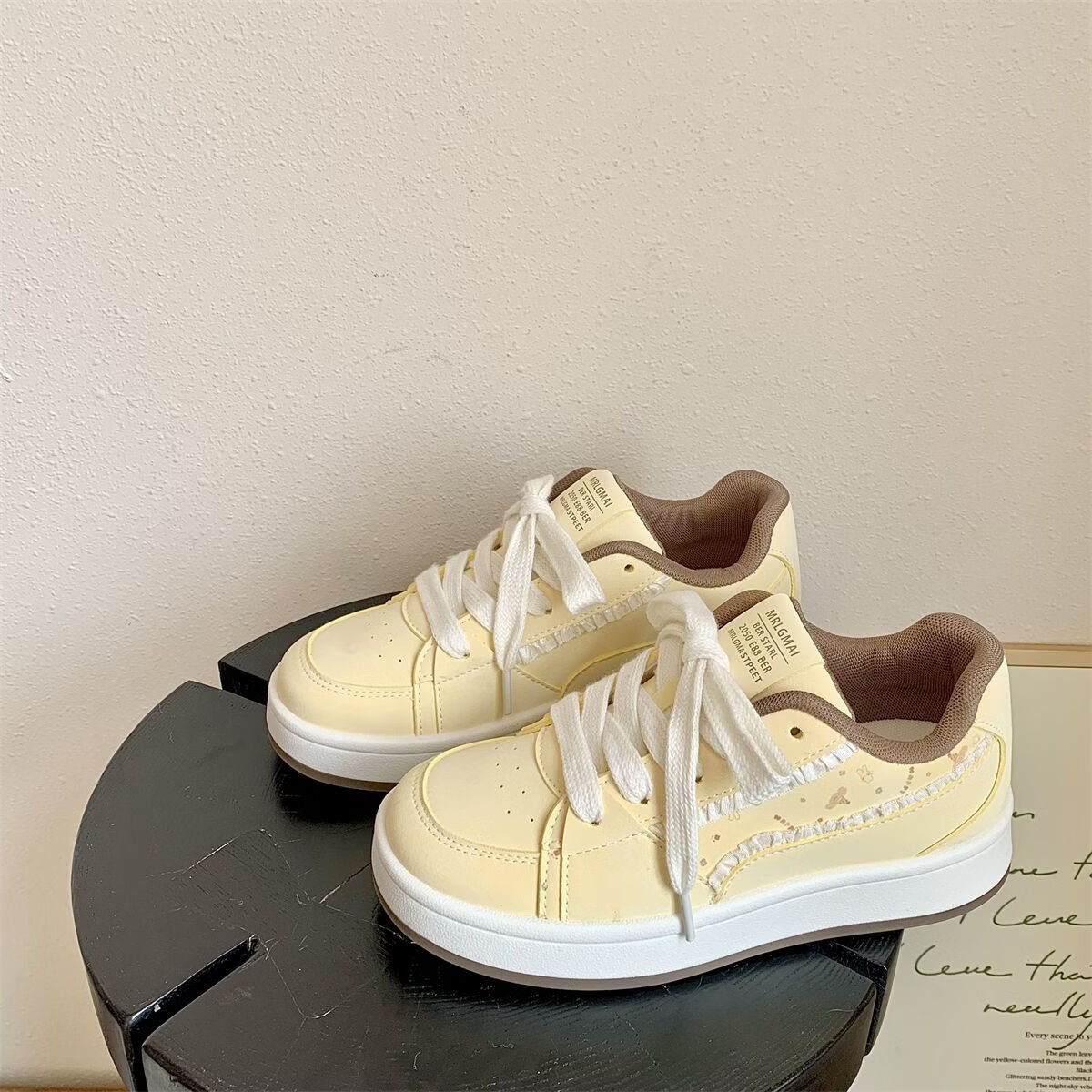绮步佳人厚底透气休闲运动板鞋女小白鞋拼色百搭低帮板鞋 黄色 40