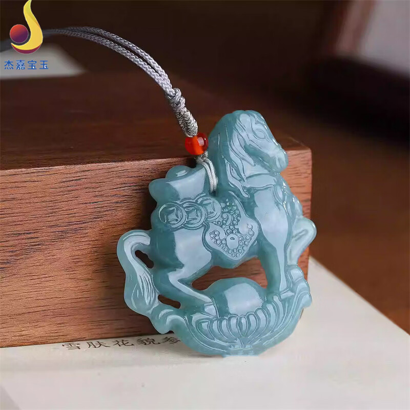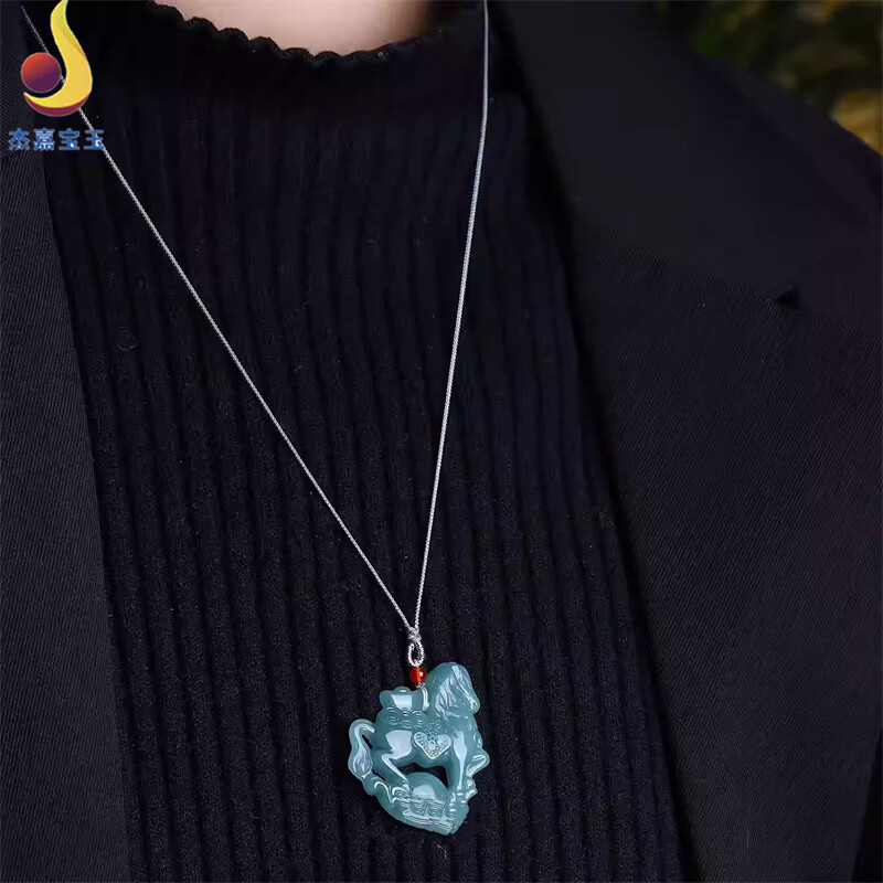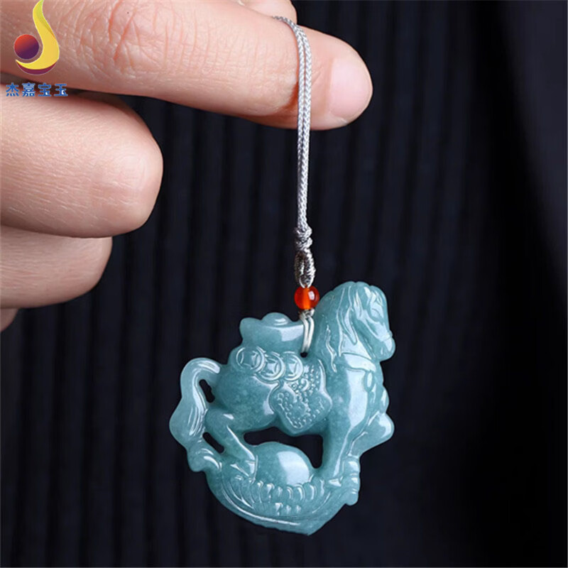 杰嘉宝玉【马上有钱】A货翡翠玉吊坠蓝水翠玉生肖马玉石挂件男女玉佩项坠