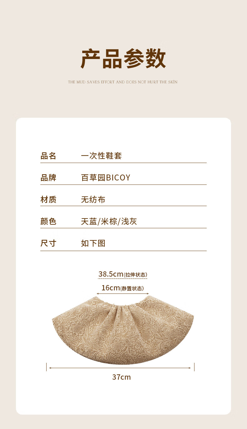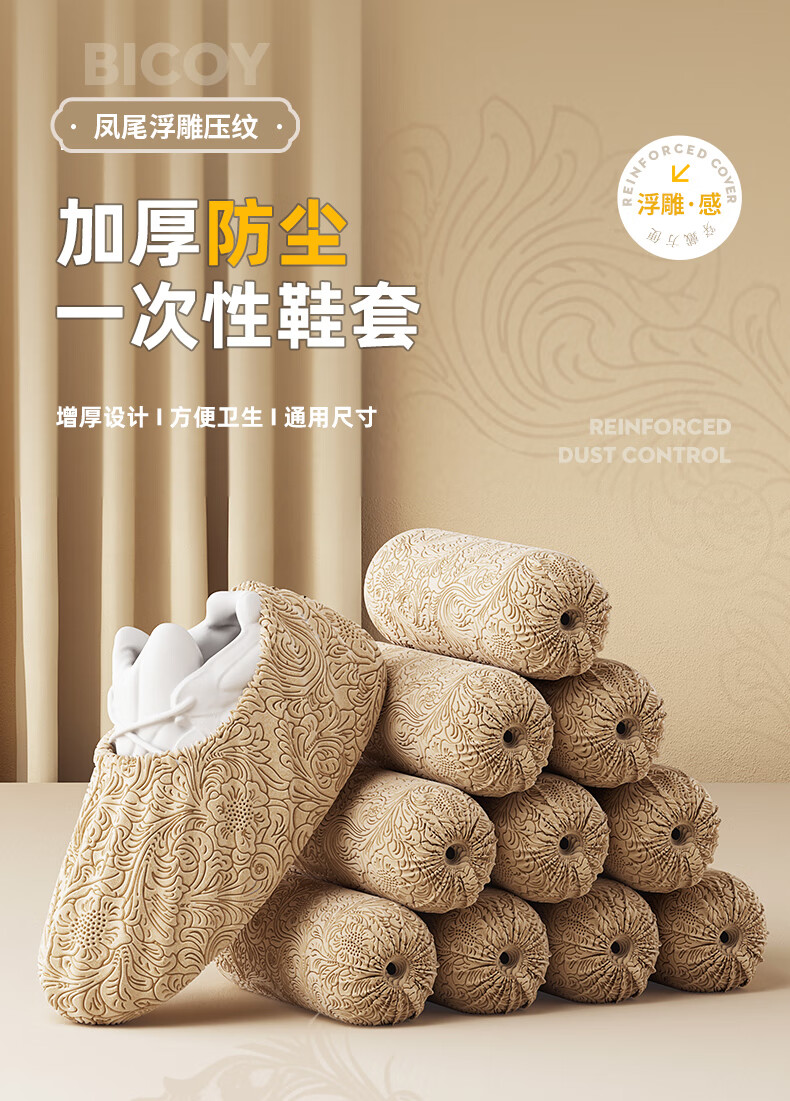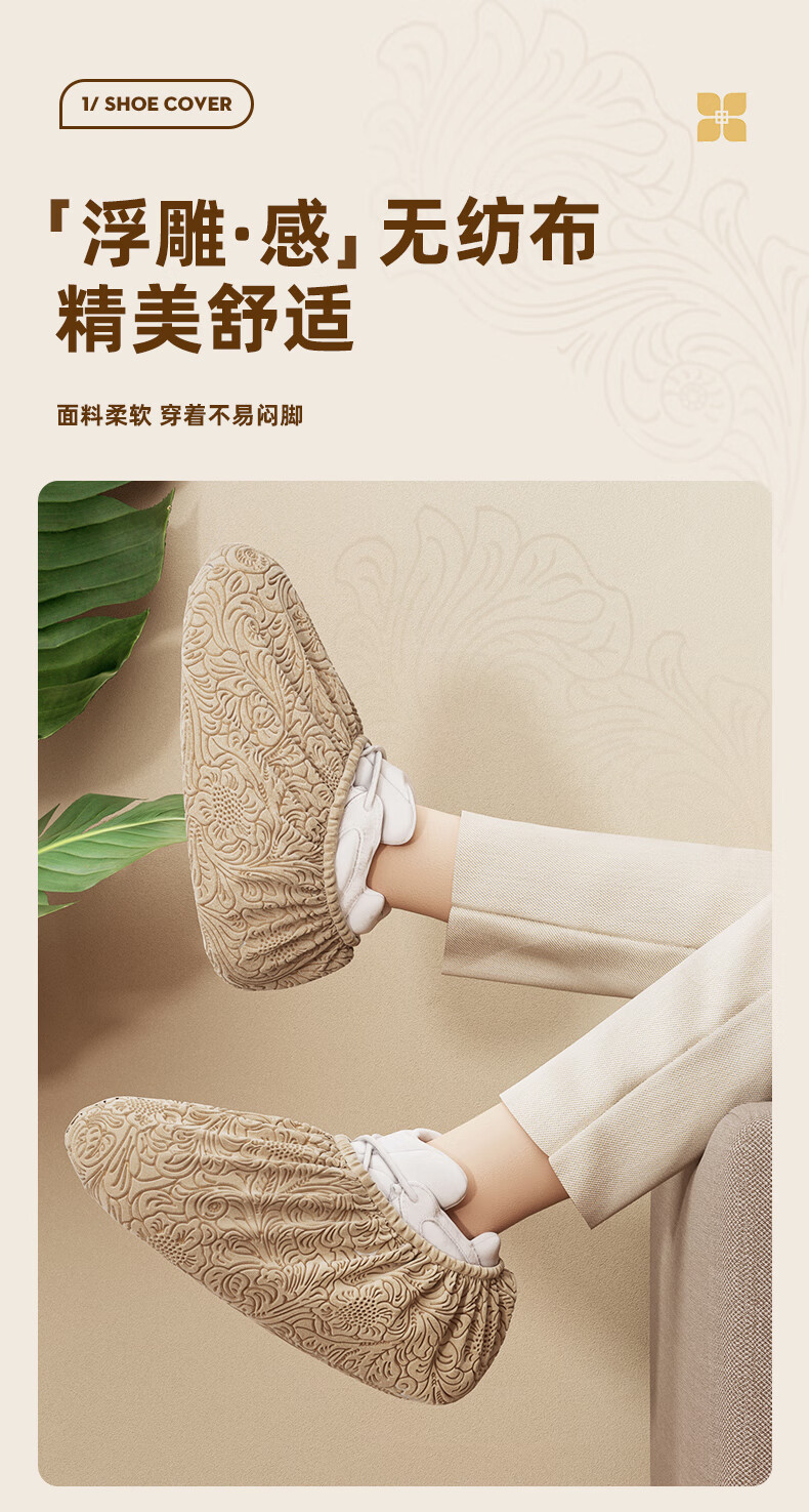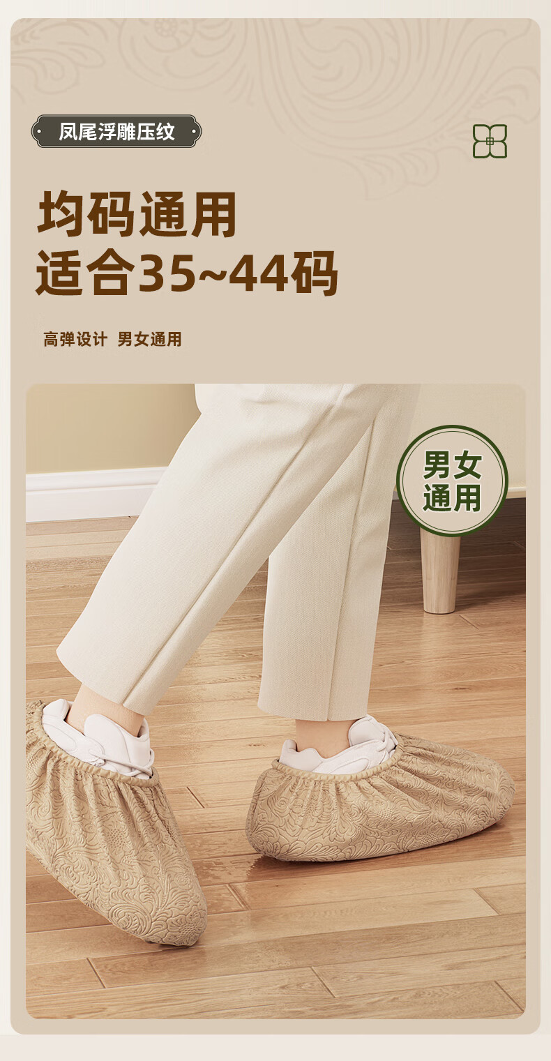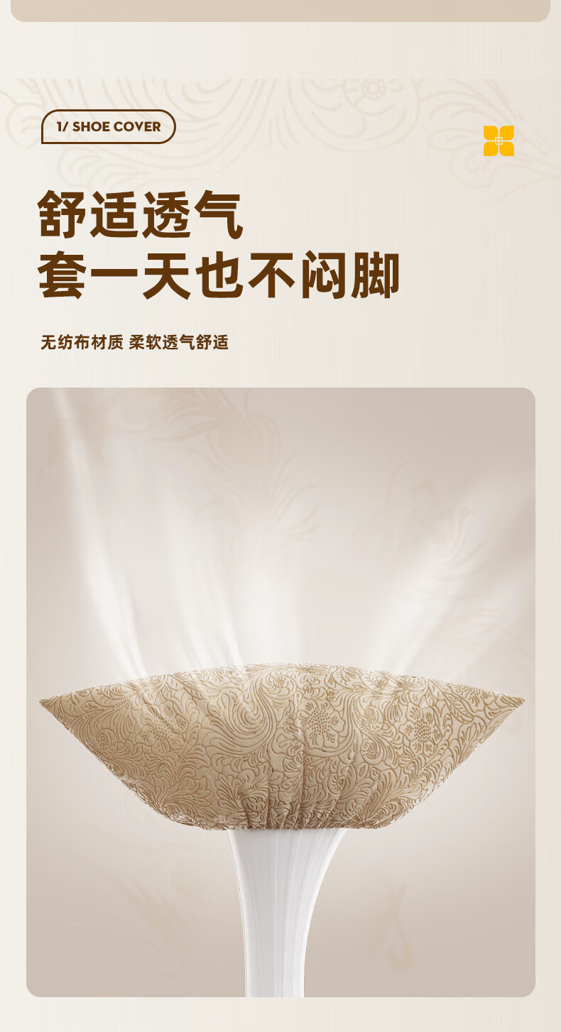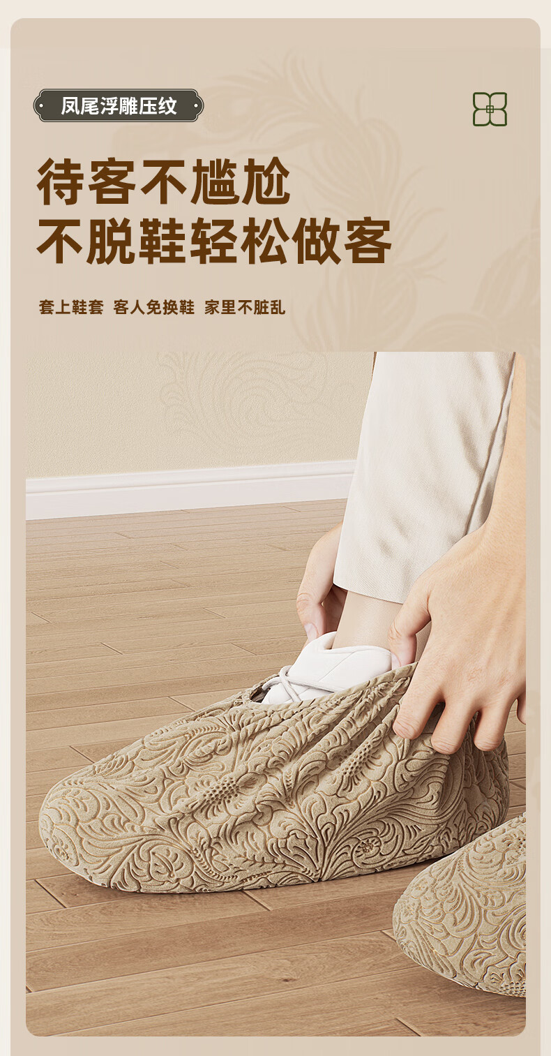 百草园一次性鞋套家用室内客人加厚特厚耐磨无纺布学生机房专用防水防滑 凤尾纹【米棕色】加厚鞋套 100只装