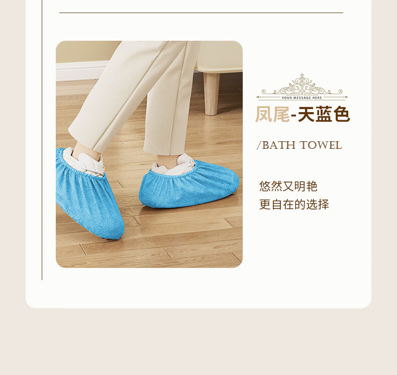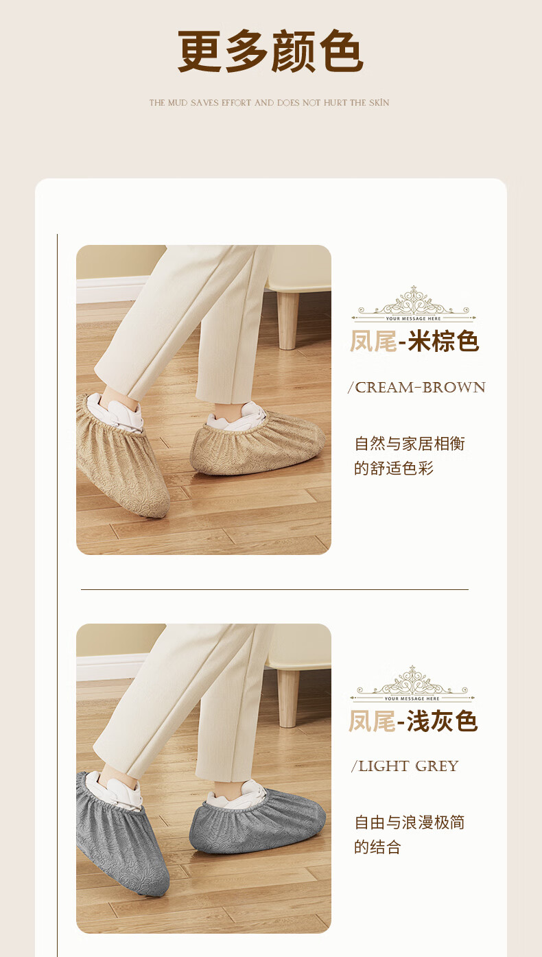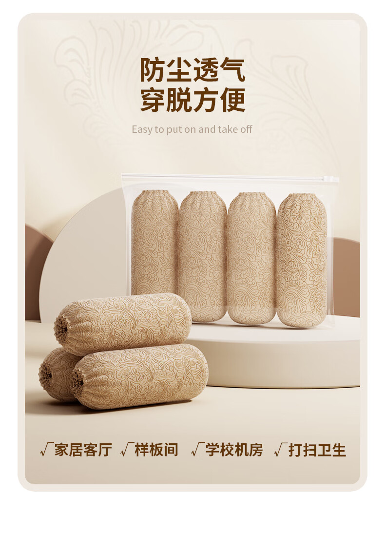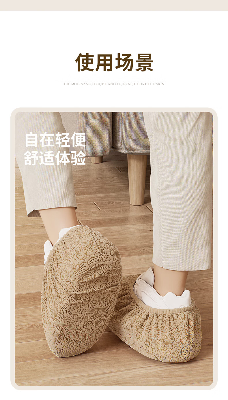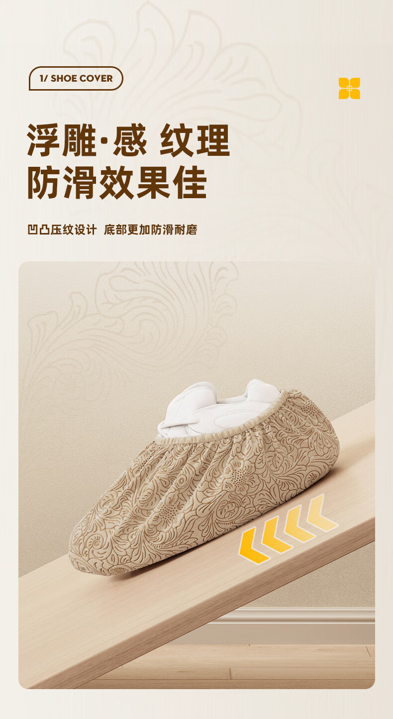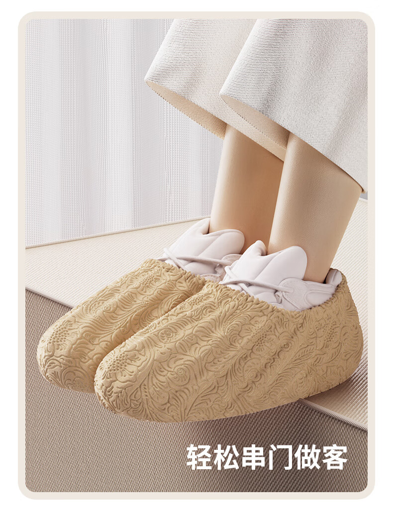百草园一次性鞋套家用室内客人加厚特厚耐磨无纺布学生机房专用防水防滑 凤尾纹【米棕色】加厚鞋套 100只装