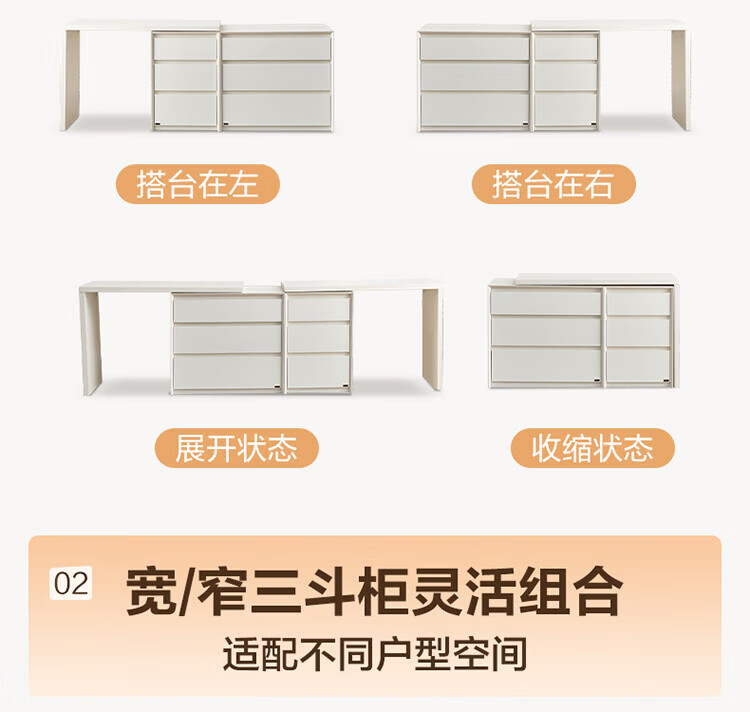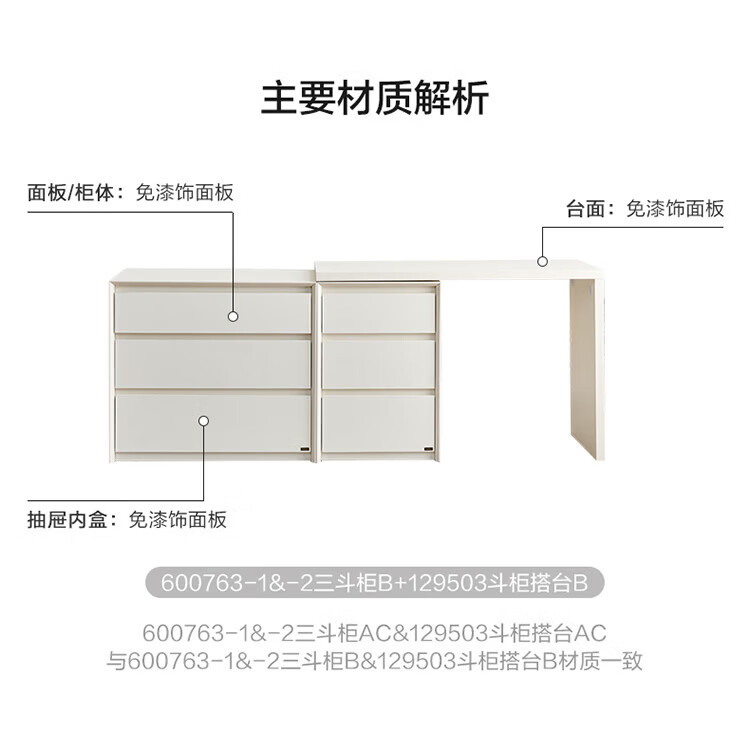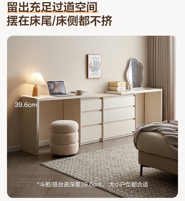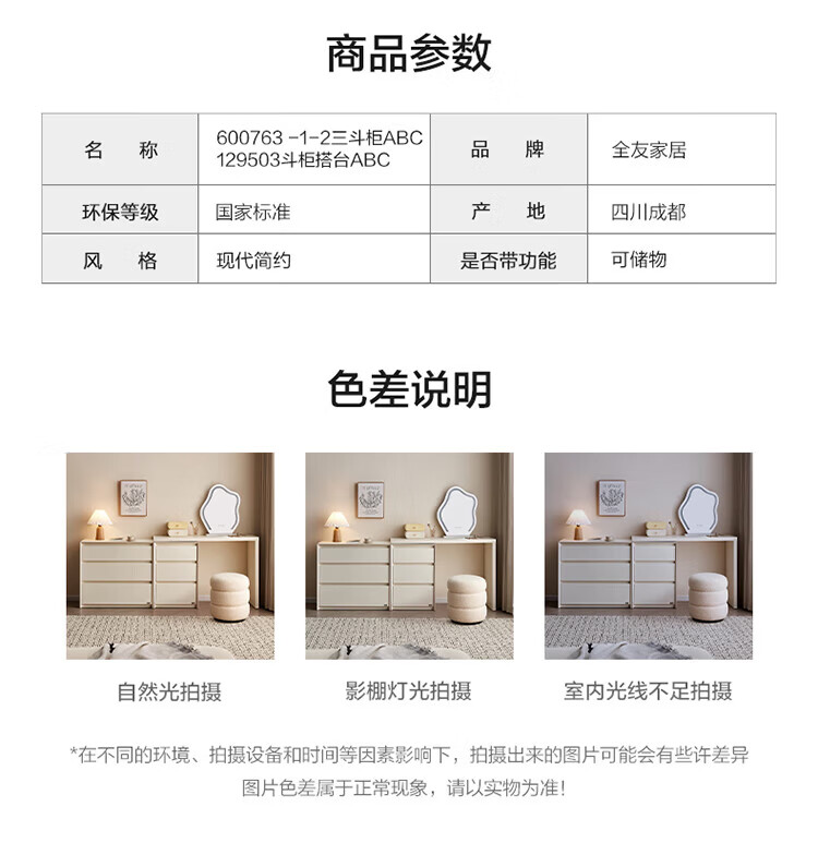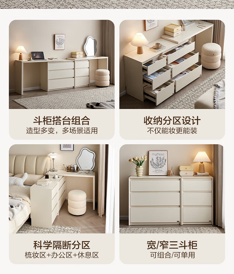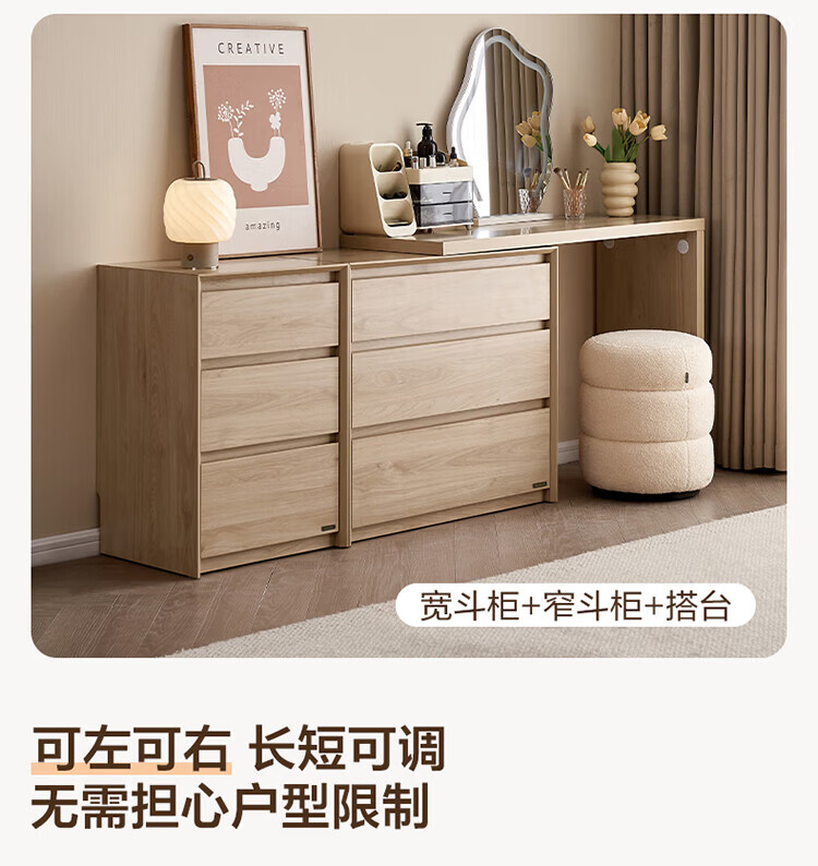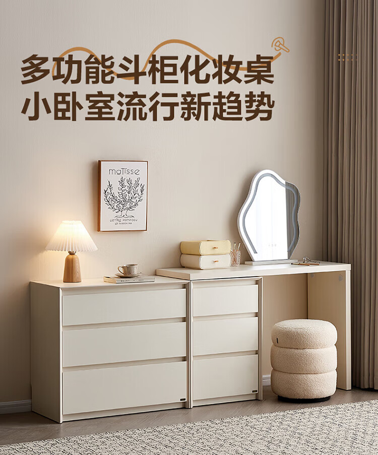 全友(QUANU)【迷瞪清仓货盘】三斗柜一体梳妆台组合梳妆台卧室家用收纳床尾柜 木纹色|0.47米窄款三斗柜