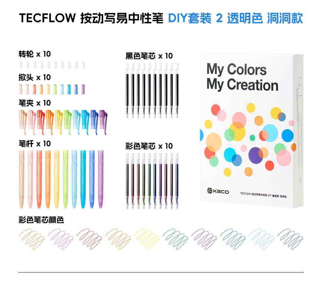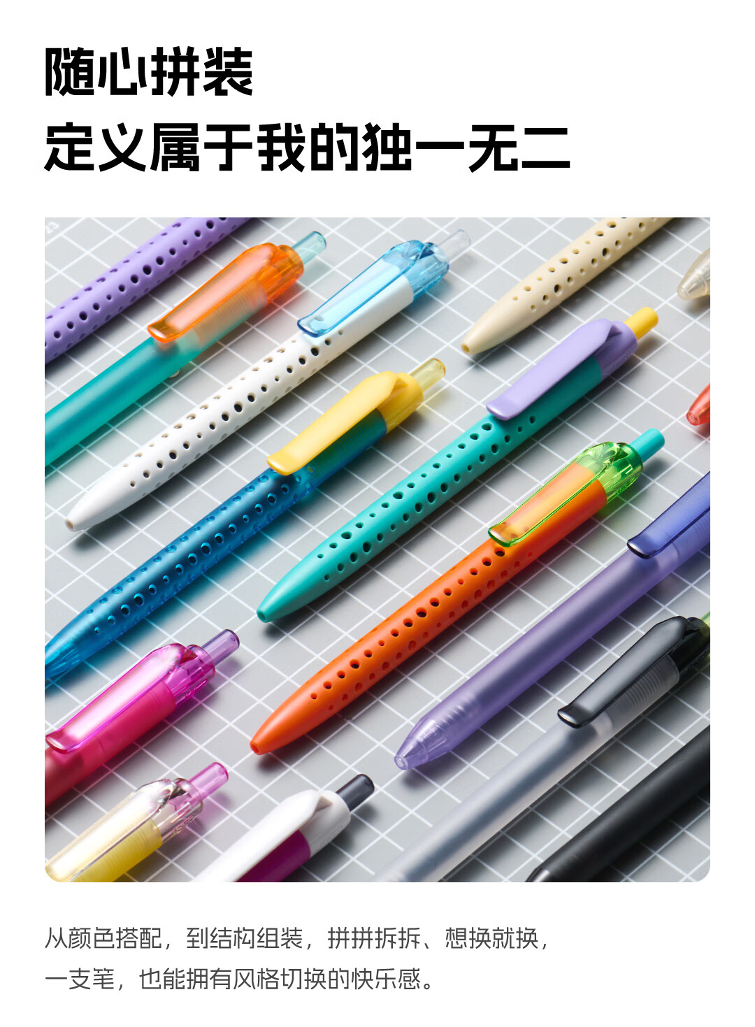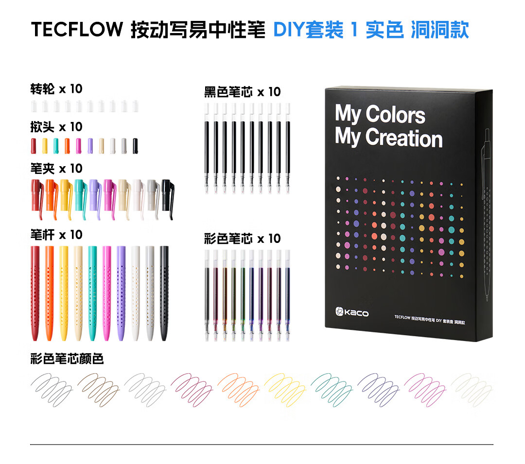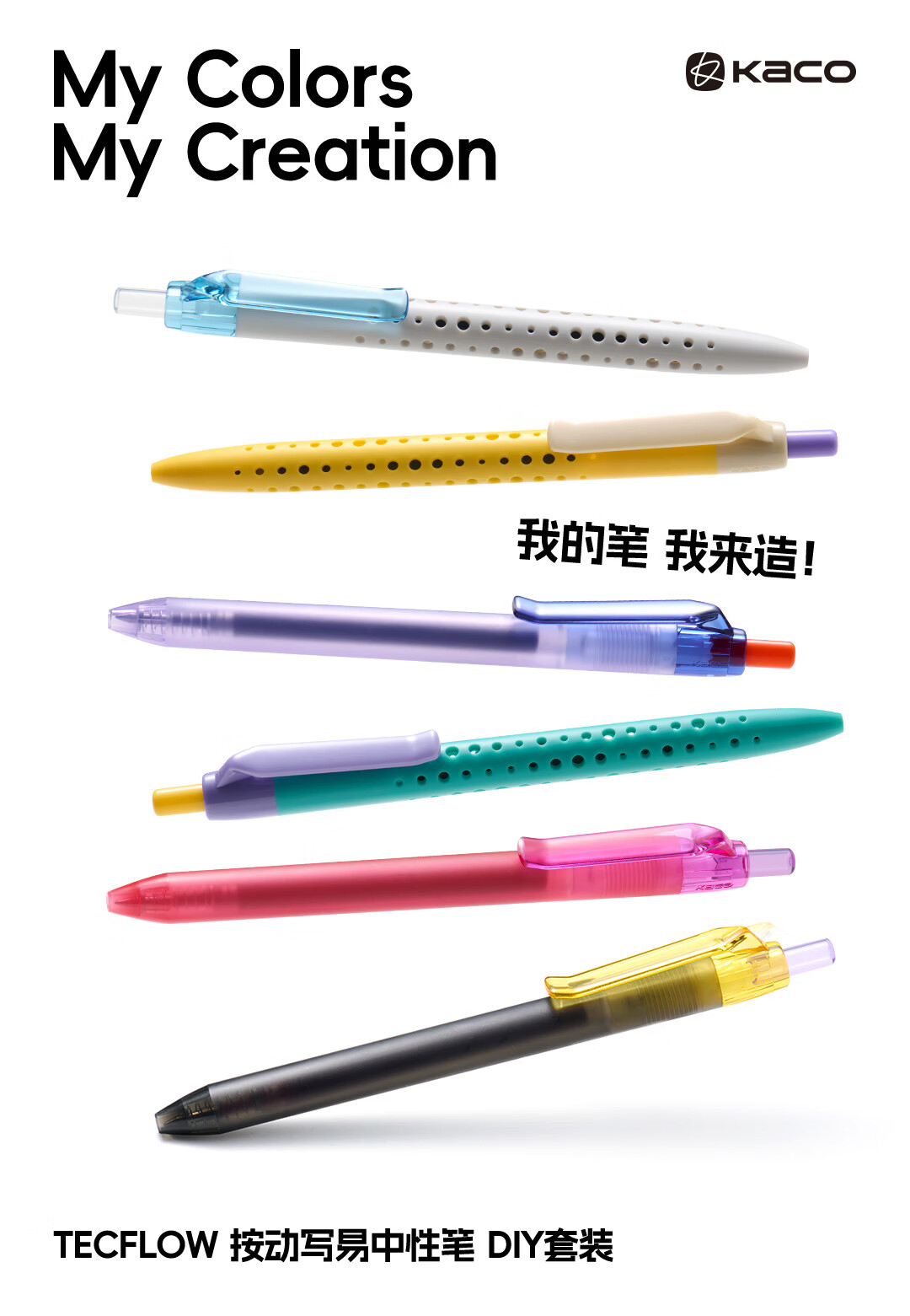 KACO写易按动中性笔洞洞款DIY套装创意组装笔大容量0.5黑学生刷题考研商务办公文具签字笔速干顺滑 DIY套装 肆 常规款