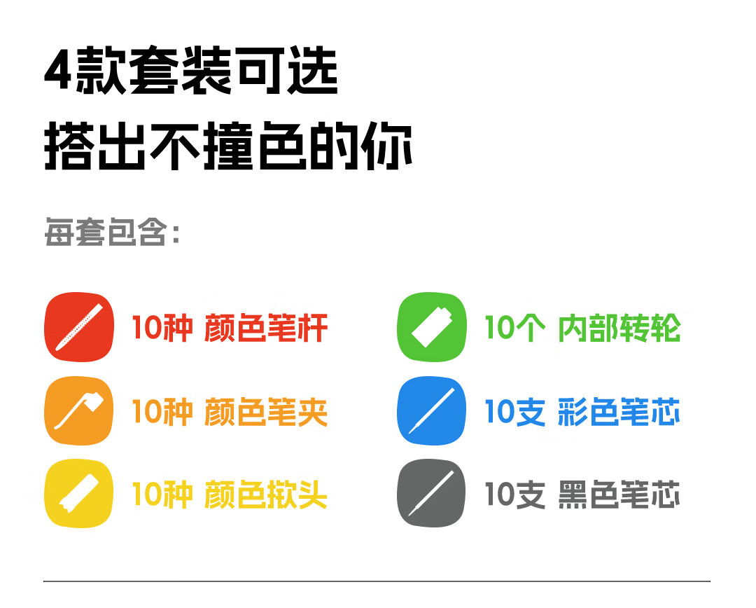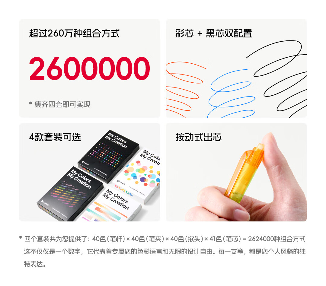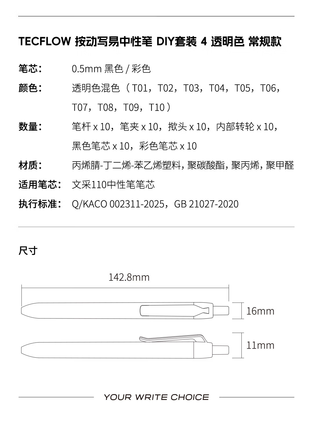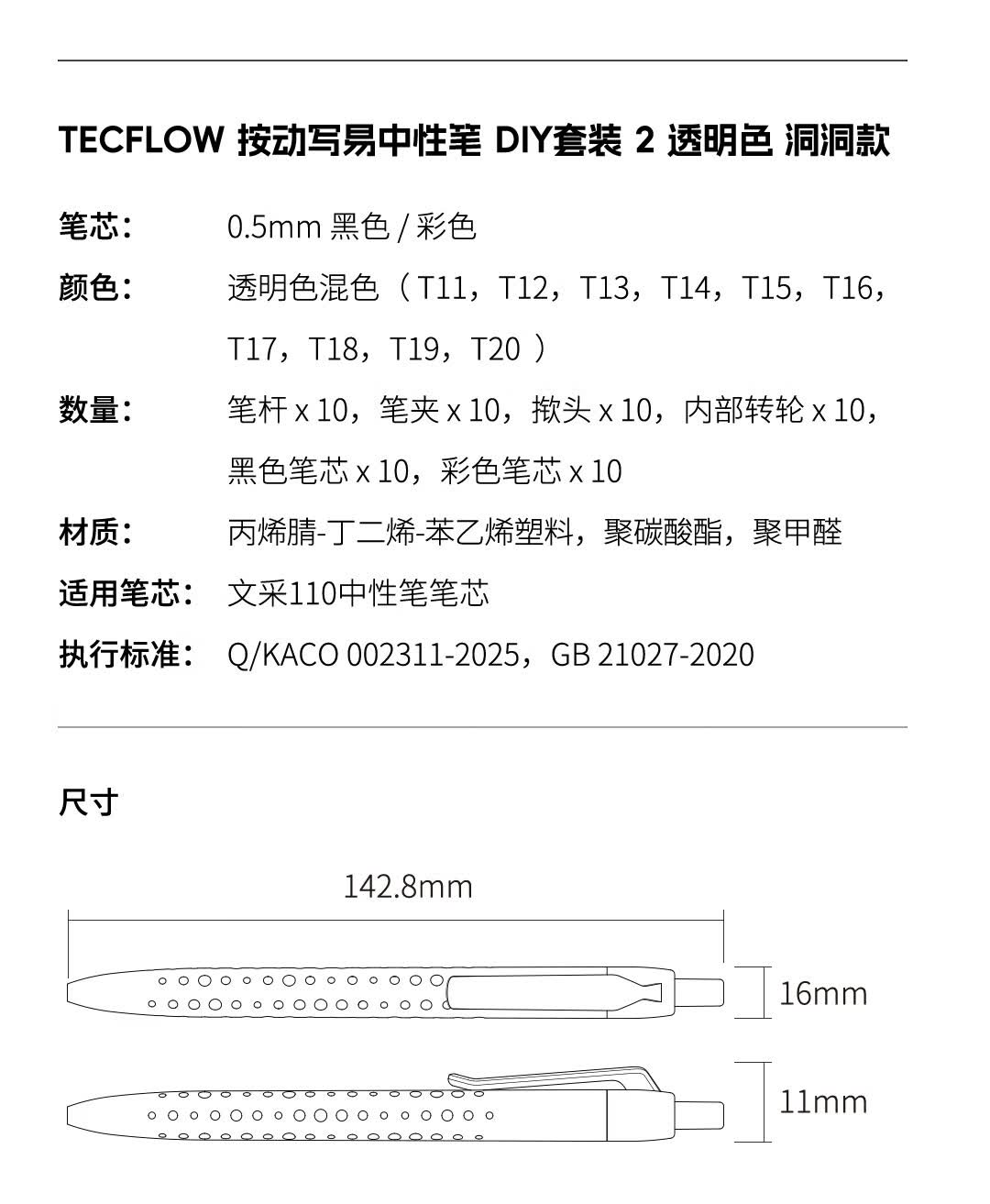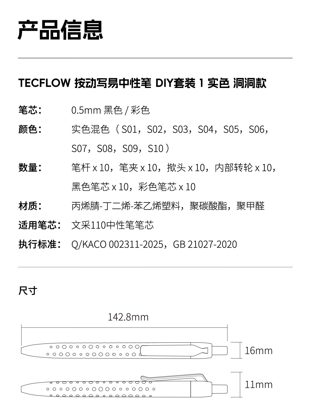 KACO写易按动中性笔洞洞款DIY套装创意组装笔大容量0.5黑学生刷题考研商务办公文具签字笔速干顺滑 DIY套装 肆 常规款