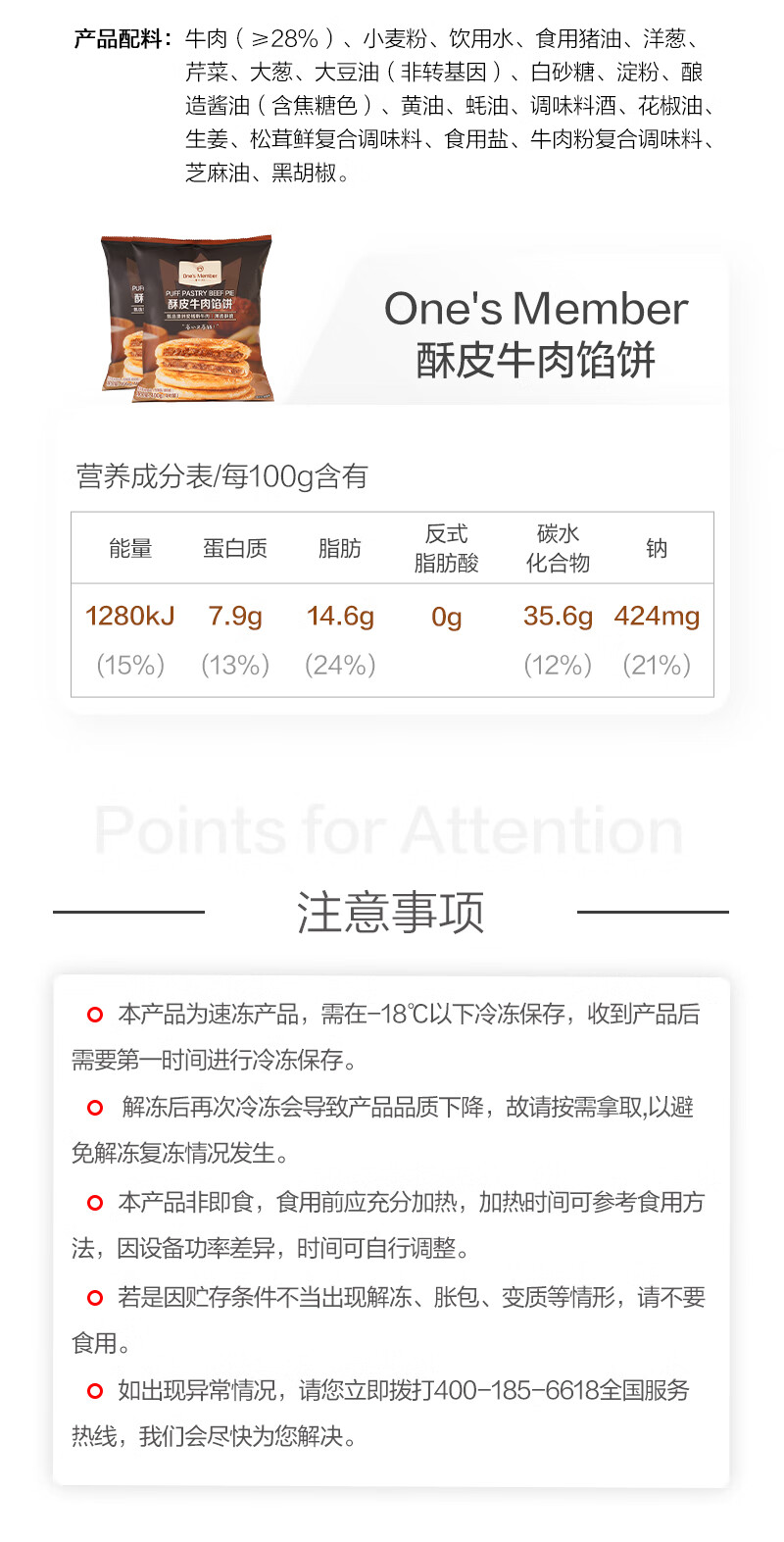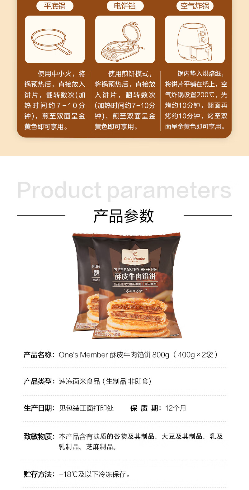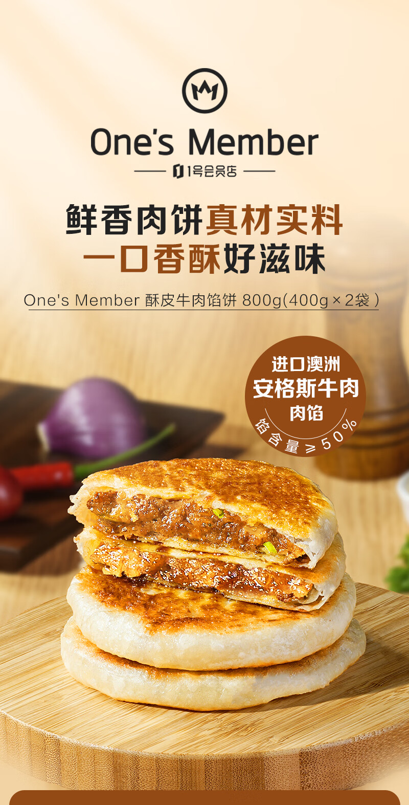 1号会员店(One's Member)酥皮牛肉馅饼800g(400g*2袋) 营养快手早餐半成品冷冻懒人煎饼
