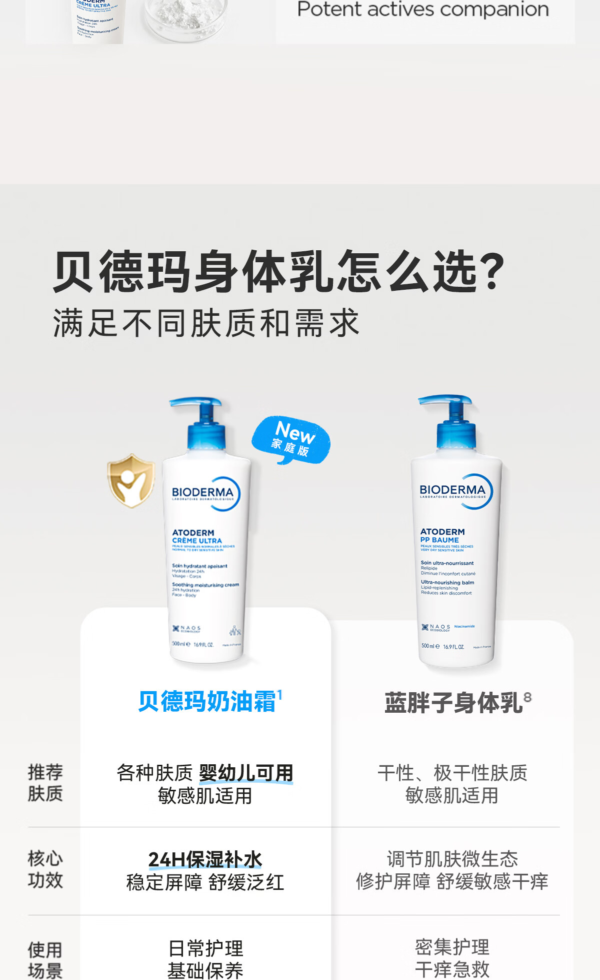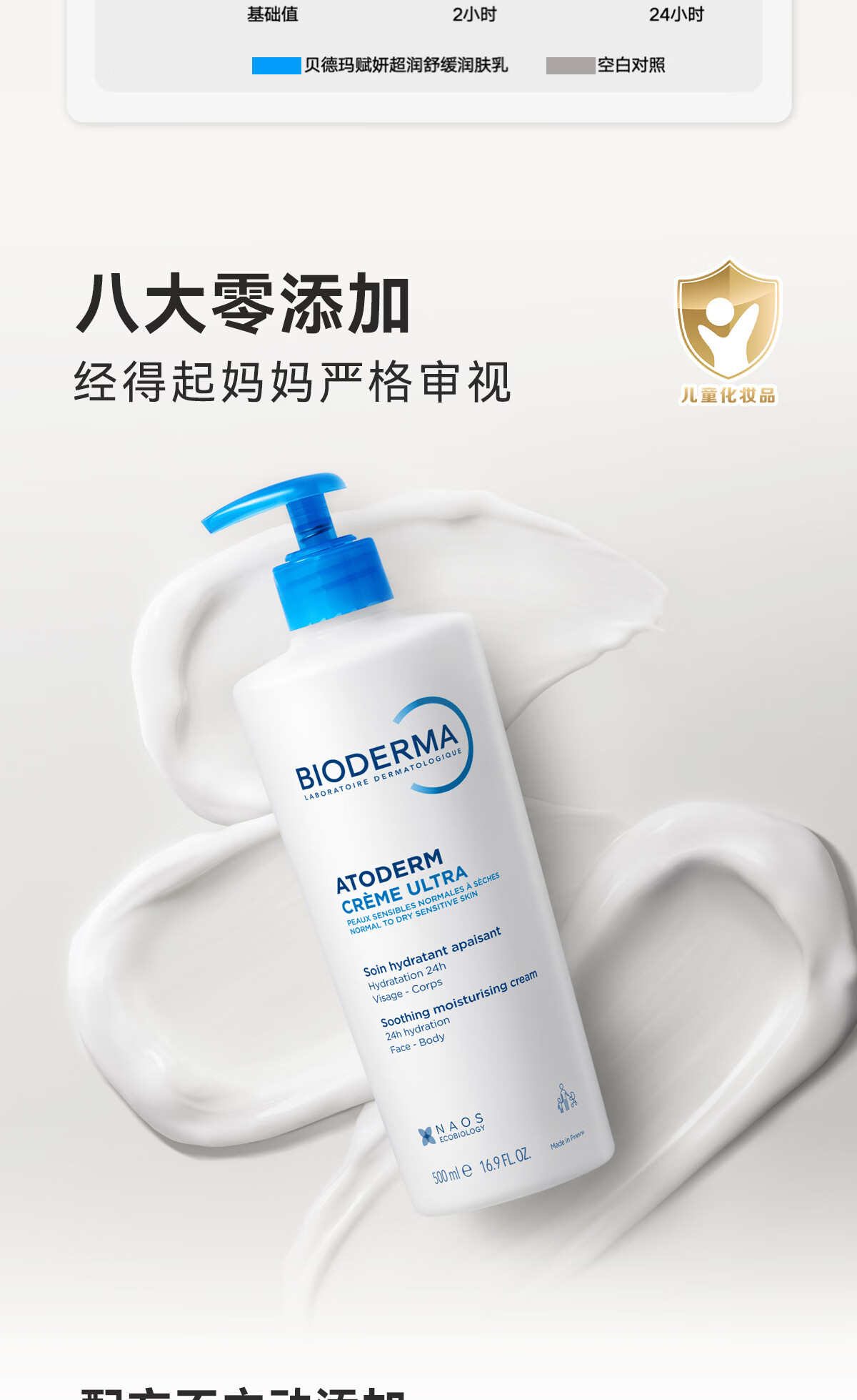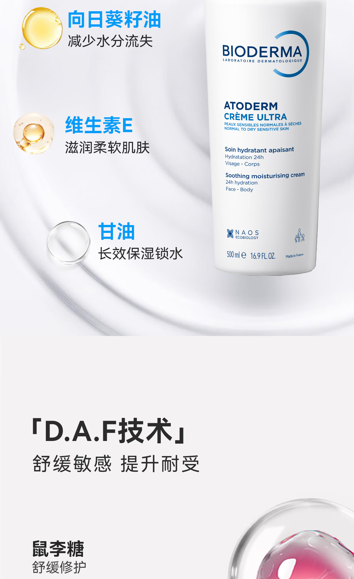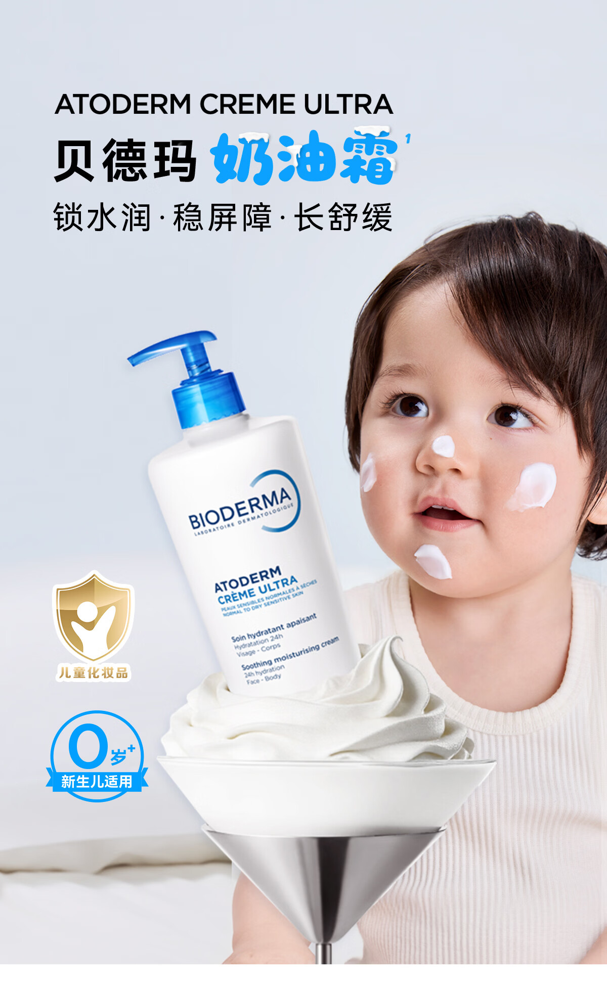 贝德玛(BIODERMA)家庭版小金盾贝德玛奶油霜身体乳婴幼儿保湿乳液无激素换季面霜 500ml