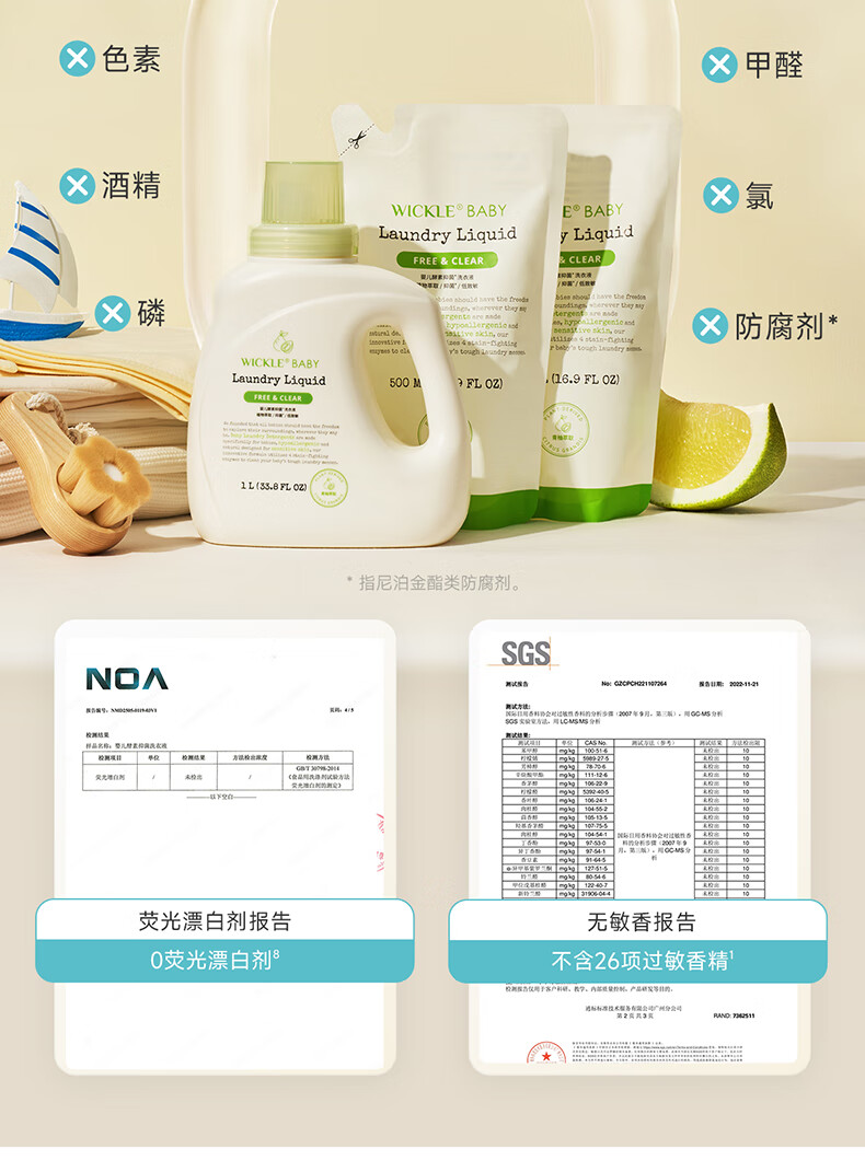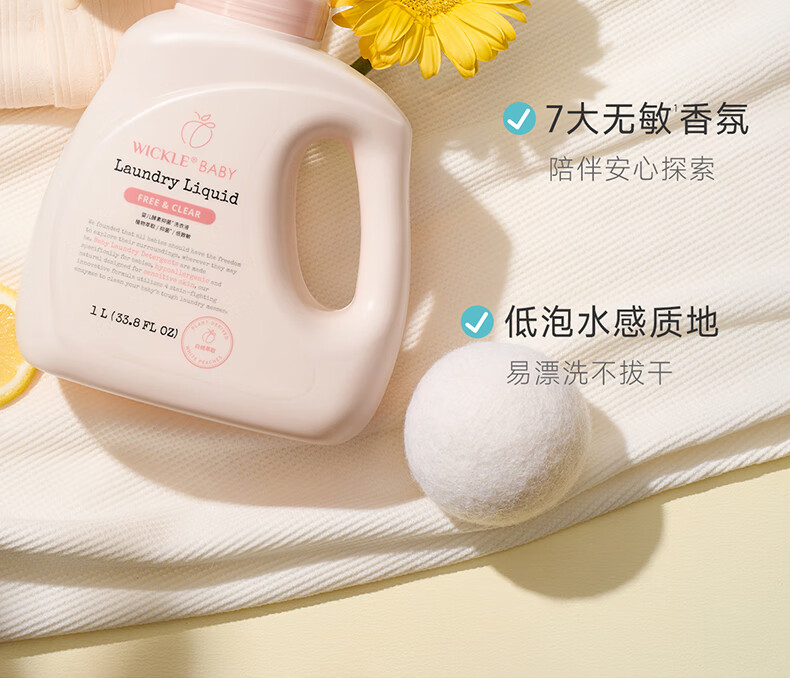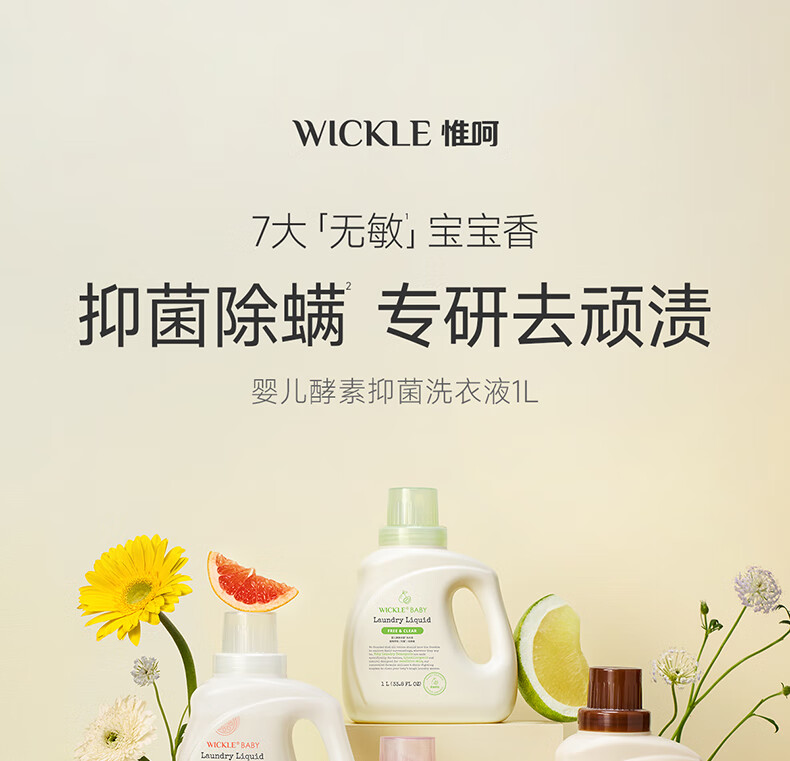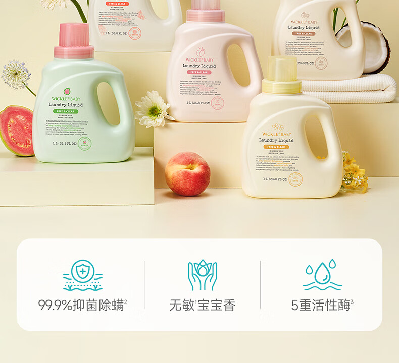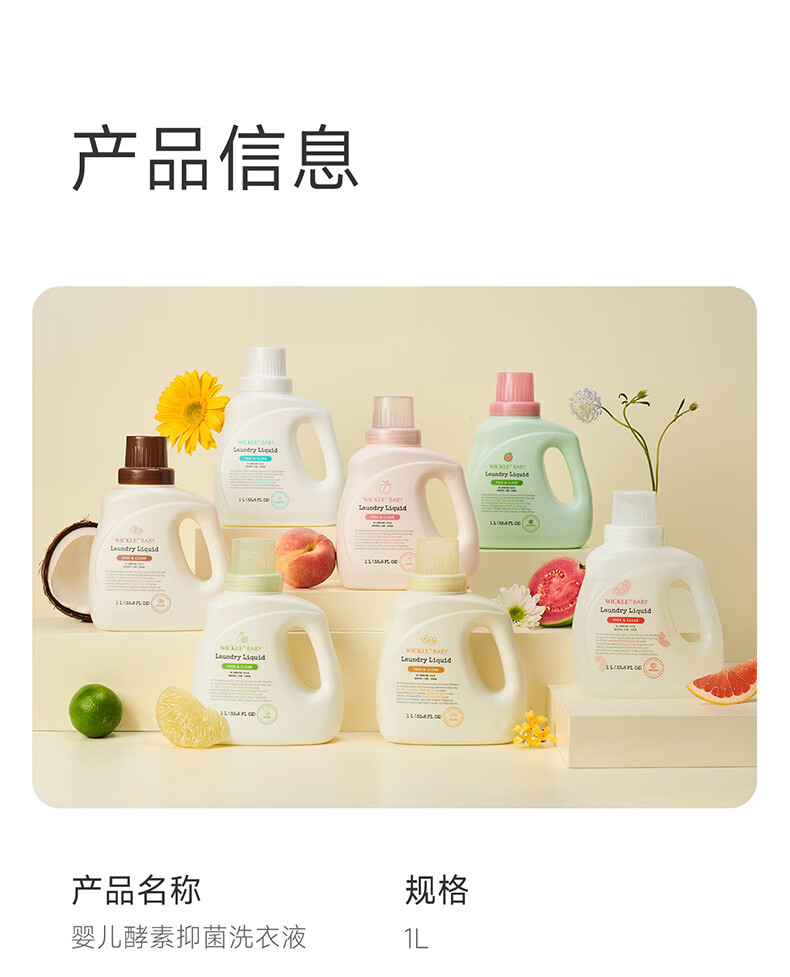 WICKLE婴幼儿宝宝抑菌酵素洗衣液补充装番石榴味500ml