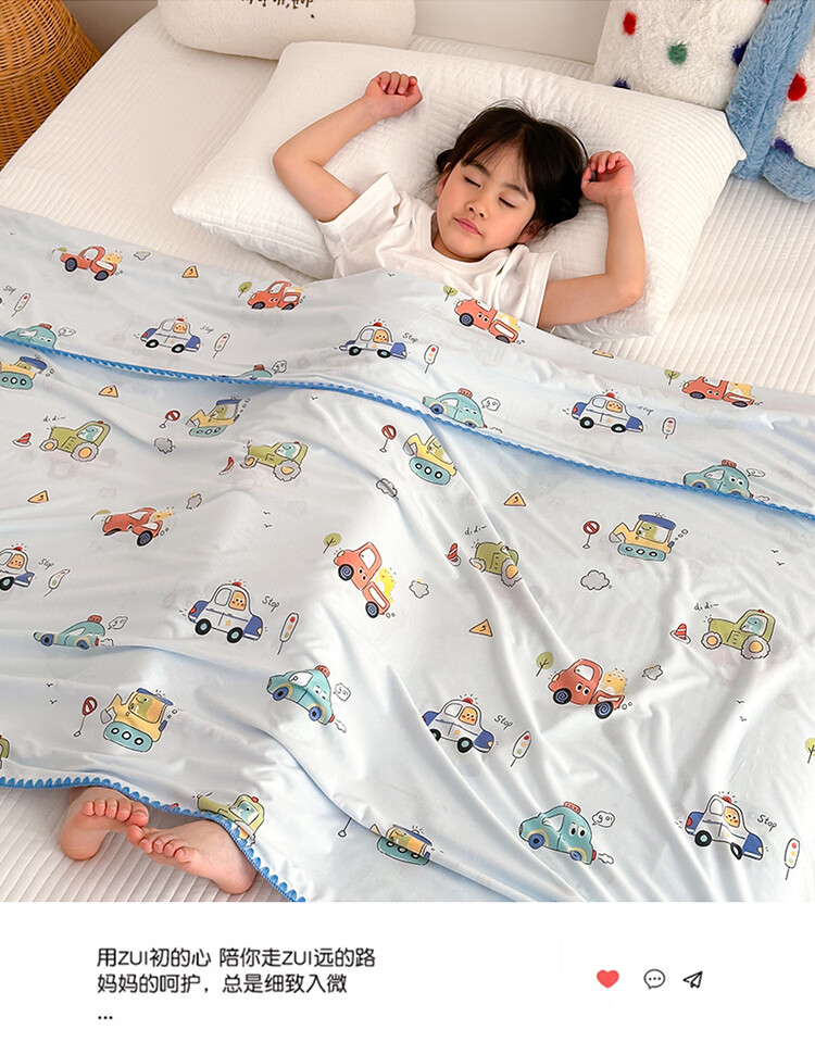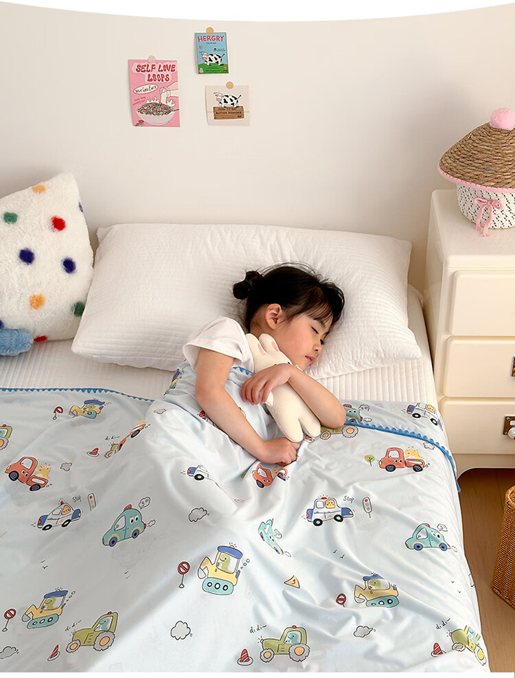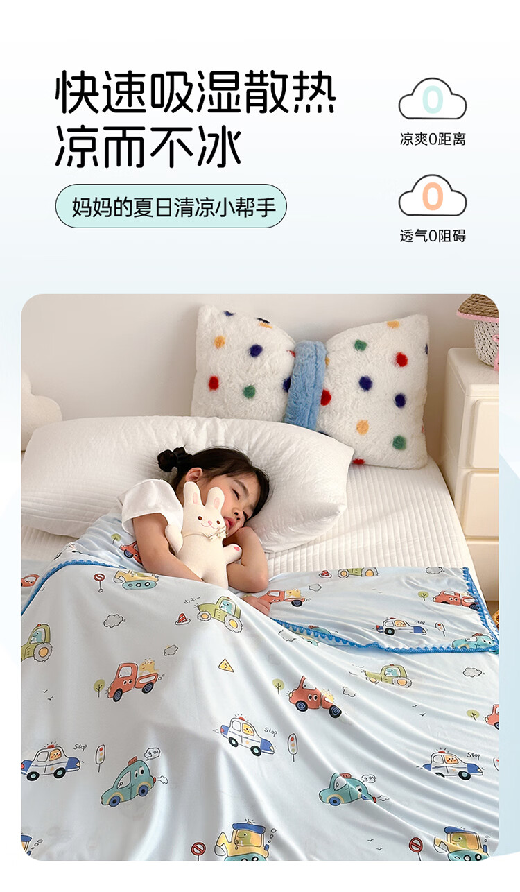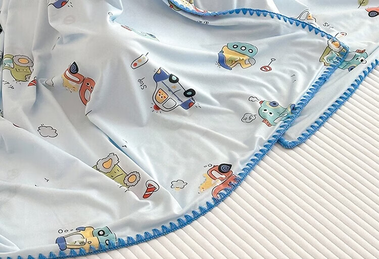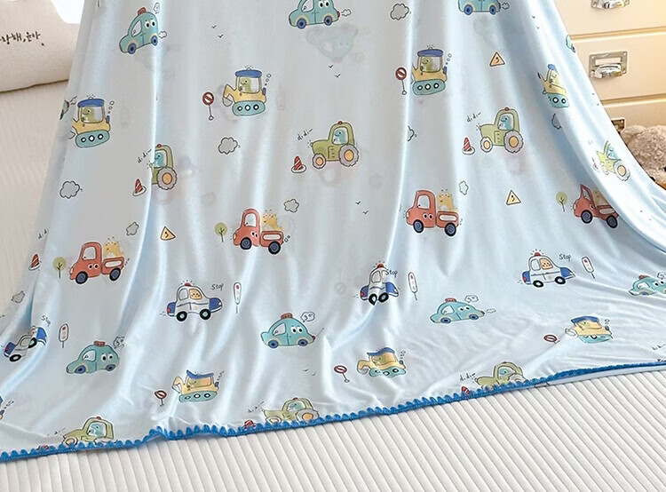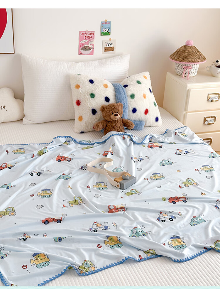 ROLAND LIVE婴儿裸睡凉感针织毯幼儿园夏被儿童夏被毯子盖毯午睡毯旅行毯 HSH 儿童针织棉盖毯-飞驰汽车 80*110cm贝壳边【约0.25kg】