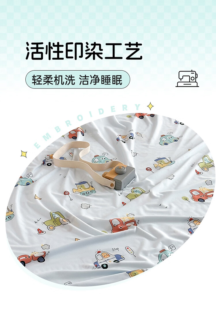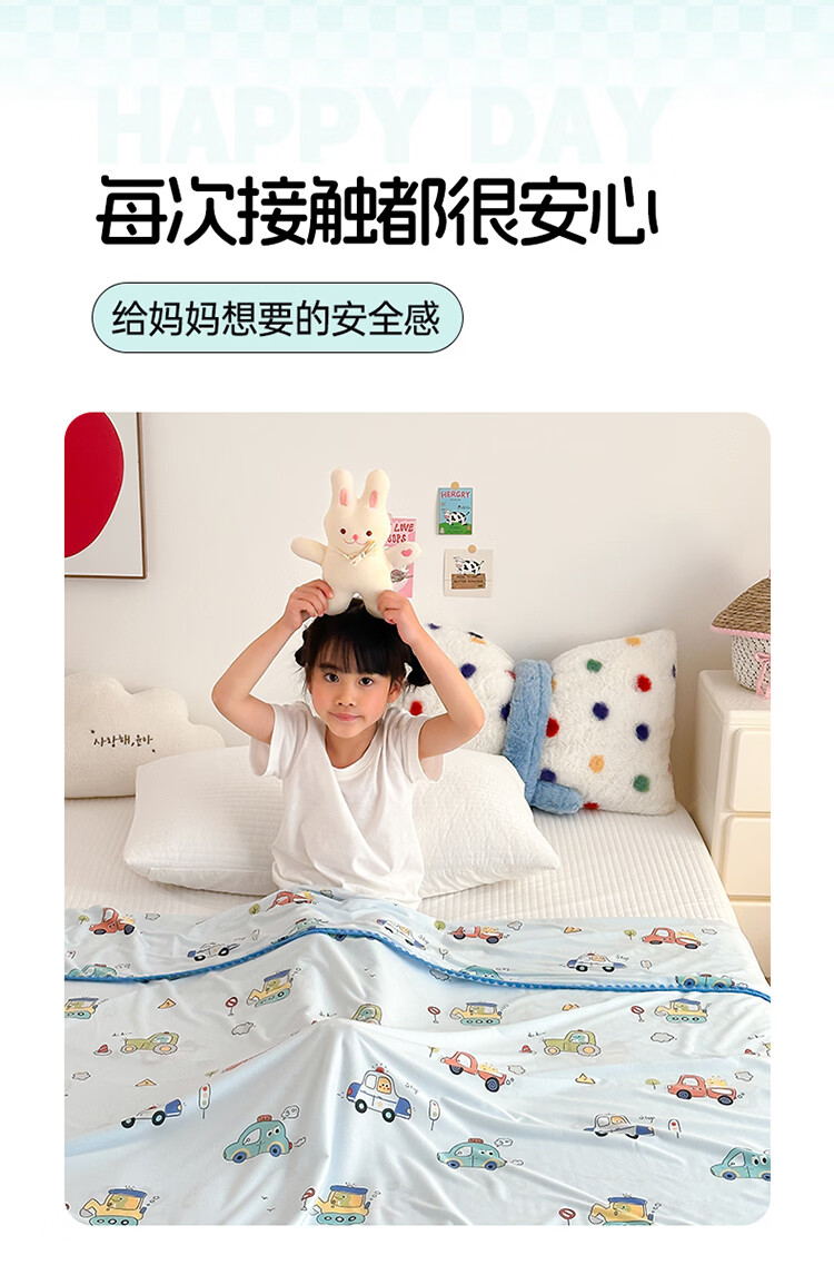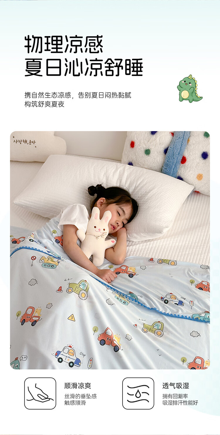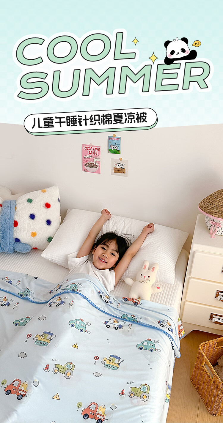 ROLAND LIVE婴儿裸睡凉感针织毯幼儿园夏被儿童夏被毯子盖毯午睡毯旅行毯 HSH 儿童针织棉盖毯-飞驰汽车 80*110cm贝壳边【约0.25kg】