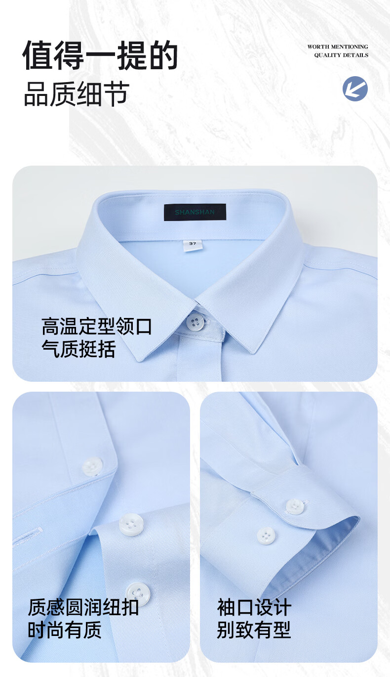 SHANSHAN杉杉衬衫男【棉】纯色免烫舒适不闷汗弹力有型休闲通勤长袖衬衣男 白色 38 /170/84A