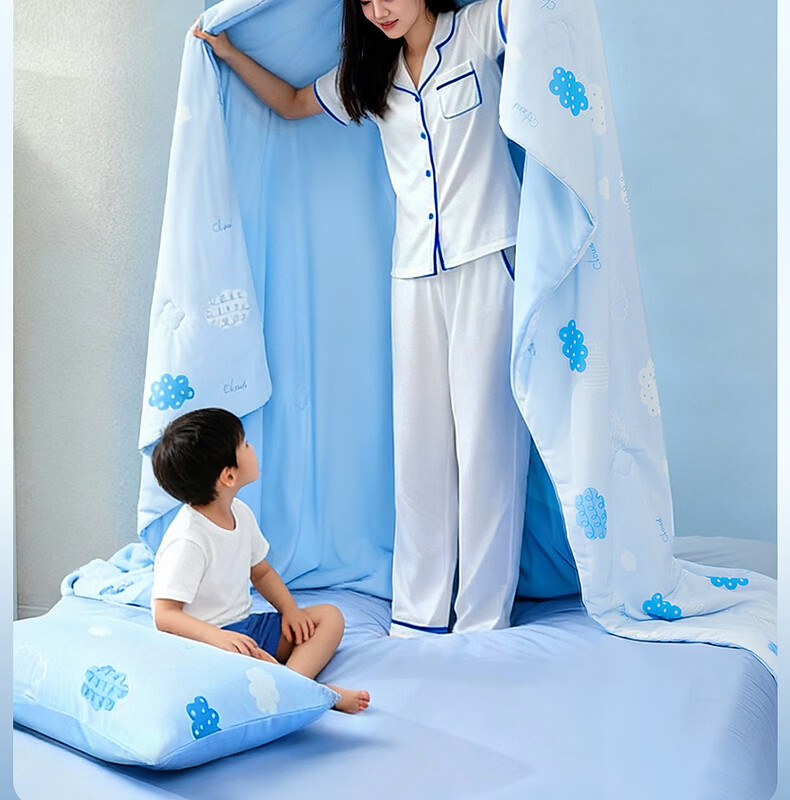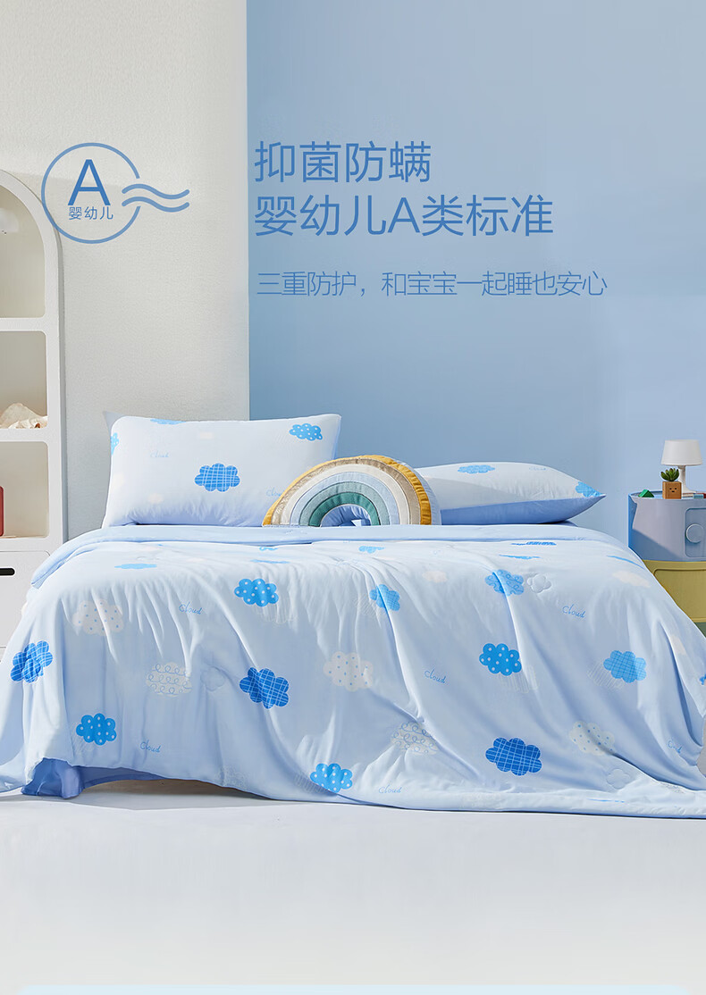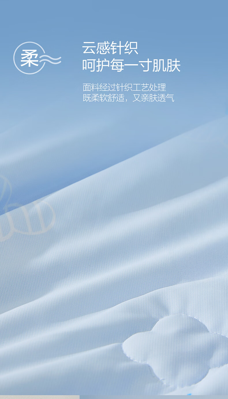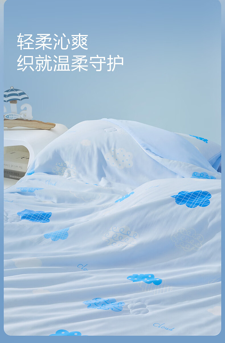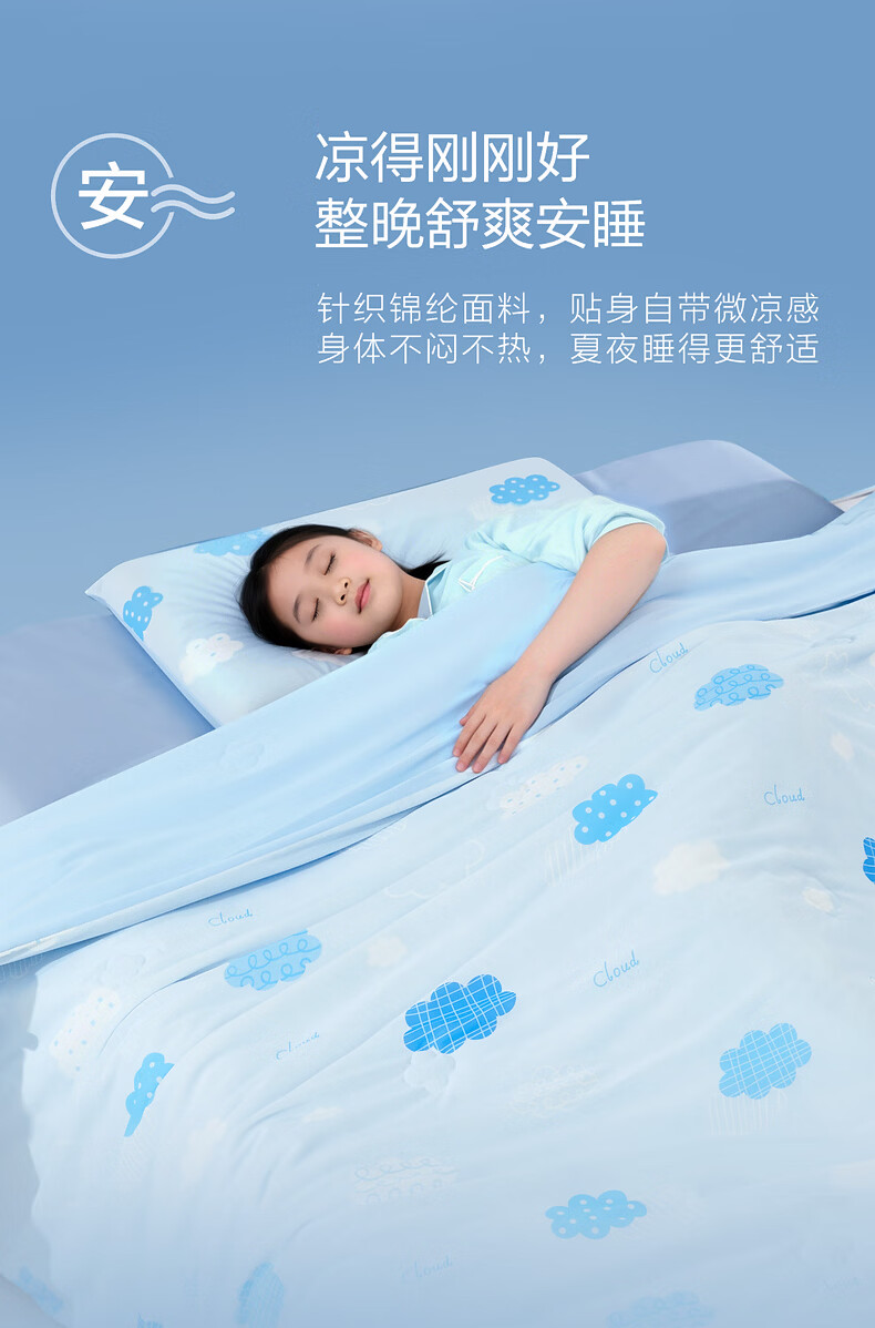 水星家纺儿童夏凉被空调被A类纯棉抗菌可机洗夏被芯薄被子宿舍夏凉被 晴云朵朵凉感针织夏被 120cm*150cm