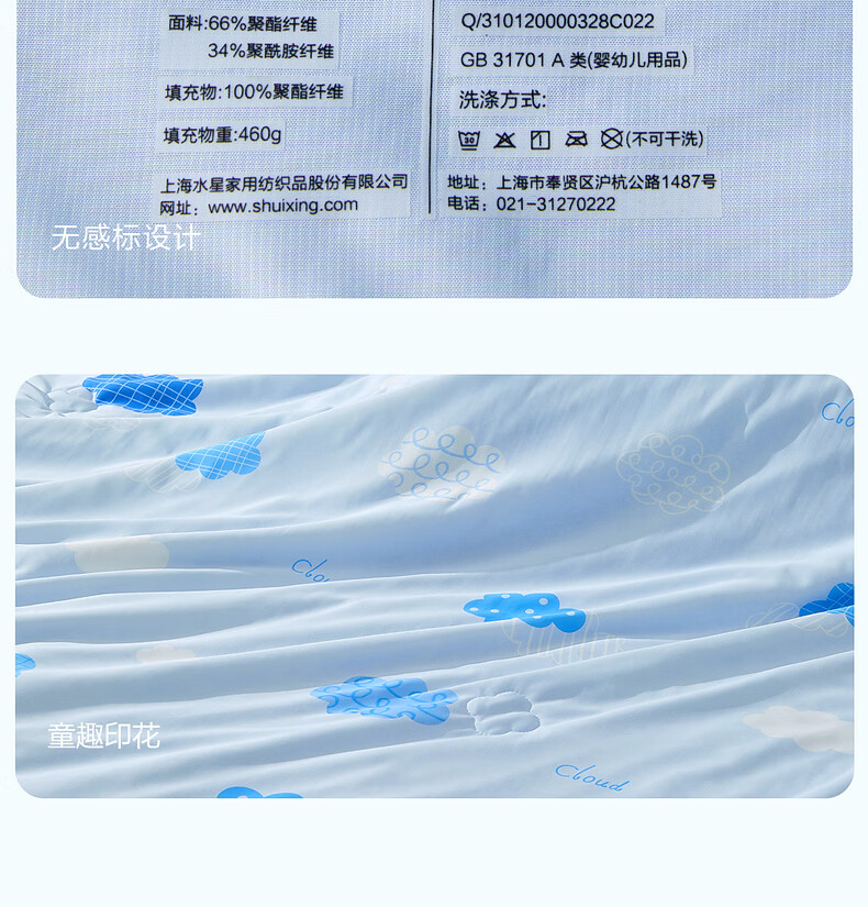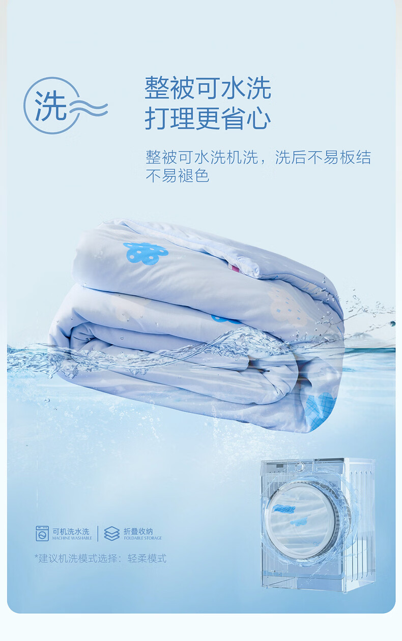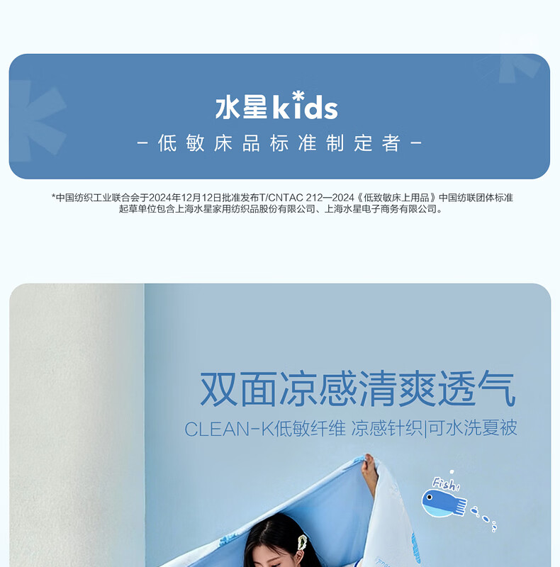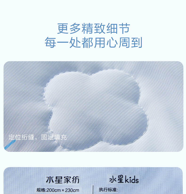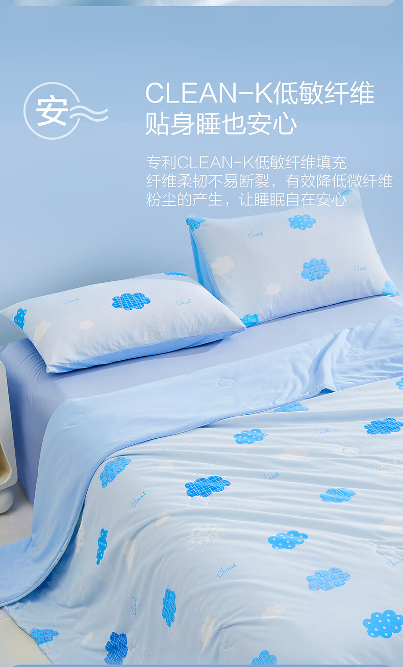 水星家纺儿童夏凉被空调被A类纯棉抗菌可机洗夏被芯薄被子宿舍夏凉被 晴云朵朵凉感针织夏被 120cm*150cm