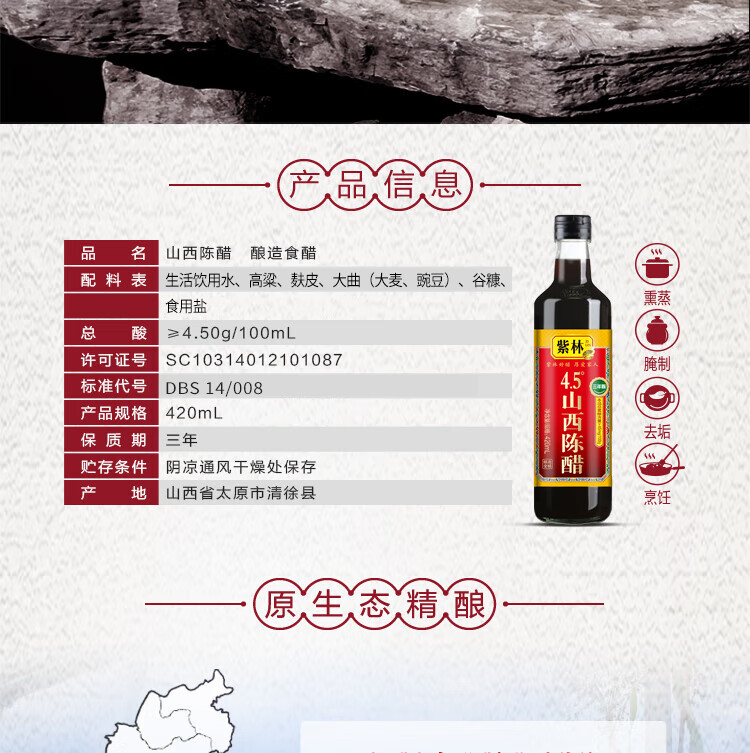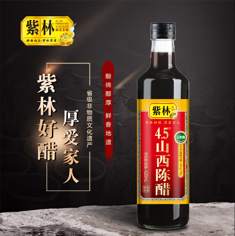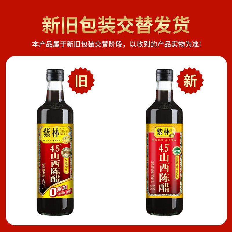 紫林 醋 4.5度山西陈醋420ml 零添加 纯粮酿造食醋 0添加 山西特产
