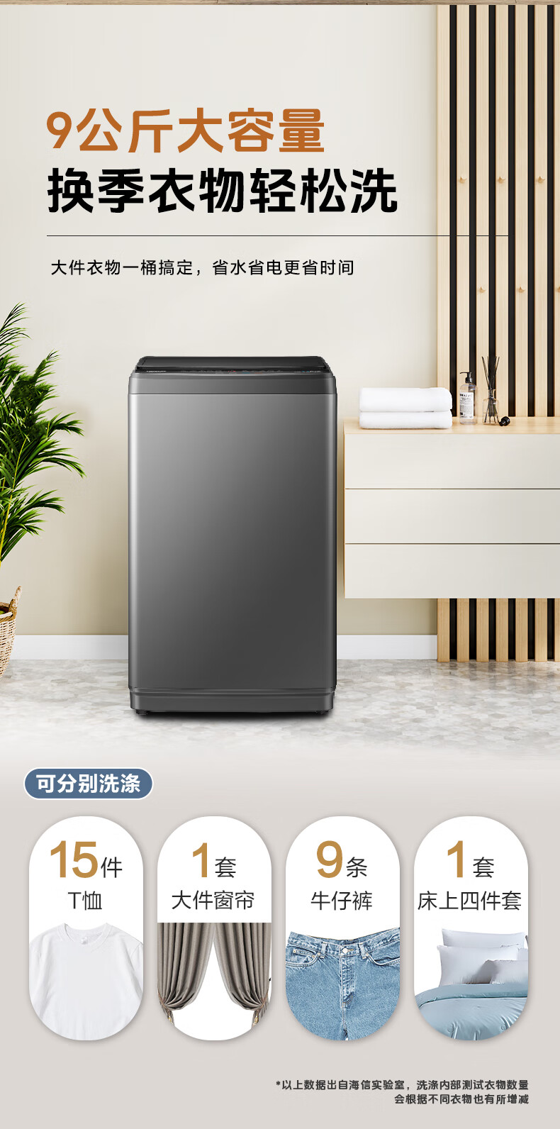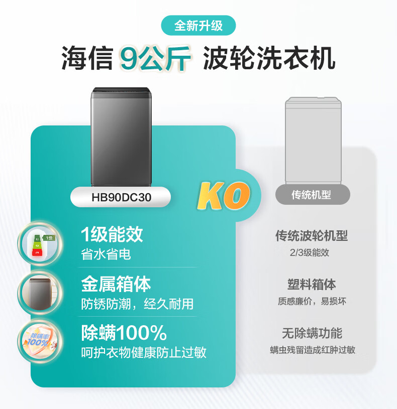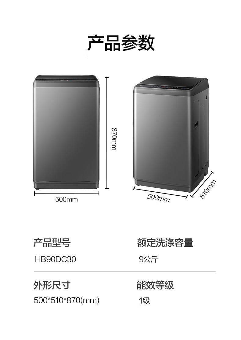 海信(Hisense)全自动波轮洗衣机9KG小型 家用租房宿舍 金属机身一级能效 HB90DC30 以旧换新家电补贴 京东自营