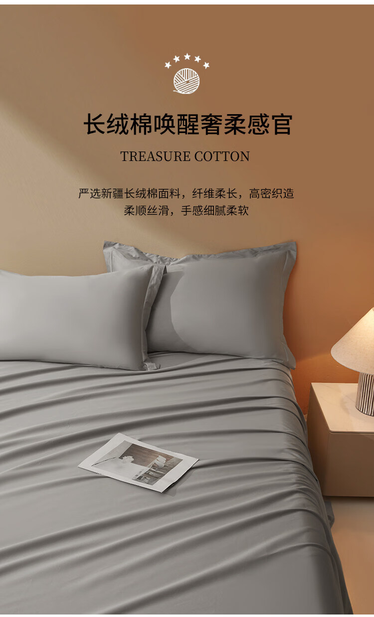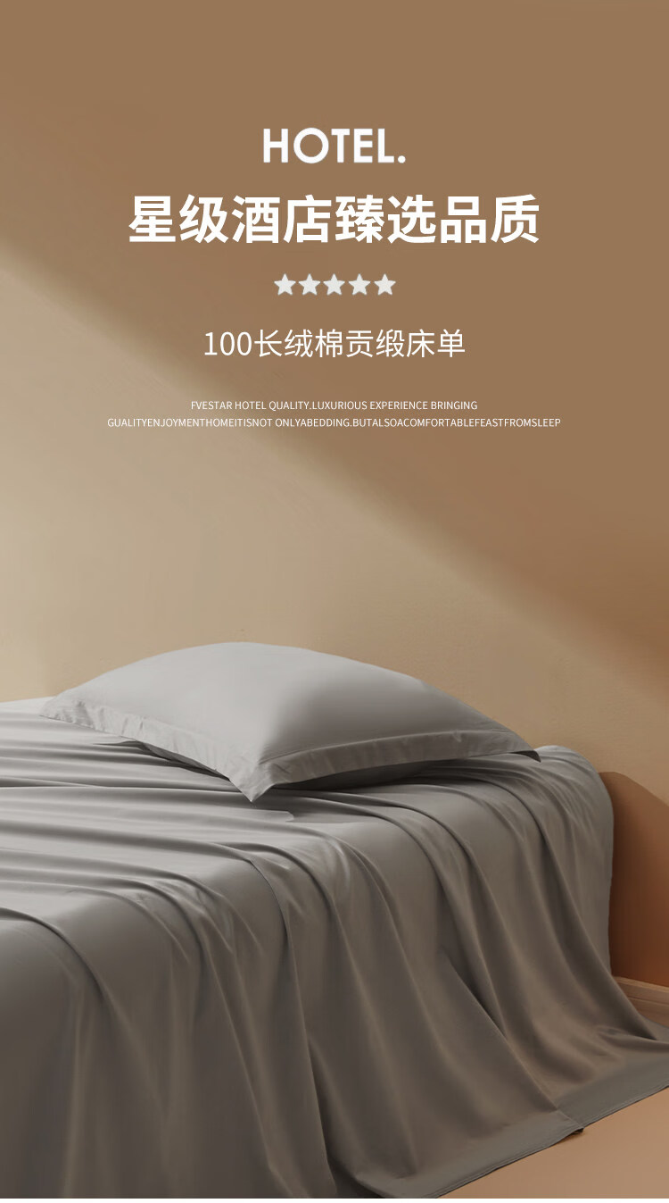 阿尔皮纳袋鼠纯棉床单单件全棉高端轻奢200x230cm家用宿舍单双人床盖四季通用 铅灰(100%新疆长绒棉裸感细腻亲肤) 单床单120*230cm(适0.8-0.9m床)