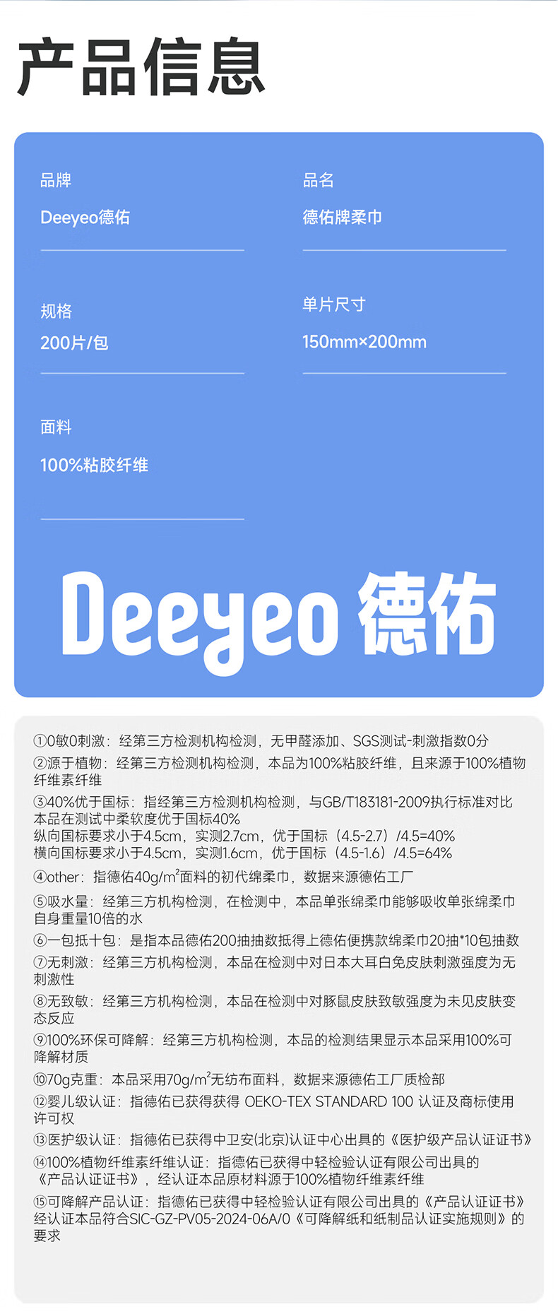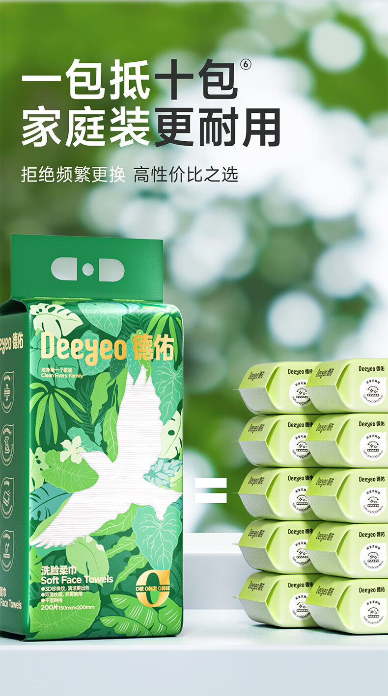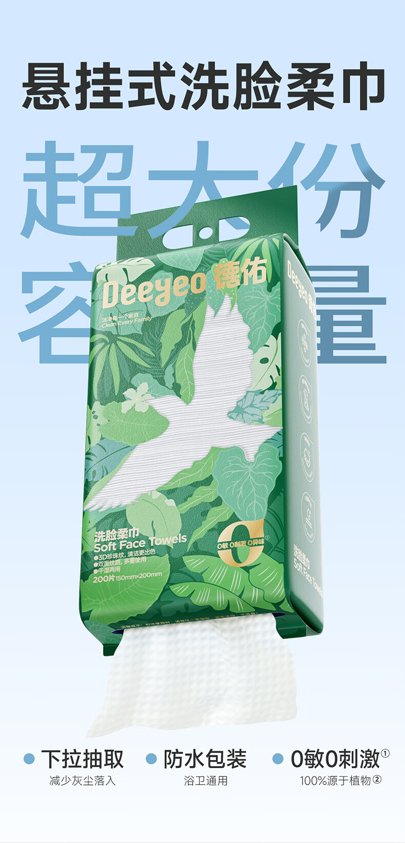 德佑飞鸟洗脸巾200抽*1提壁挂式一次性棉柔洁面巾绵柔巾200*150mm