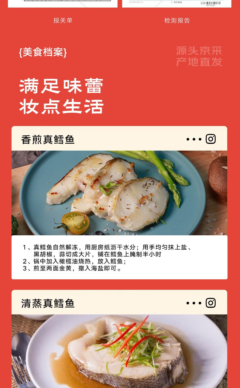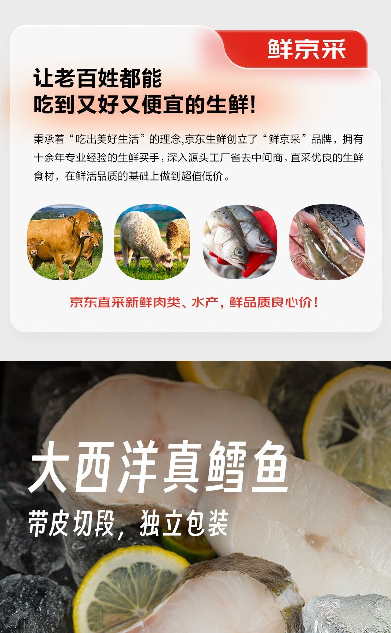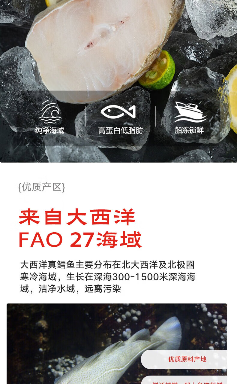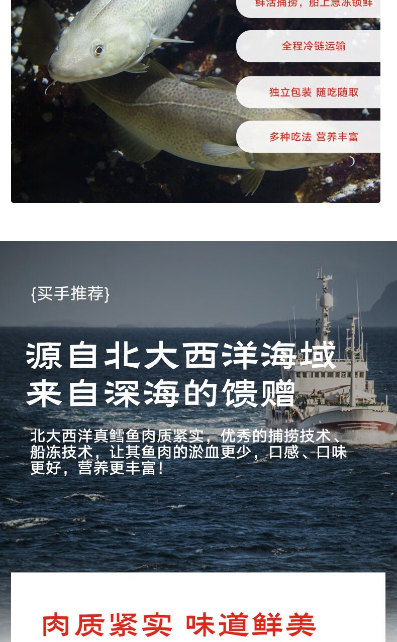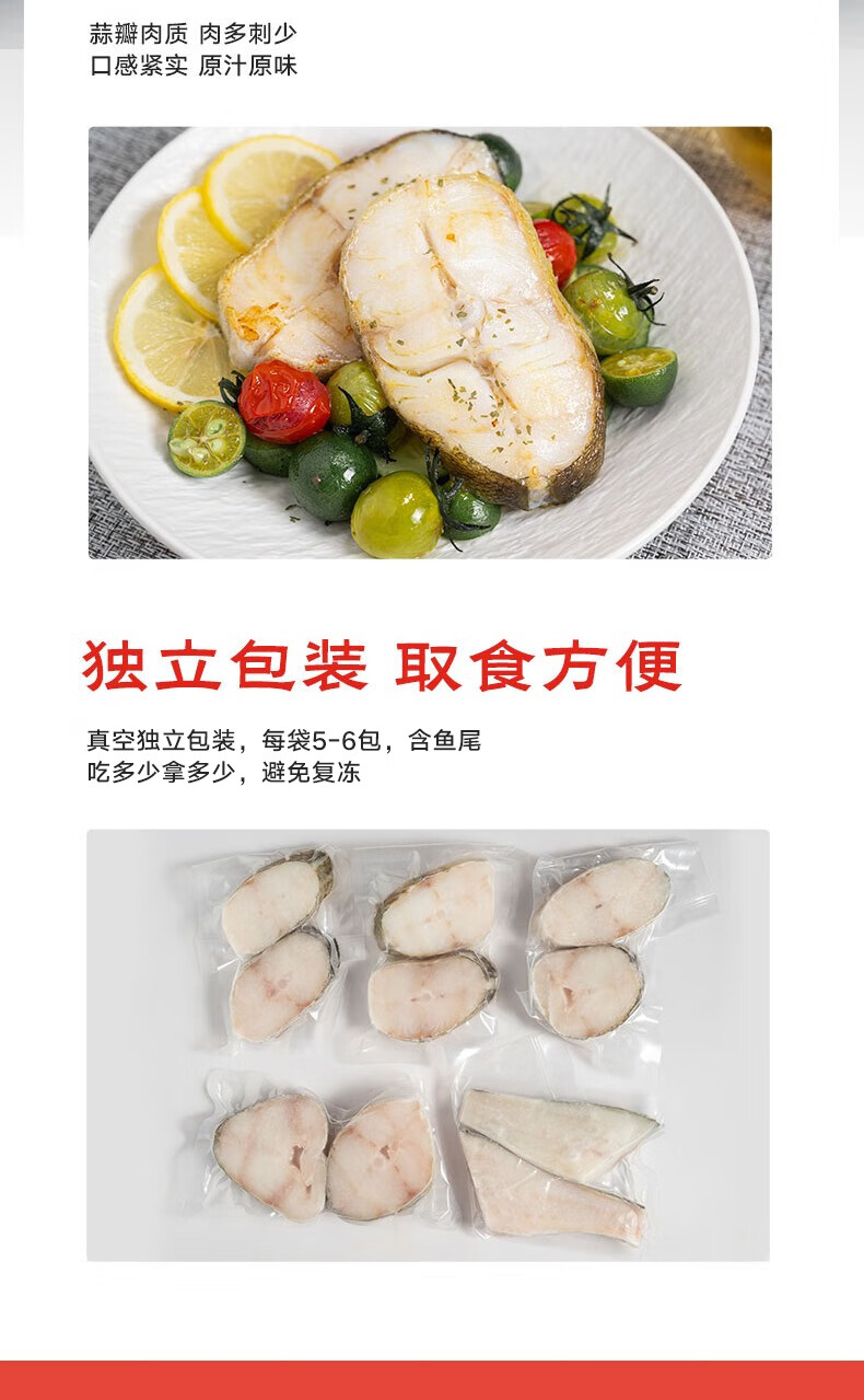 鲜京采 冷冻大西洋真鳕鱼排净重900g/袋 带皮切段 独立包袋 生鲜鱼类