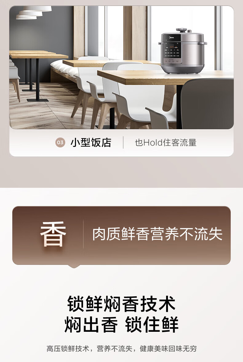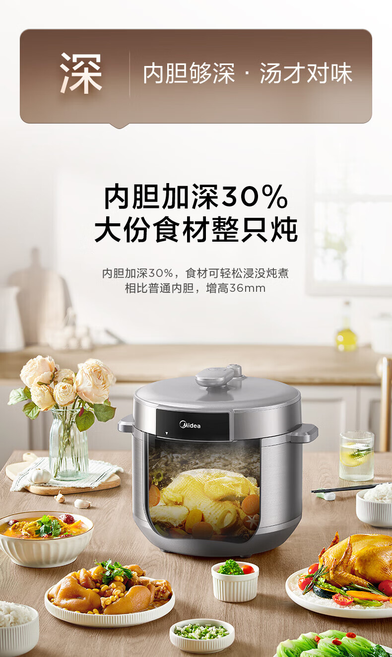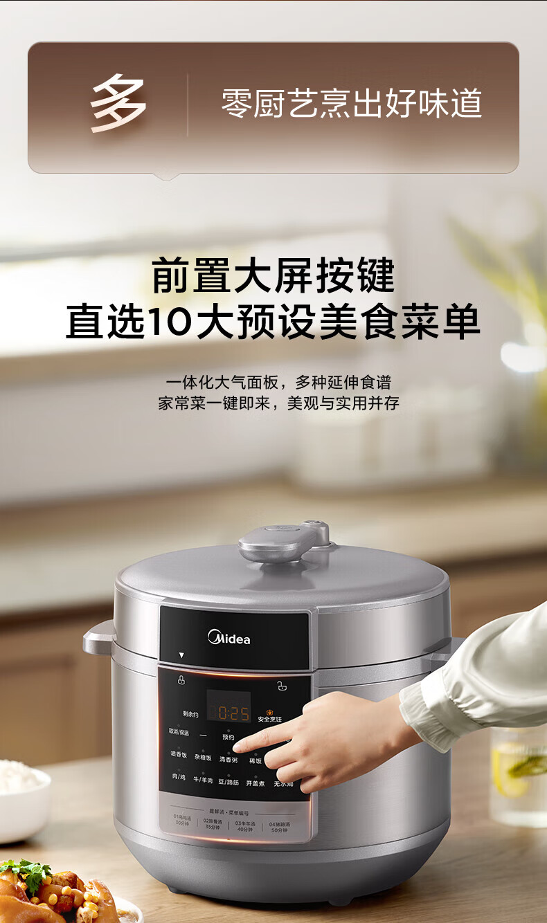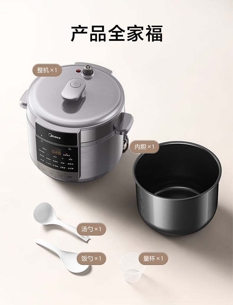 美的(Midea)电压力锅8L大容量8-14人家用电饭煲高压饭锅 全自动智能多功能预约开盖煮火锅煲汤炖煮 MY-E8129 大容量 8L