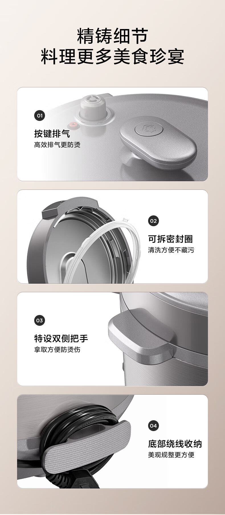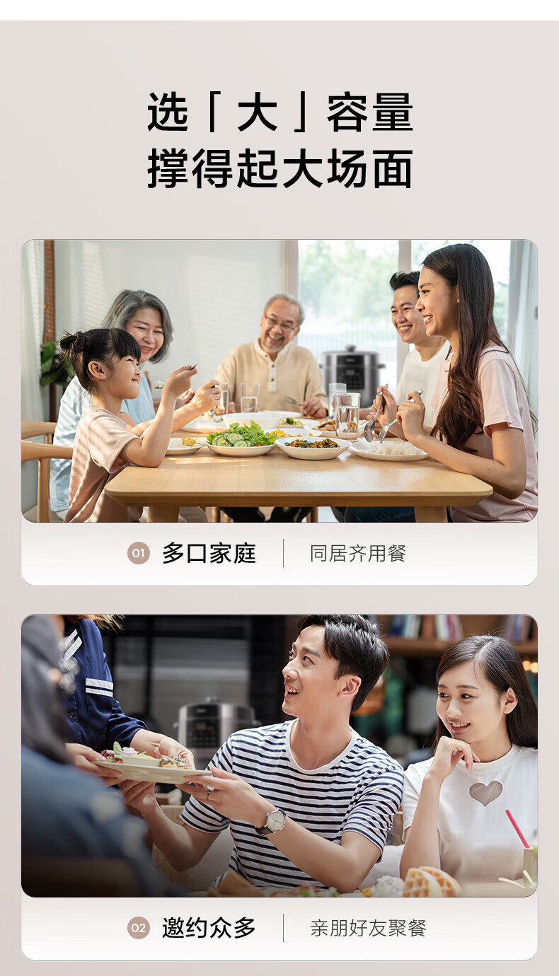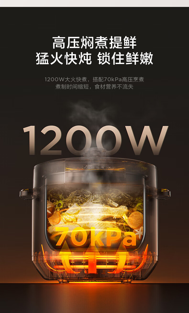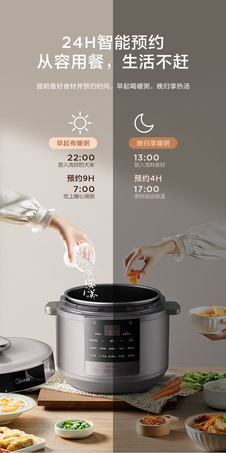 美的(Midea)电压力锅8L大容量8-14人家用电饭煲高压饭锅 全自动智能多功能预约开盖煮火锅煲汤炖煮 MY-E8129 大容量 8L