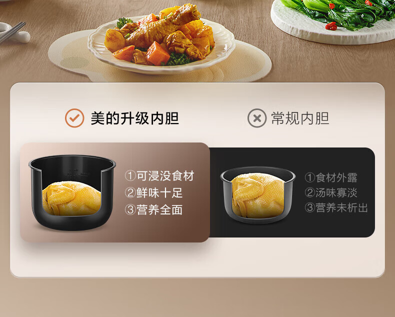 美的(Midea)电饭煲 0涂层电饭锅4升 316L不锈钢内胆3-4人家用多功能无涂层微压智能预约MB-RE476S