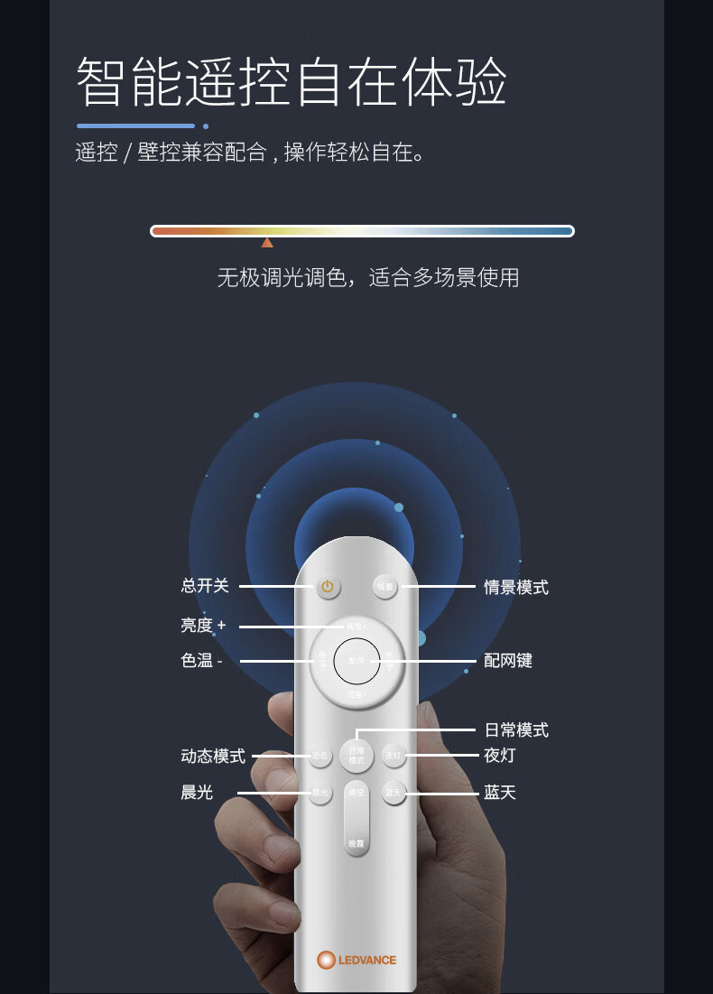 朗德万斯(LEDVANCE)客厅灯现代简约吊灯全光谱淡彩光护眼天镜灯卧室吸顶灯 160W 全色域情绪调节天镜灯-客厅