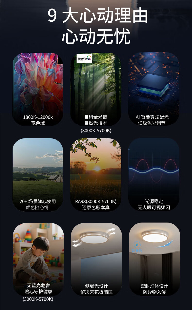拉伯塔包安装全光谱护眼儿童房主卧室灯2026新款led吸顶灯书房三防灯具 白色-环绕光【42W米家智能】直径38CM丨推荐15平内 包安装【全光谱护眼Ra98】