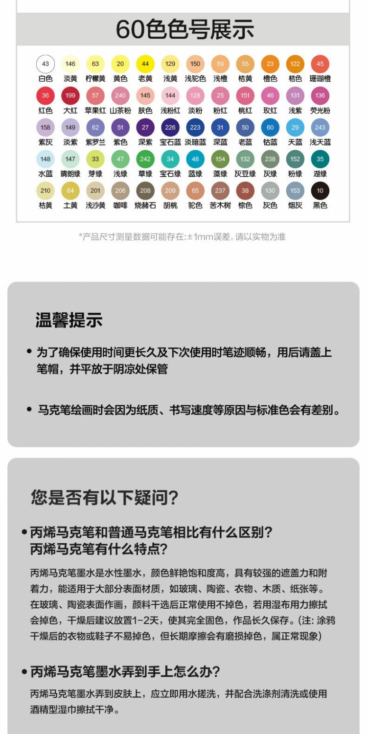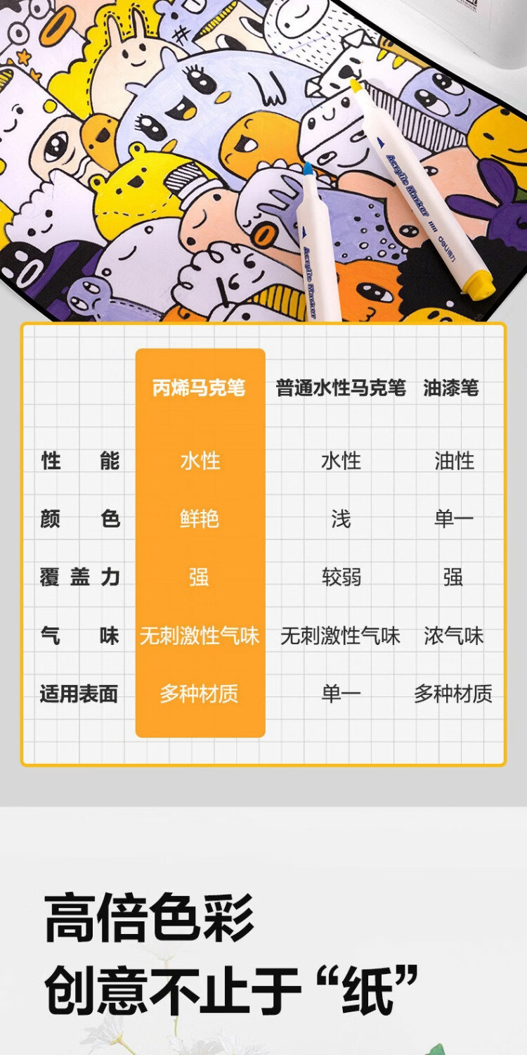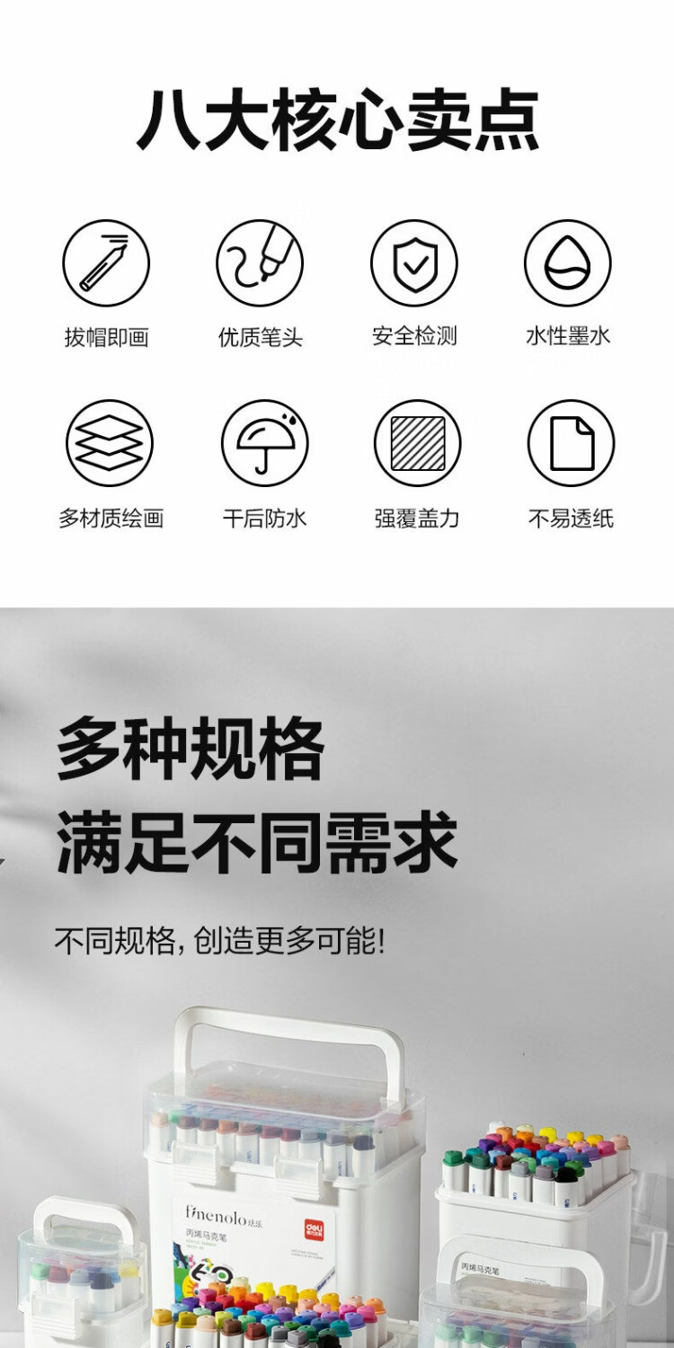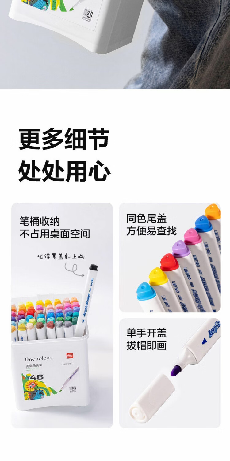 得力(deli)丙烯马克笔小学生专用不透色可叠色美术丙烯笔儿童幼儿园无毒可水洗画笔软绘幼儿园水彩笔 36色【防水手提袋】可写姓名/畅享创作